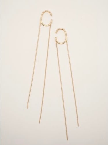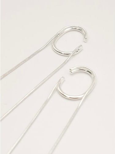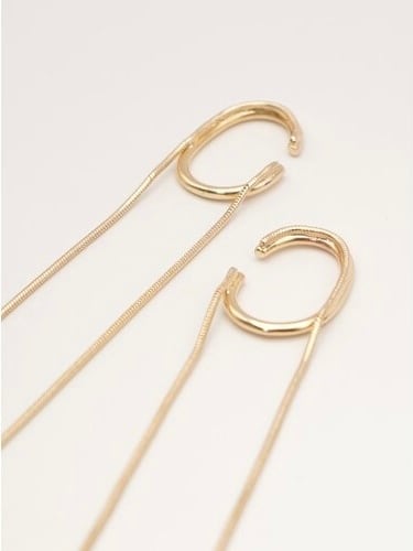 耳に沿うシンプルな丸線イヤカフにしなやかに煌めくロングチェーンが施された上品なデザイン。