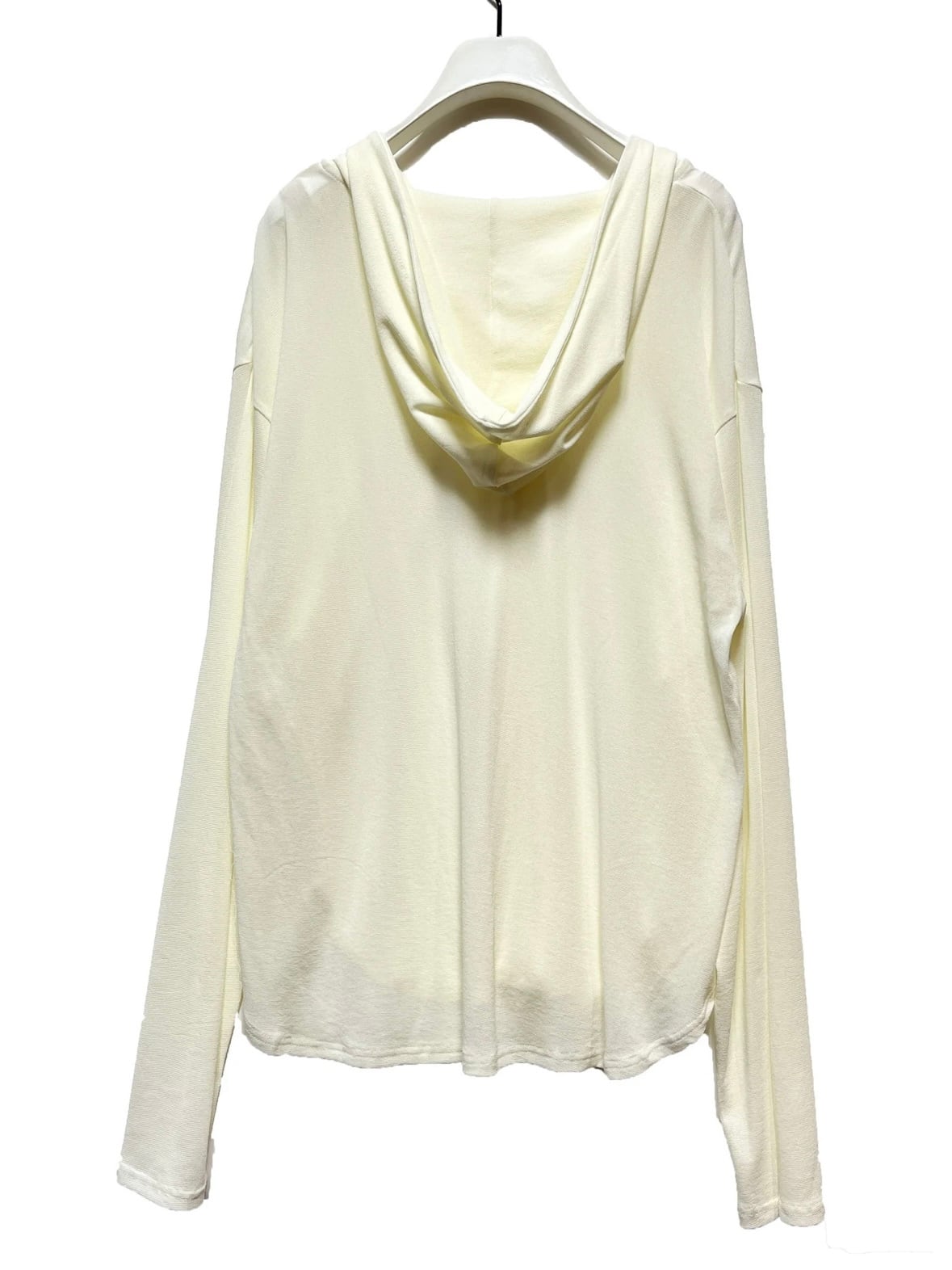 程よい透け感のシアーカットソー素材を使用した、トレンド感のあるフーディPOです。