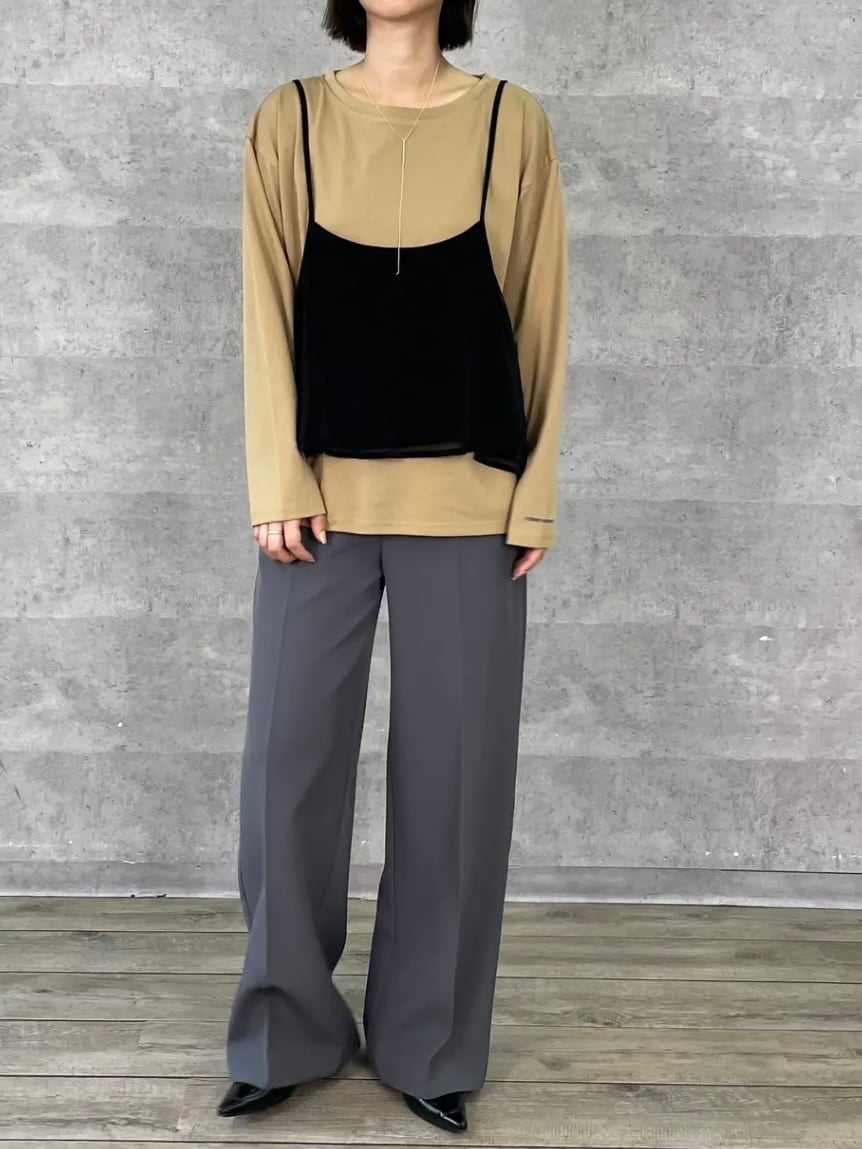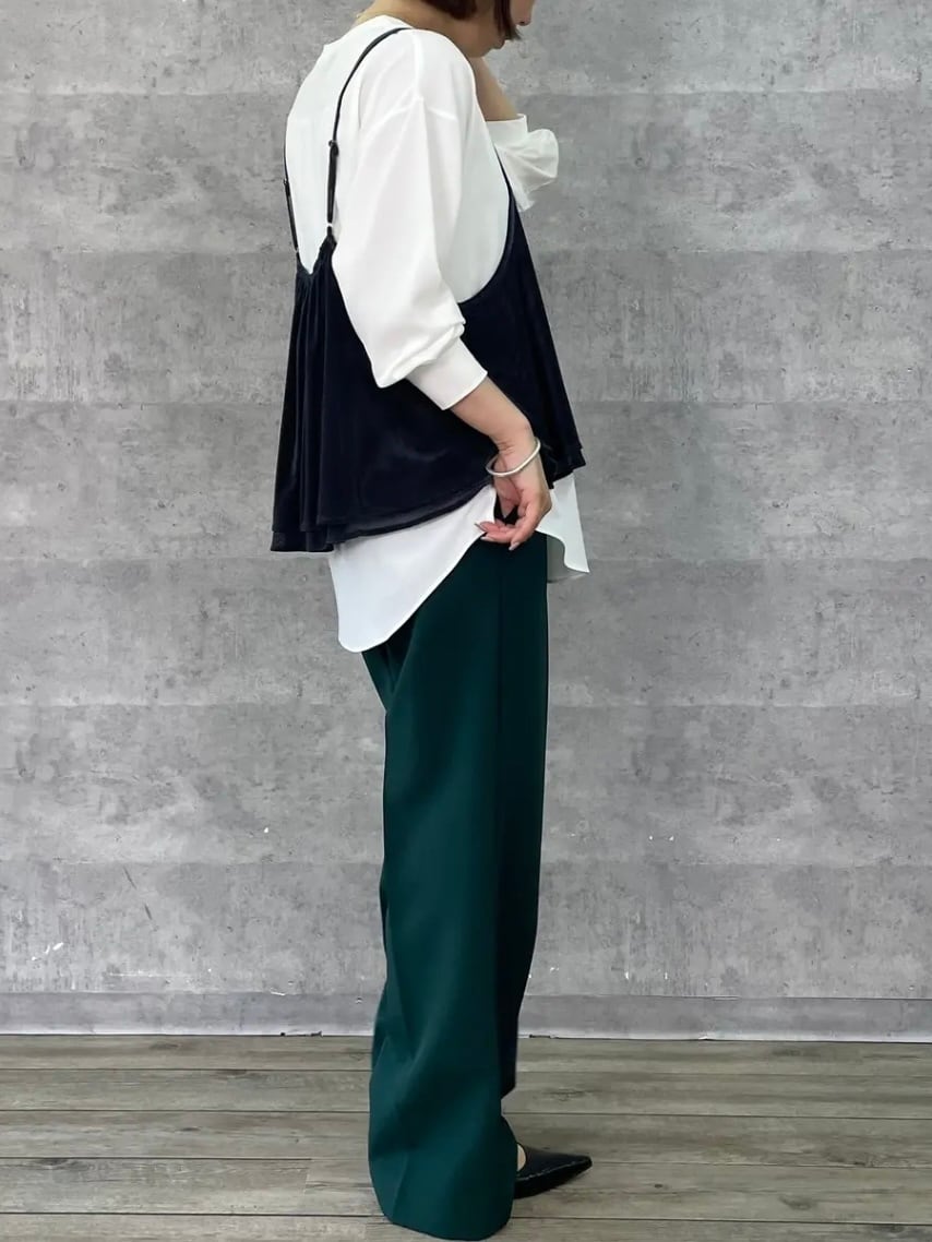 Tシャツやカットソー、シャツなどいろんなトップスと重ねることができます