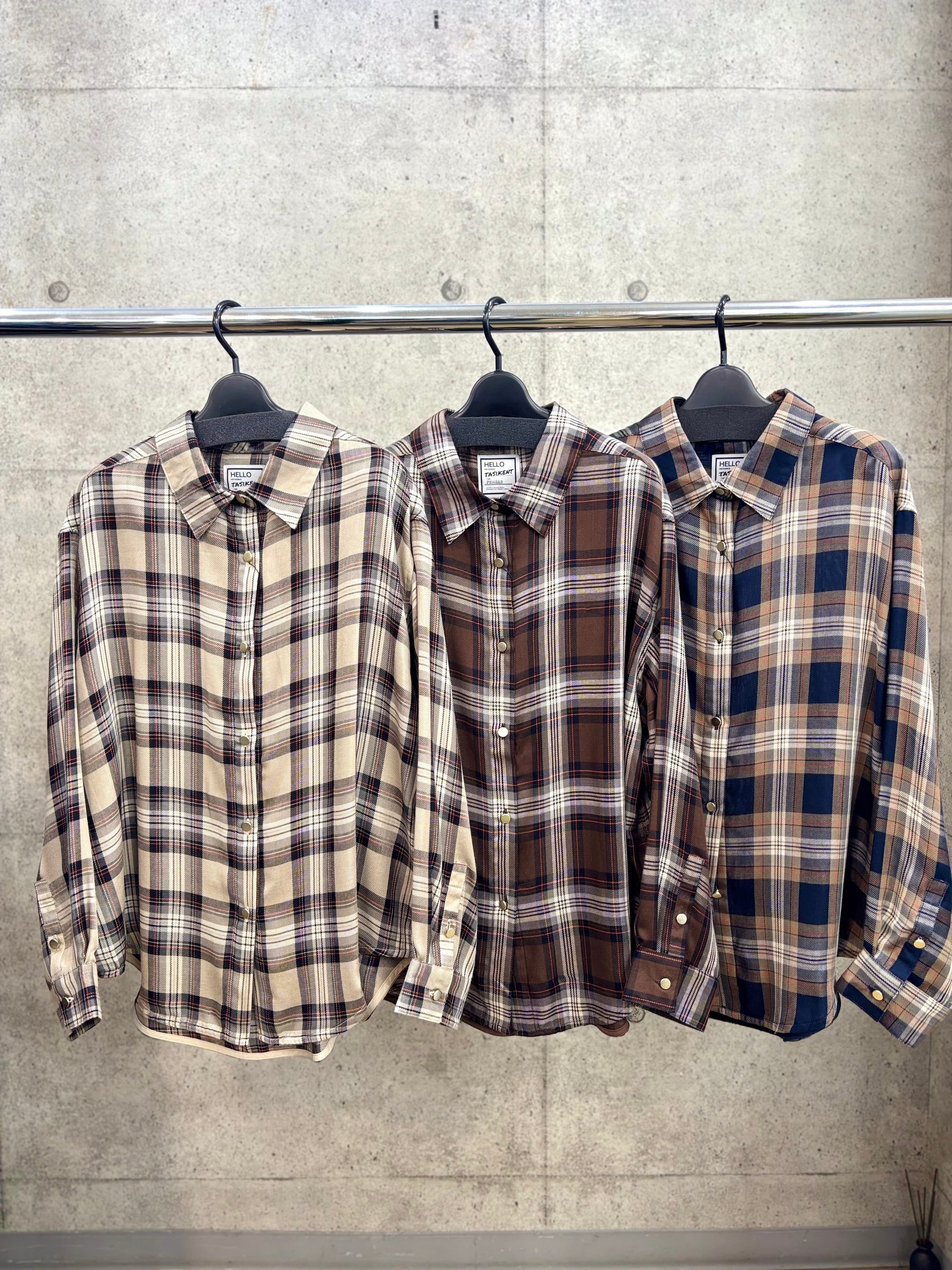 【送料無料】TASIKENT(タシケント)ルーズシルエットチェックシャツ ソフトな質感 手洗い可能 T24-0301-3