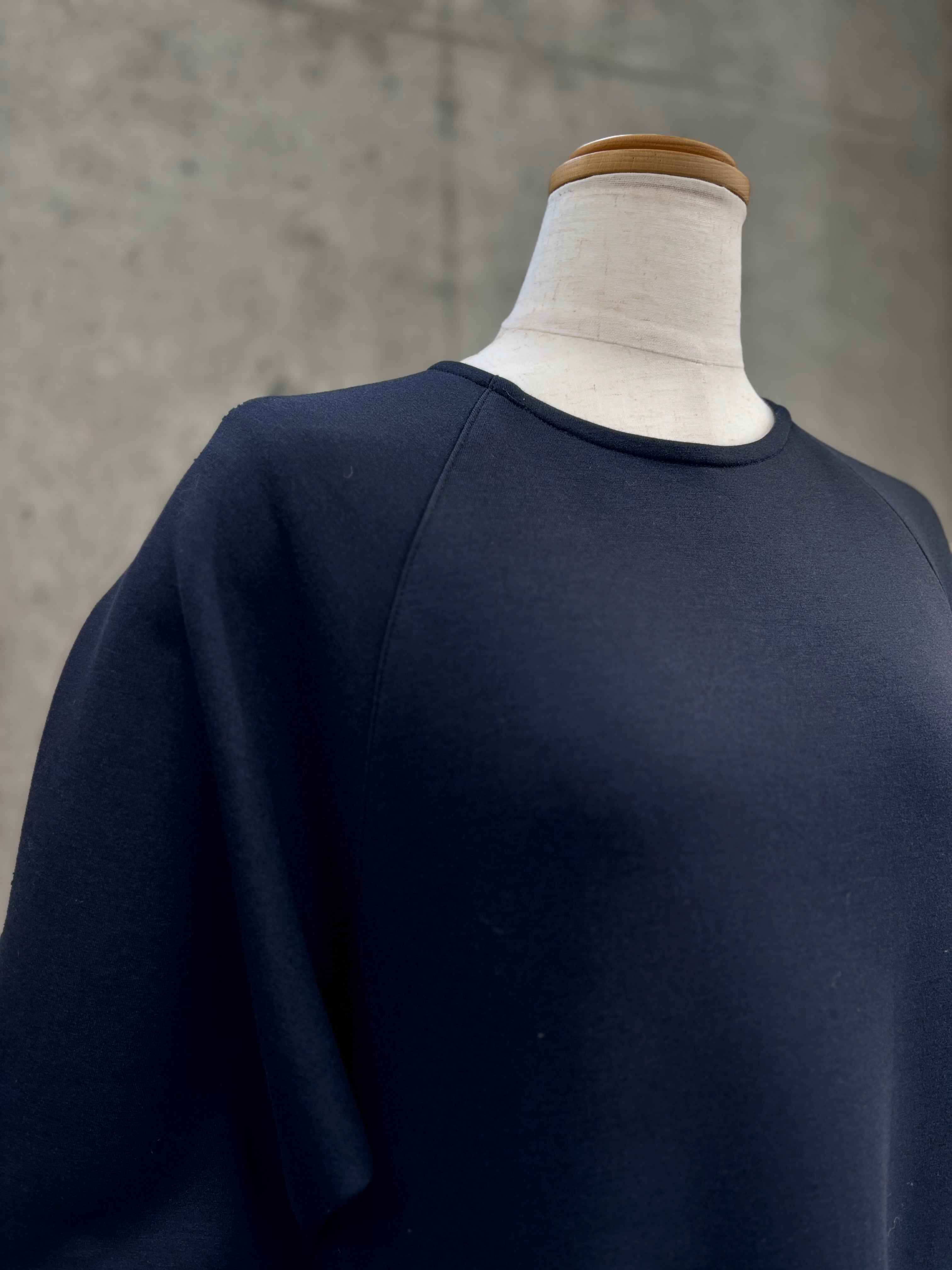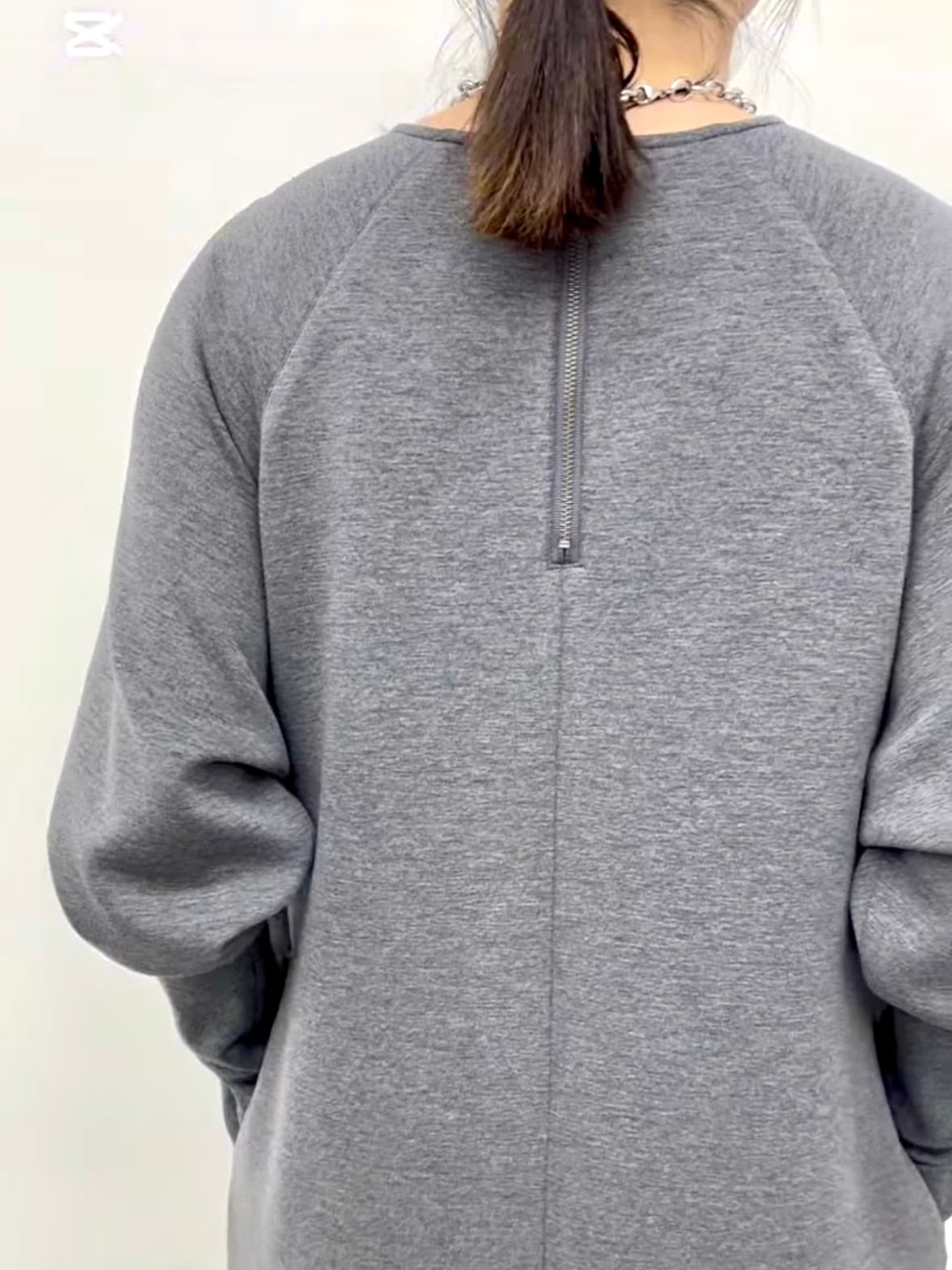 スッキリしたシンプルな形ですが、ハリ感のある感じが体のラインを拾わずゆとり感を出しています