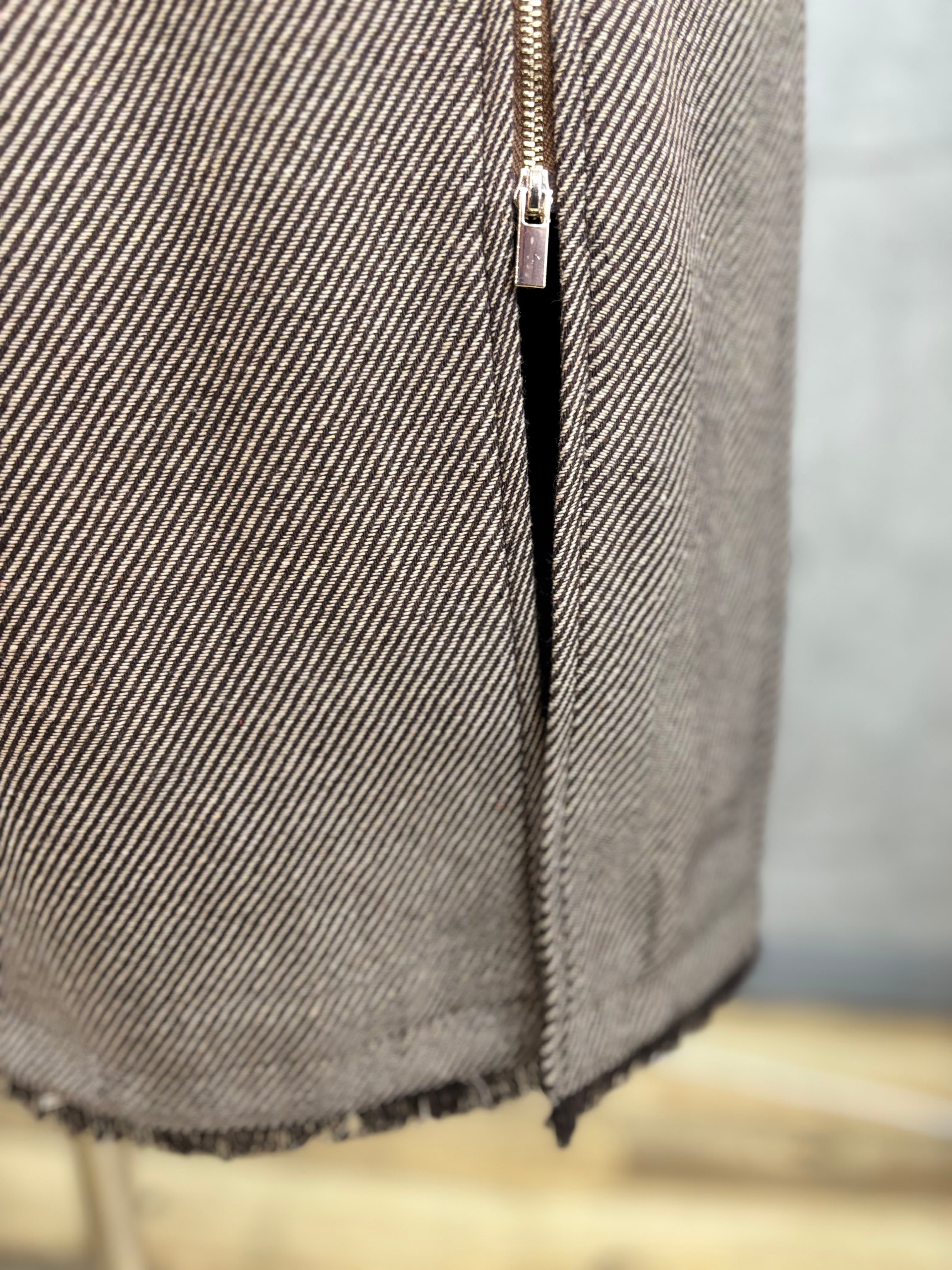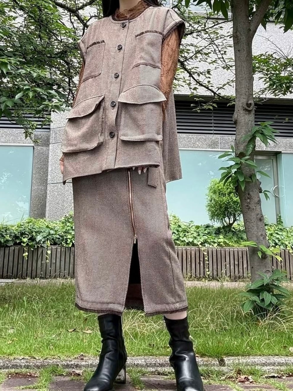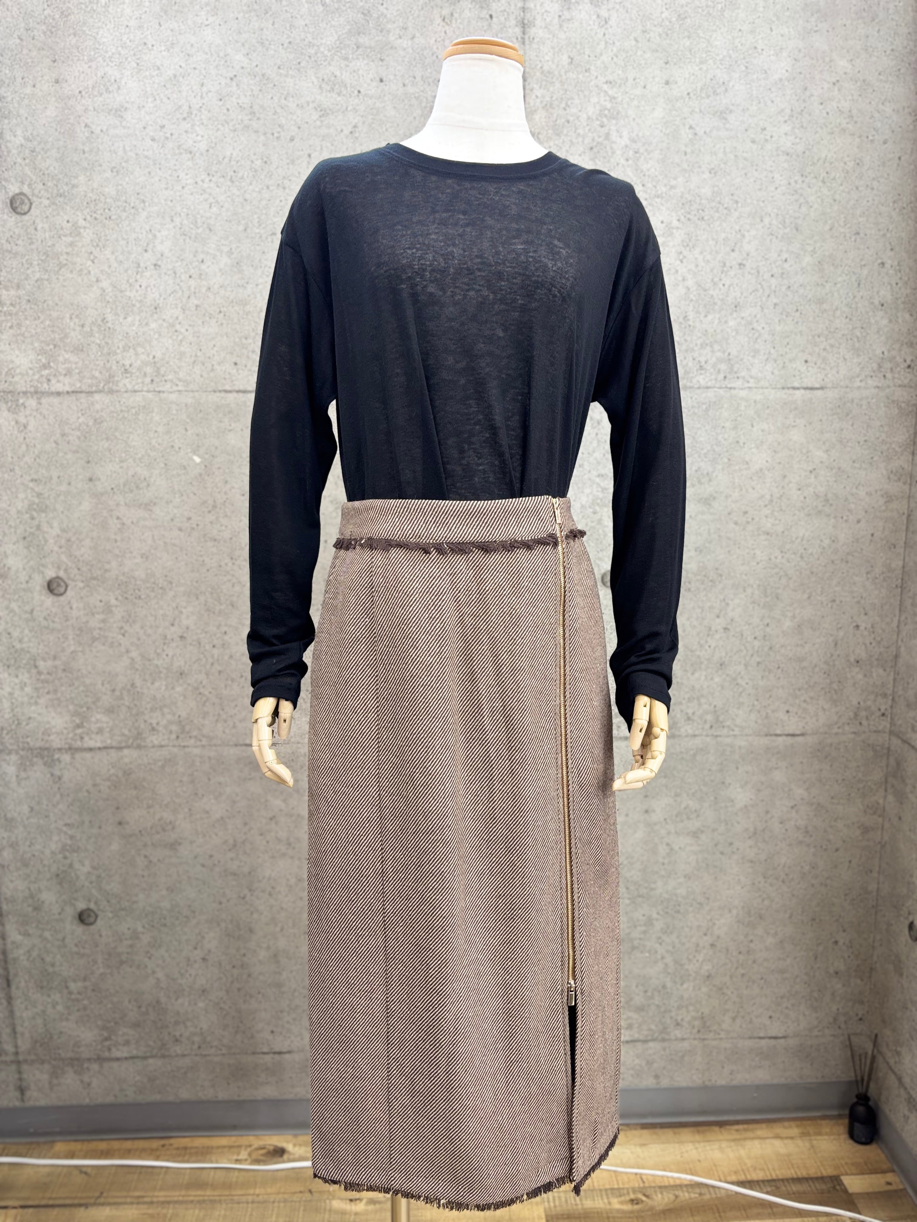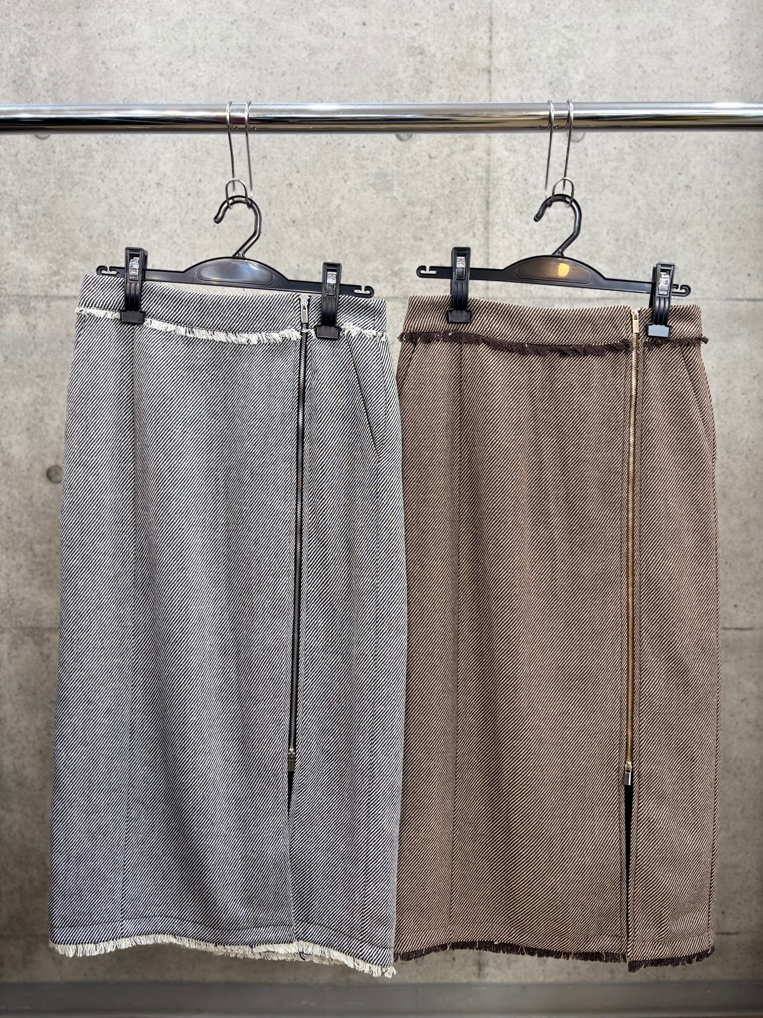 センターに入ったジップは明け具合でスリットを深くでき動きが加わりコーデの幅が広がります
