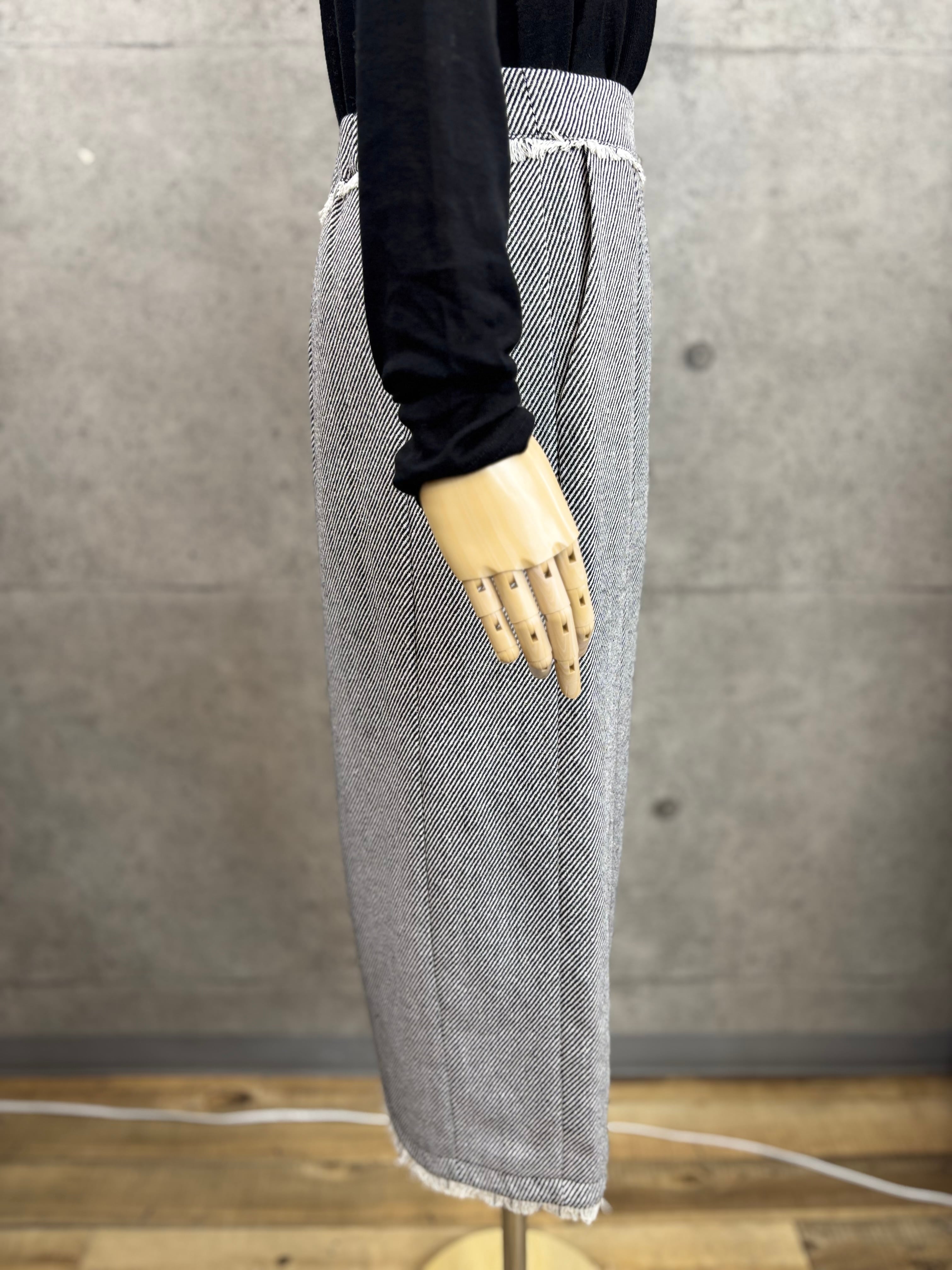 タイトながらも柔らかいツイード生地とウエストのゴムで履き込みもラクチン