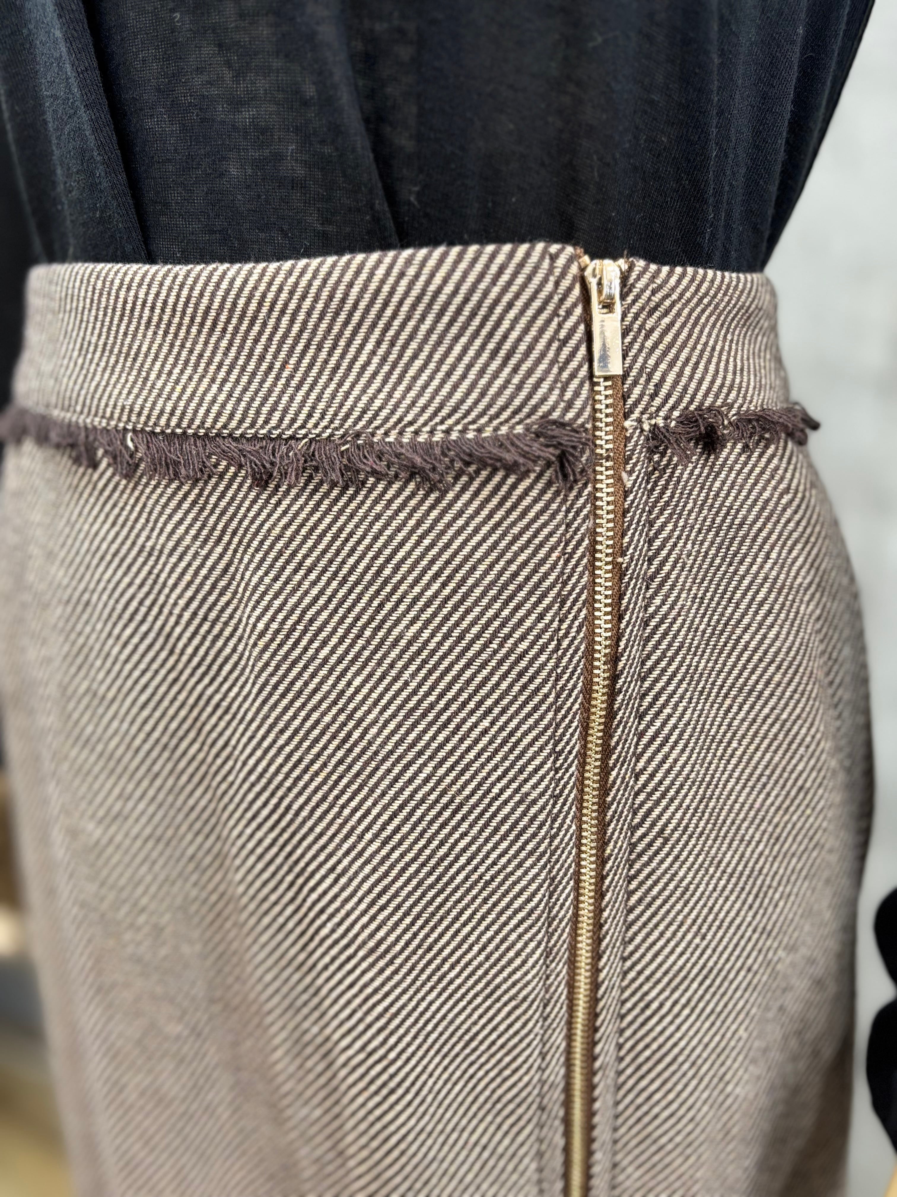 裾とウエストに施されたフリンジが程良い抜け感を出してくれてこなれ感をプラス