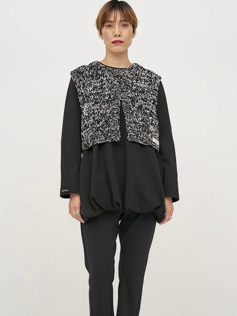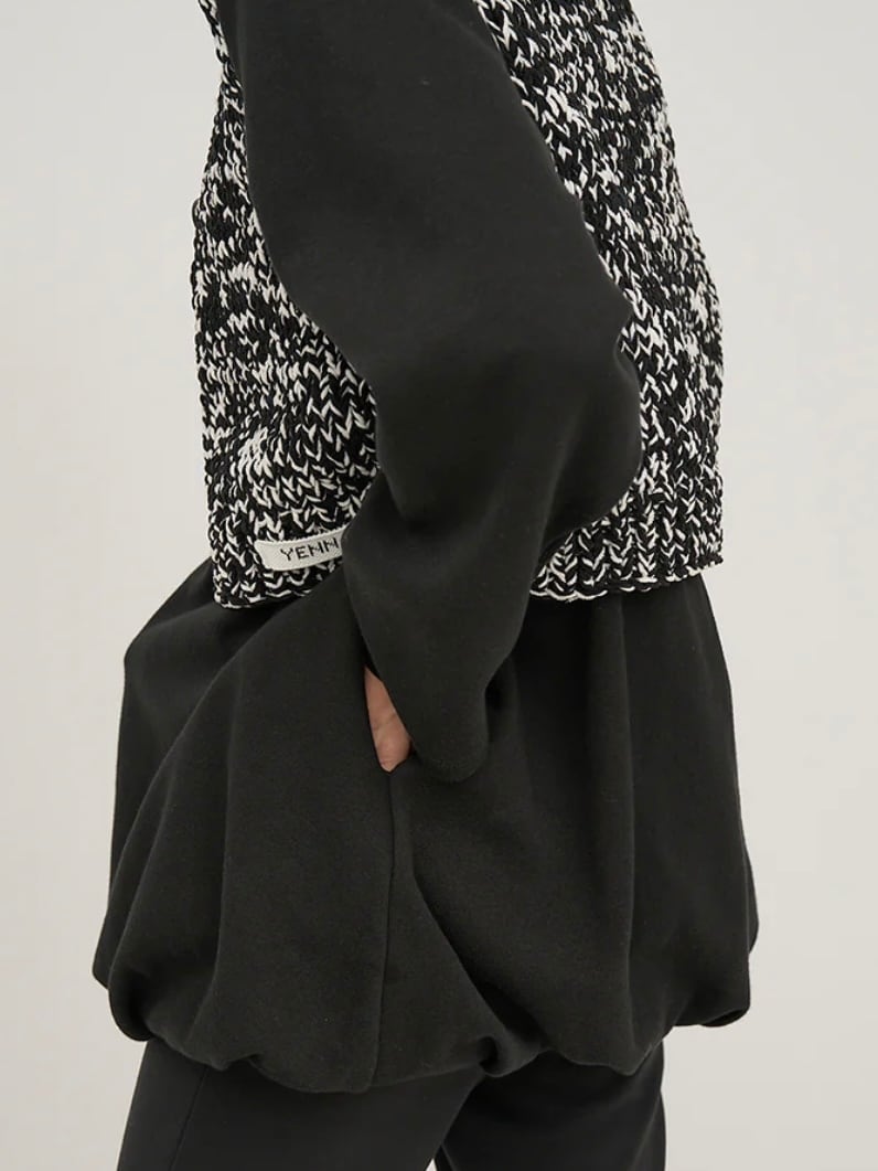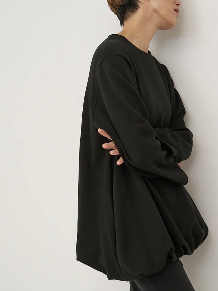 裾のバルーン仕様で作るふくらんだフォルムが特徴で、カジュアルなアイテムに柔らかくフェミニンな雰囲気を与えます