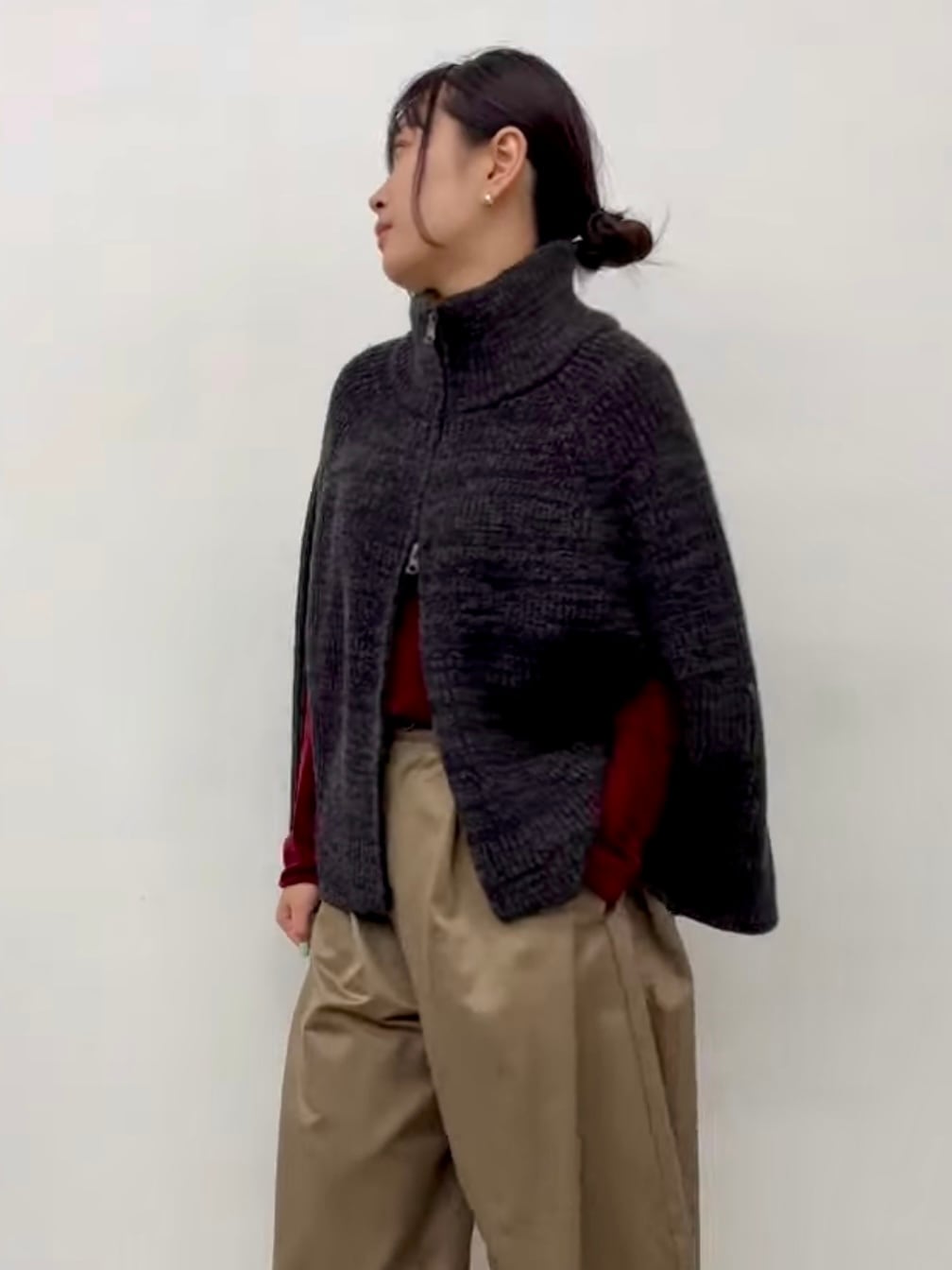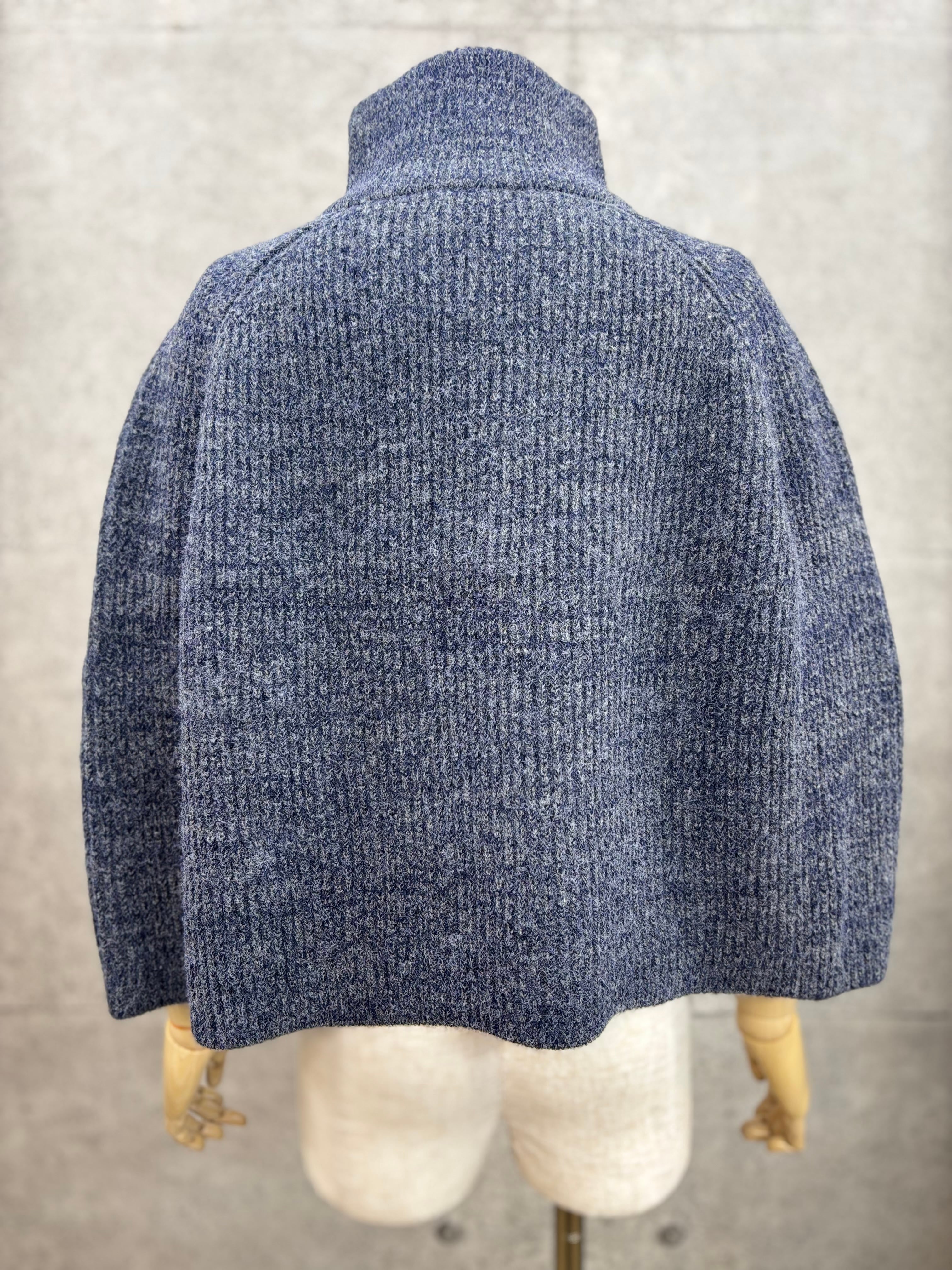 ダブルジップのついたミックス糸でざっくり編んだニットポンチョ