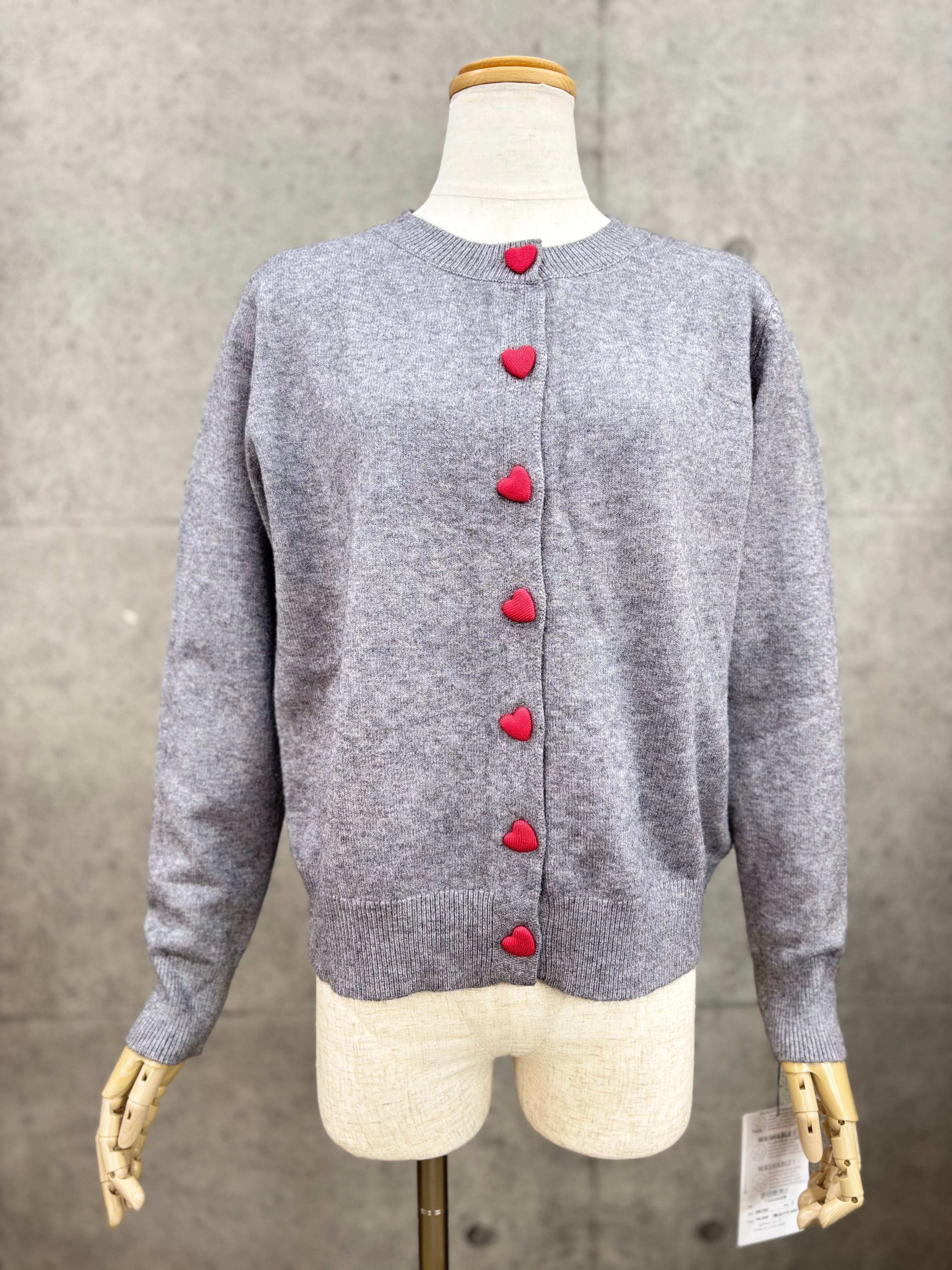 ハートのボタンがかわいいアクセントのカーディガン