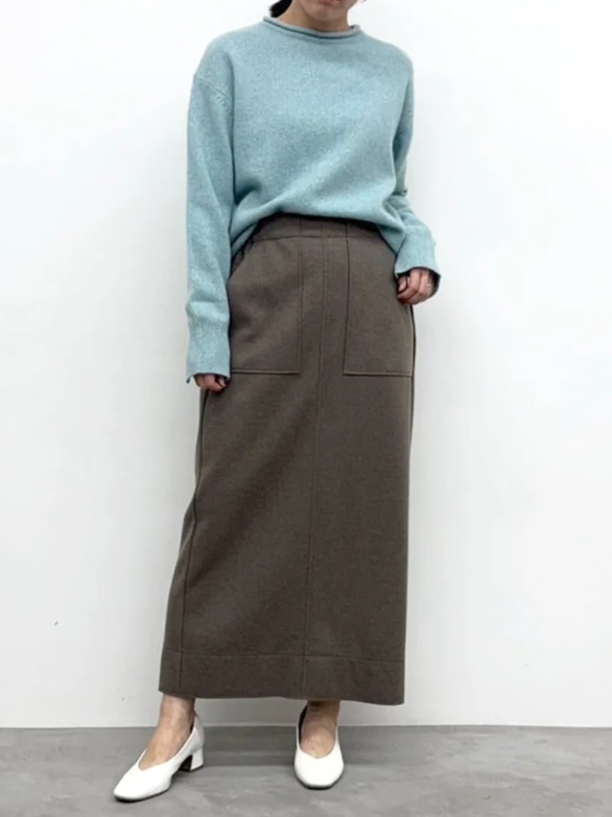 ウールのような温かみのある機能性生地を使ったタイトスカート