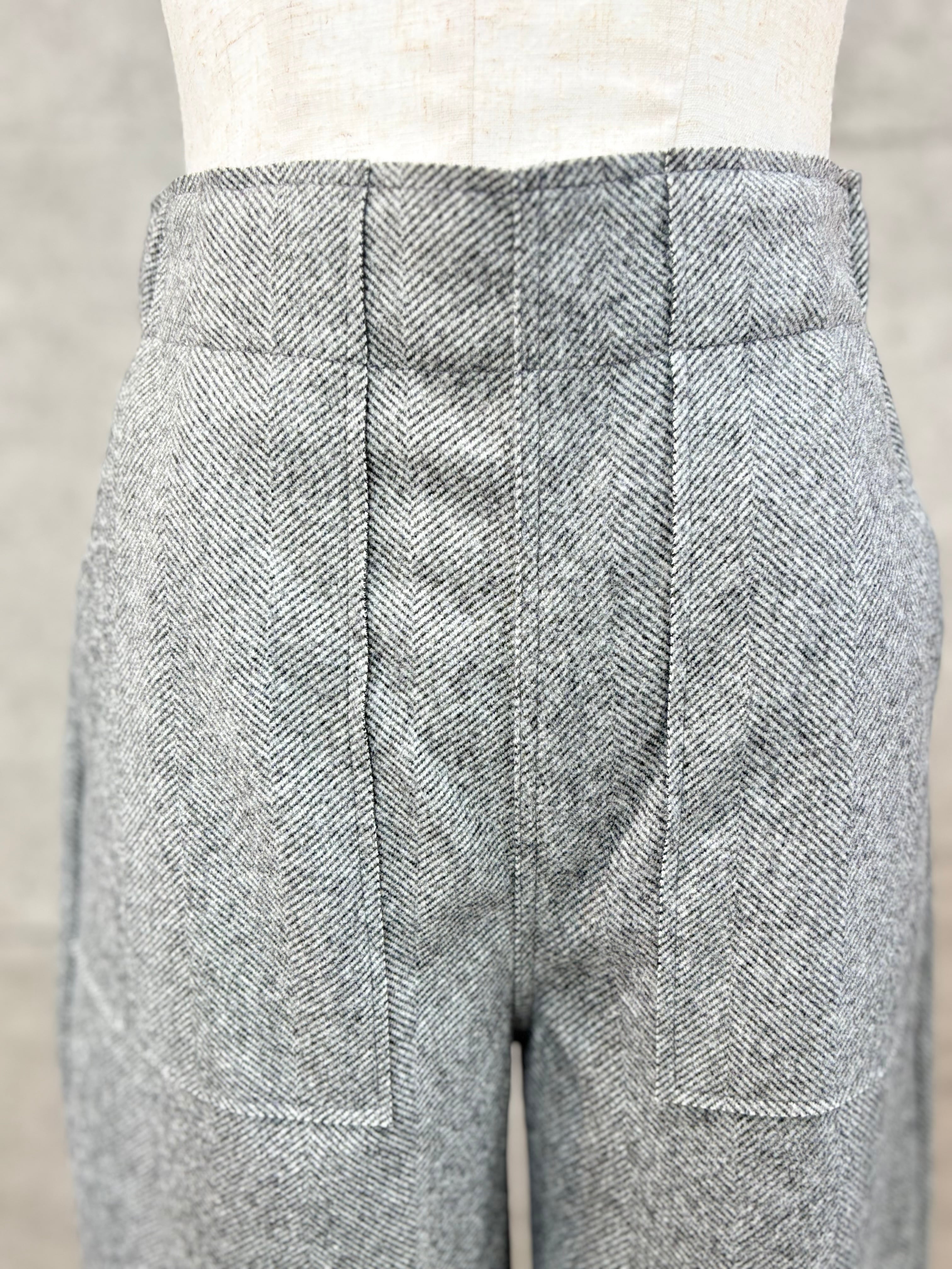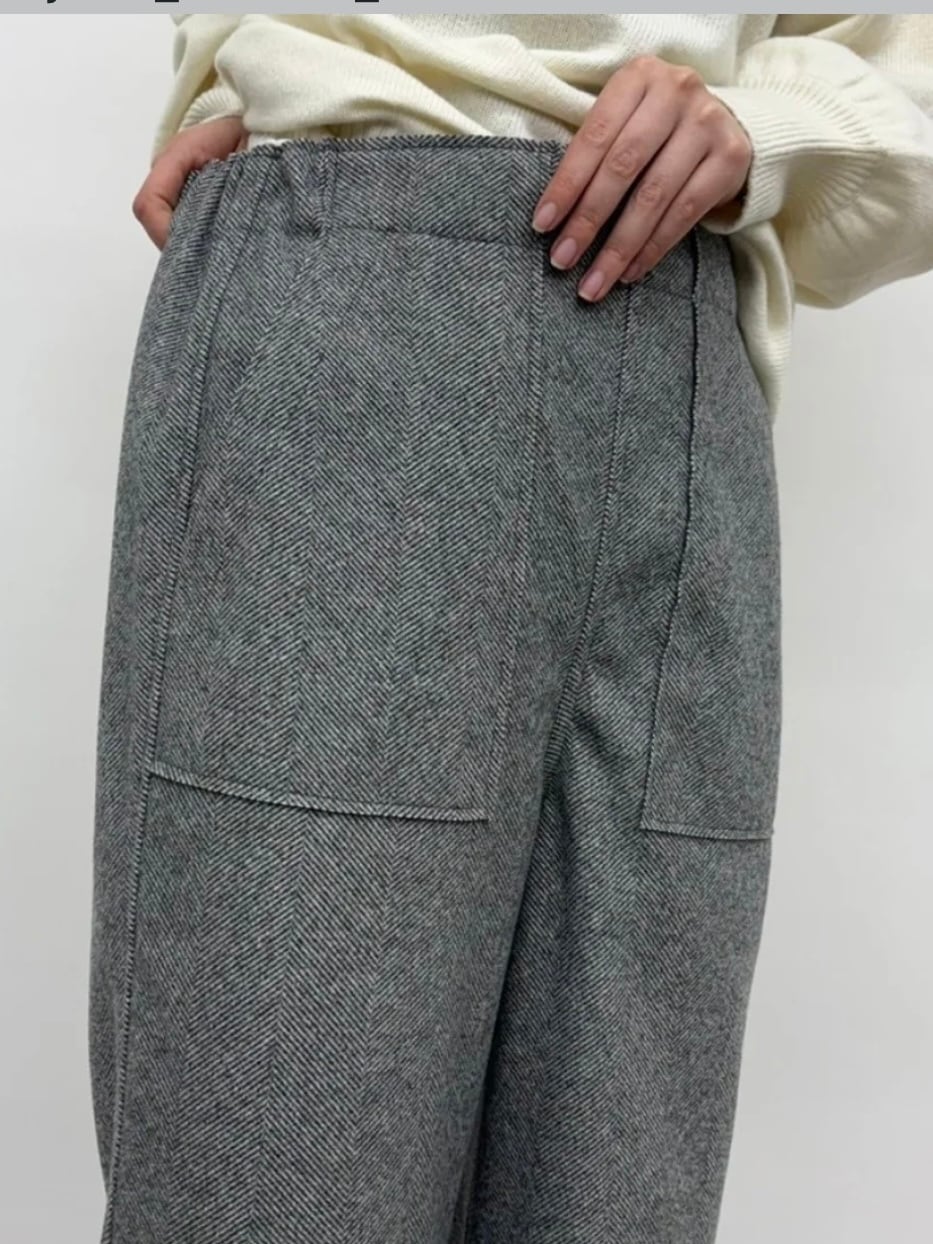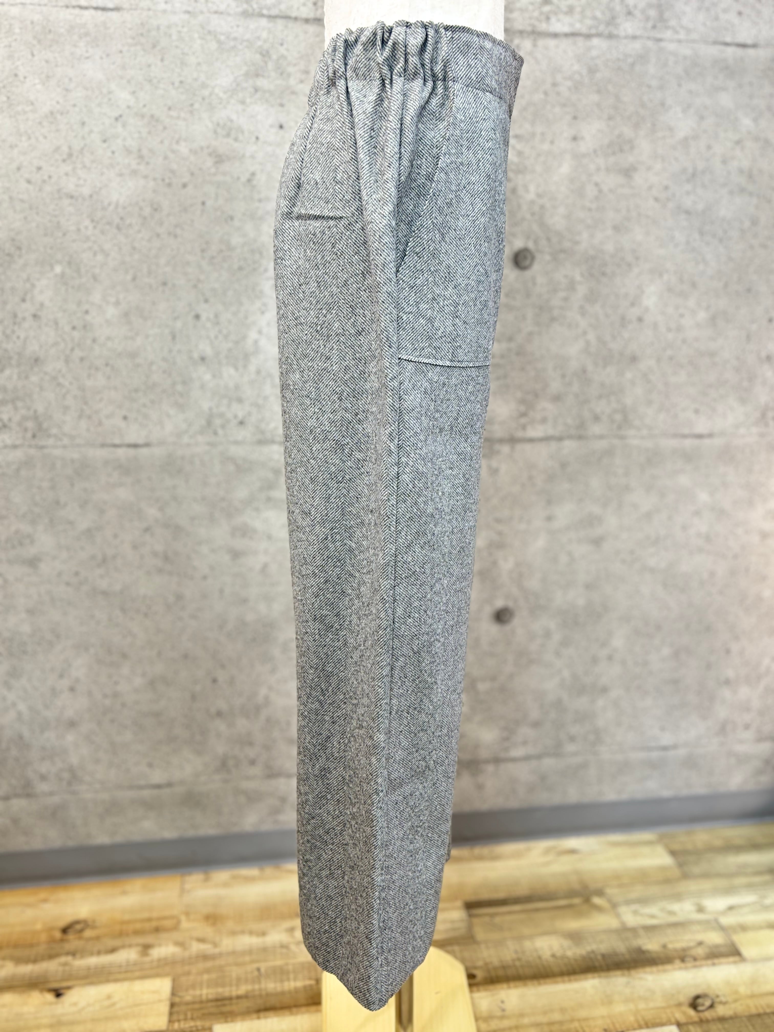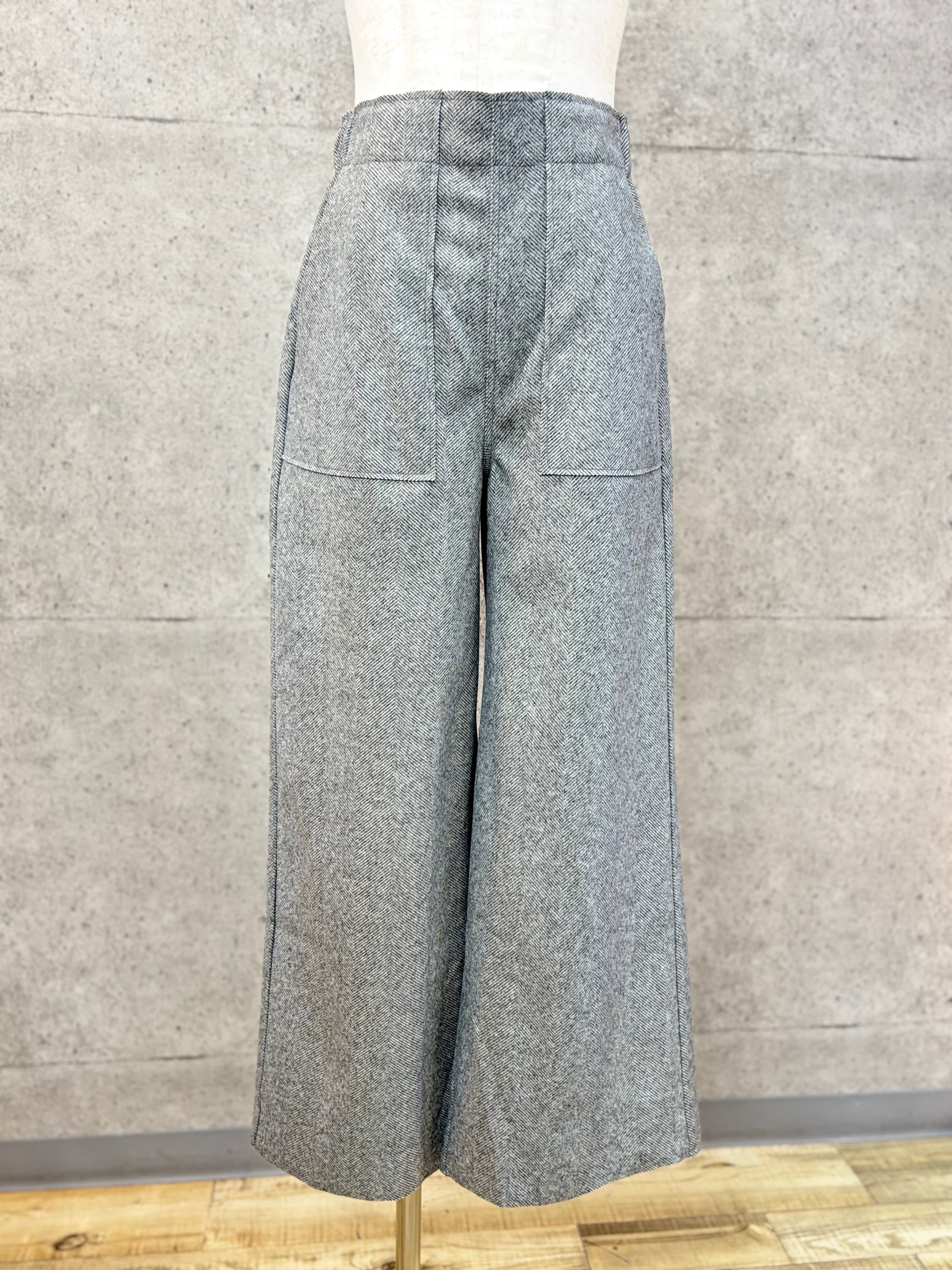 スッキリとしたワイドパンツで、へリンボン柄なので温かみが増し秋冬のコーデに一役買います