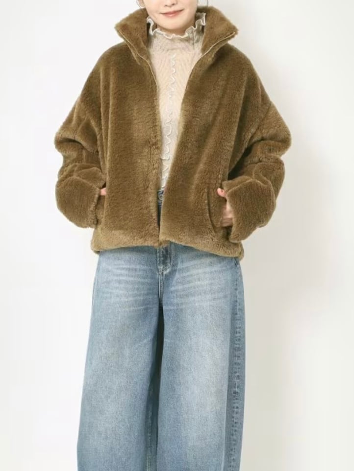 ふっくらとした良質なフェイクファー生地のブルゾン
