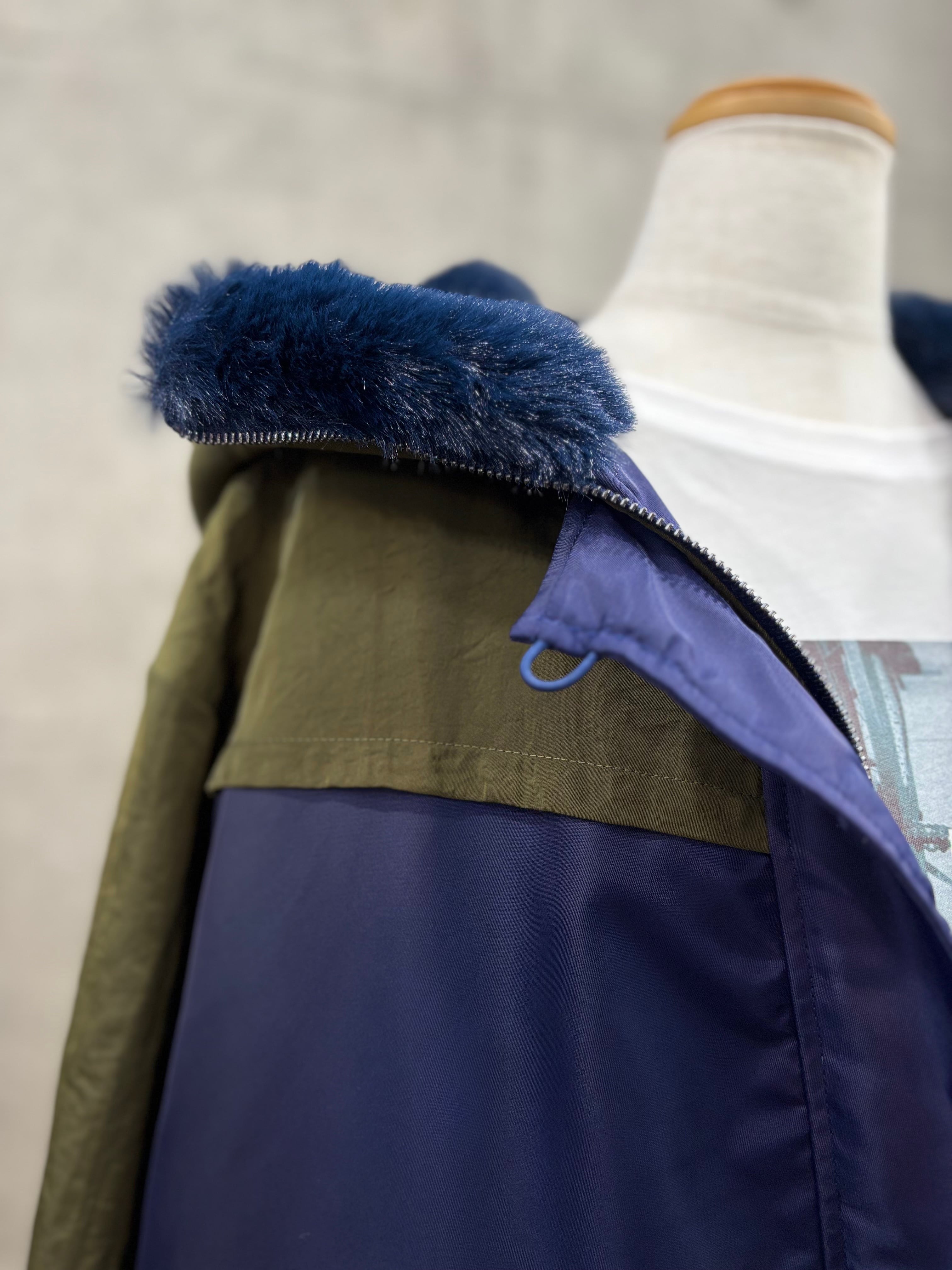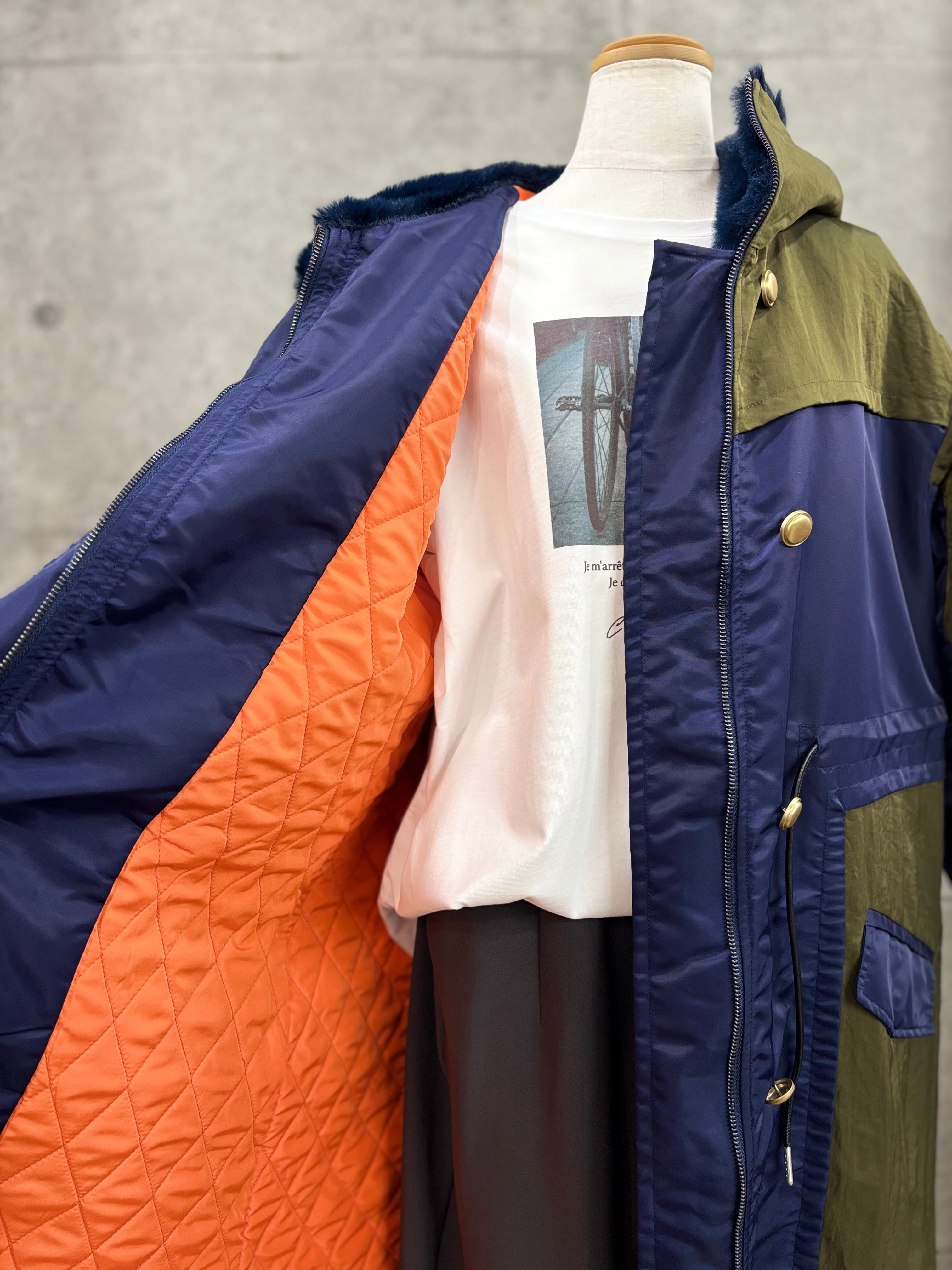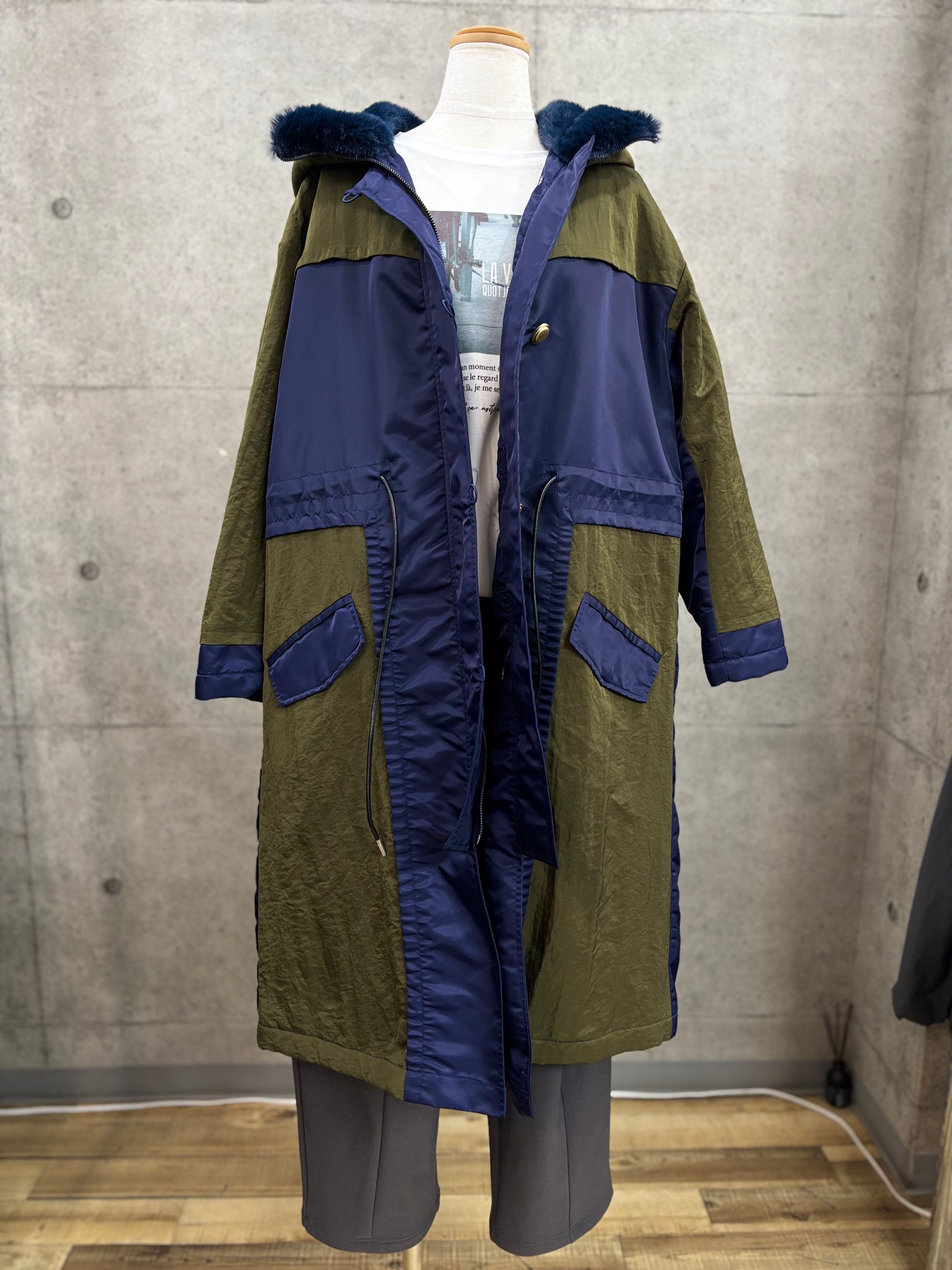 【送料無料】MICALLEMICALLE(ミカーレミカーレ) バイカラーロングコート カーキ ネイビー 中綿カジュアル MMI101CDC