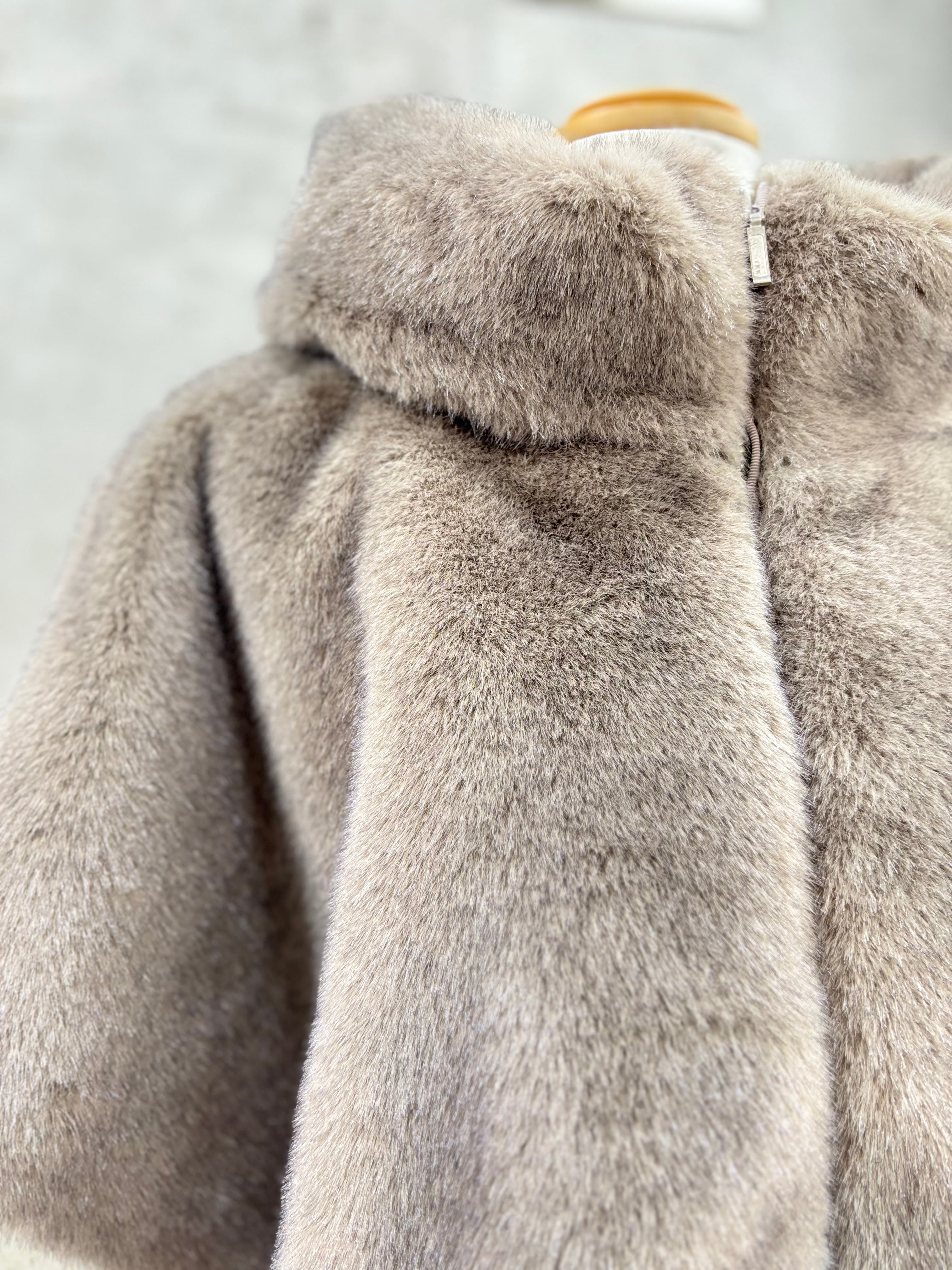 ふんわりとしたフェイクファー素材がシーズンムードを高める大人カワイイショートベスト