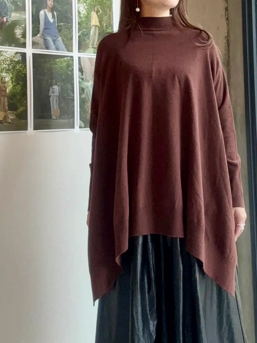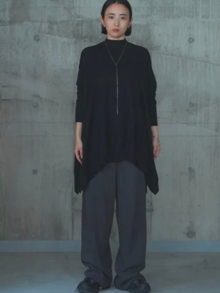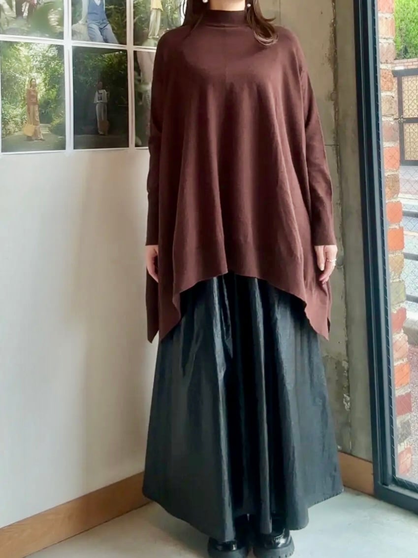 ハイネックが大人っぽく見せてくれ、デニムやワイドパンツと合わせるのはもちろん、スカートやハーフパンツとも相性良くコーディネートして頂けます