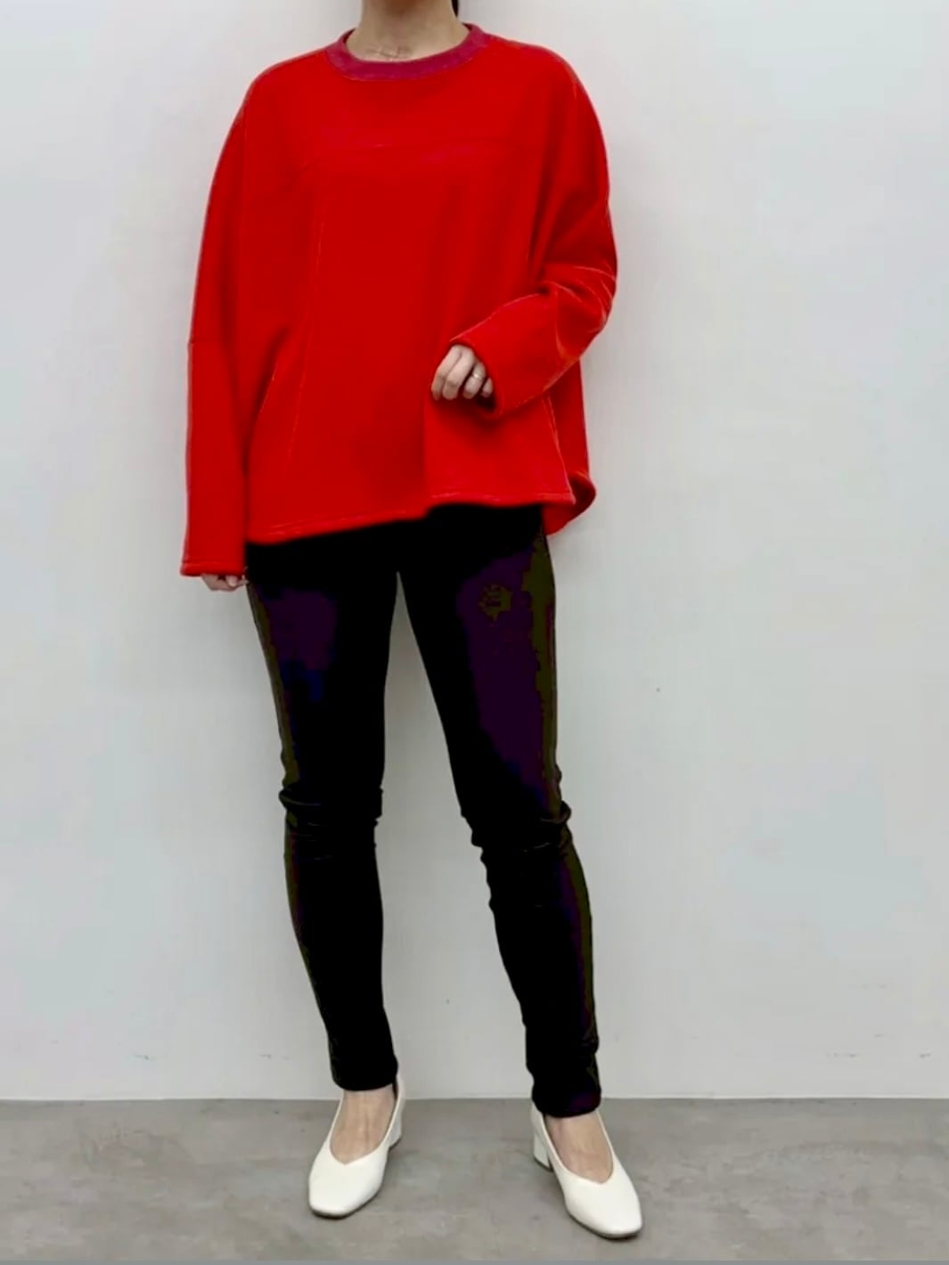 縦横2WAYストレッチジャージー素材で着心地バツグン、生地自体も裏面をベロアのように加工した素材でちくちく感の無い滑らかな肌触りです