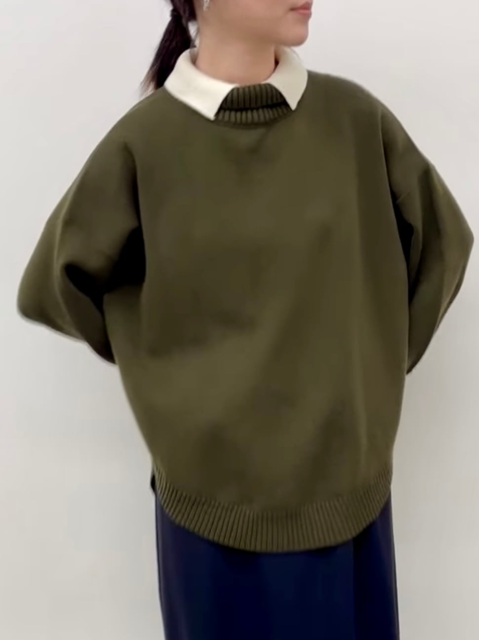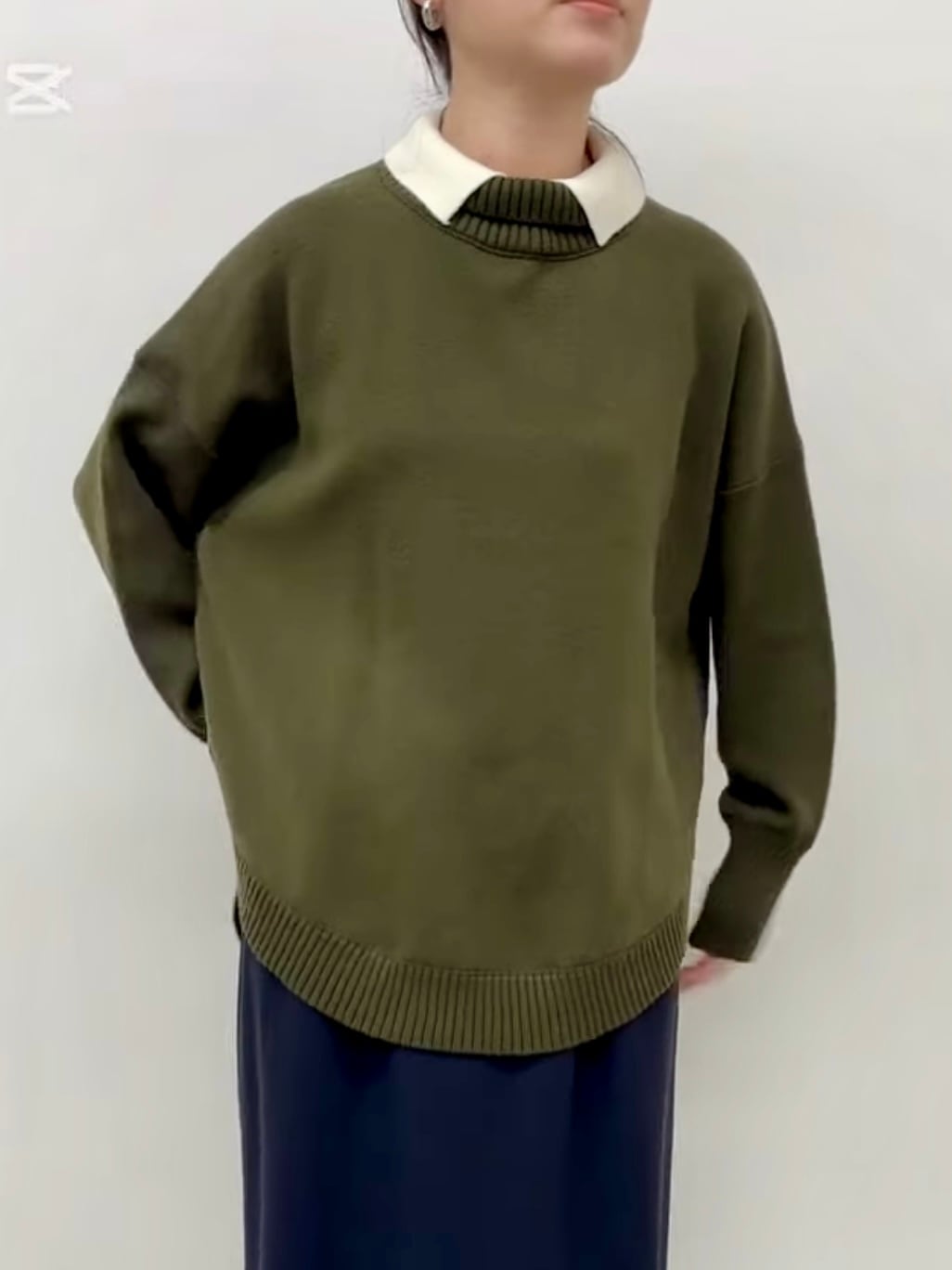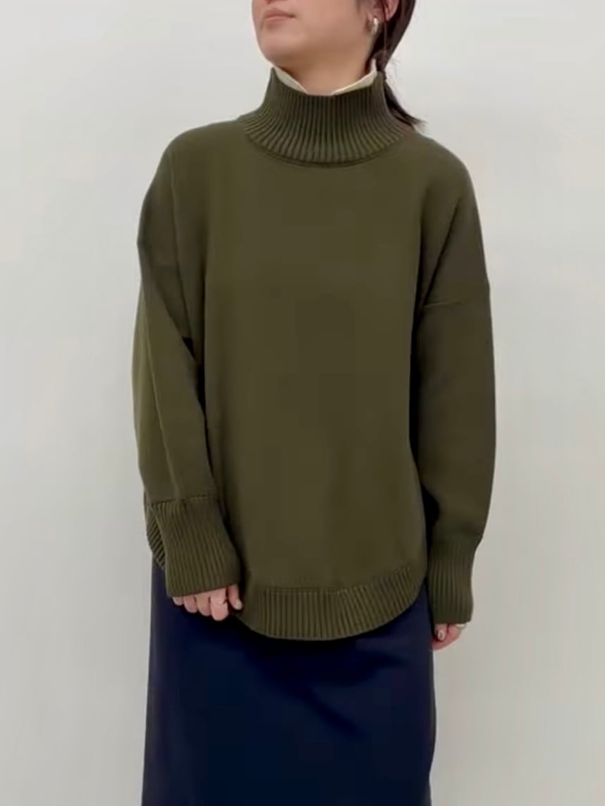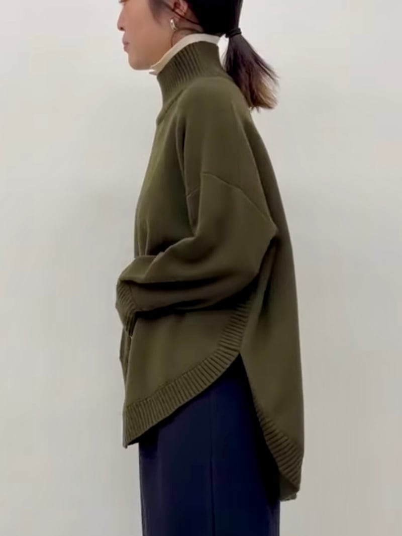 【送料無料】CLOCHE(クロッシェ)えり付き裾ラウンドハイネックプルオーバ ニット 2WAY 大人カジュアル キレイめカジュアル 手洗い可能 552-85578