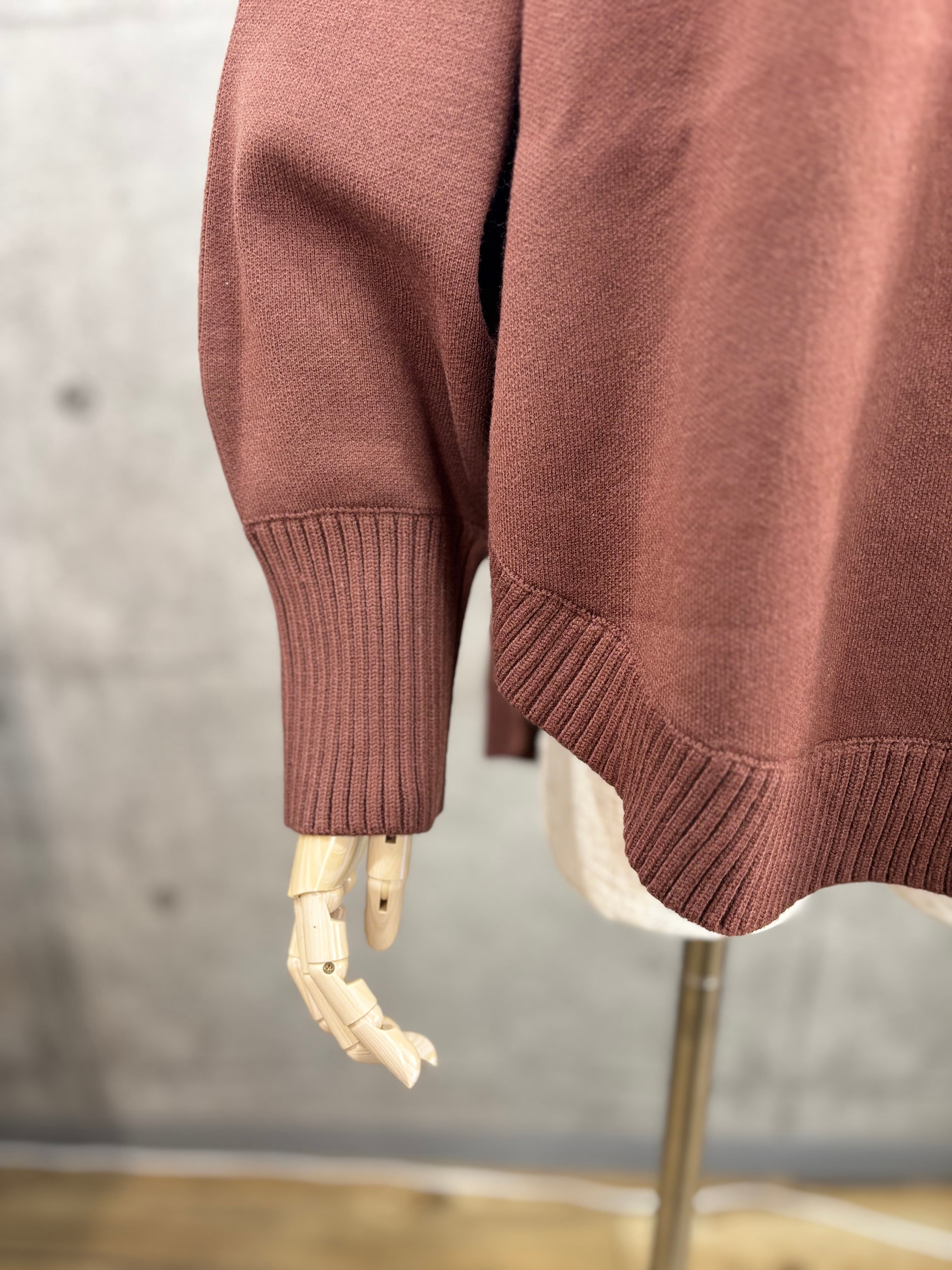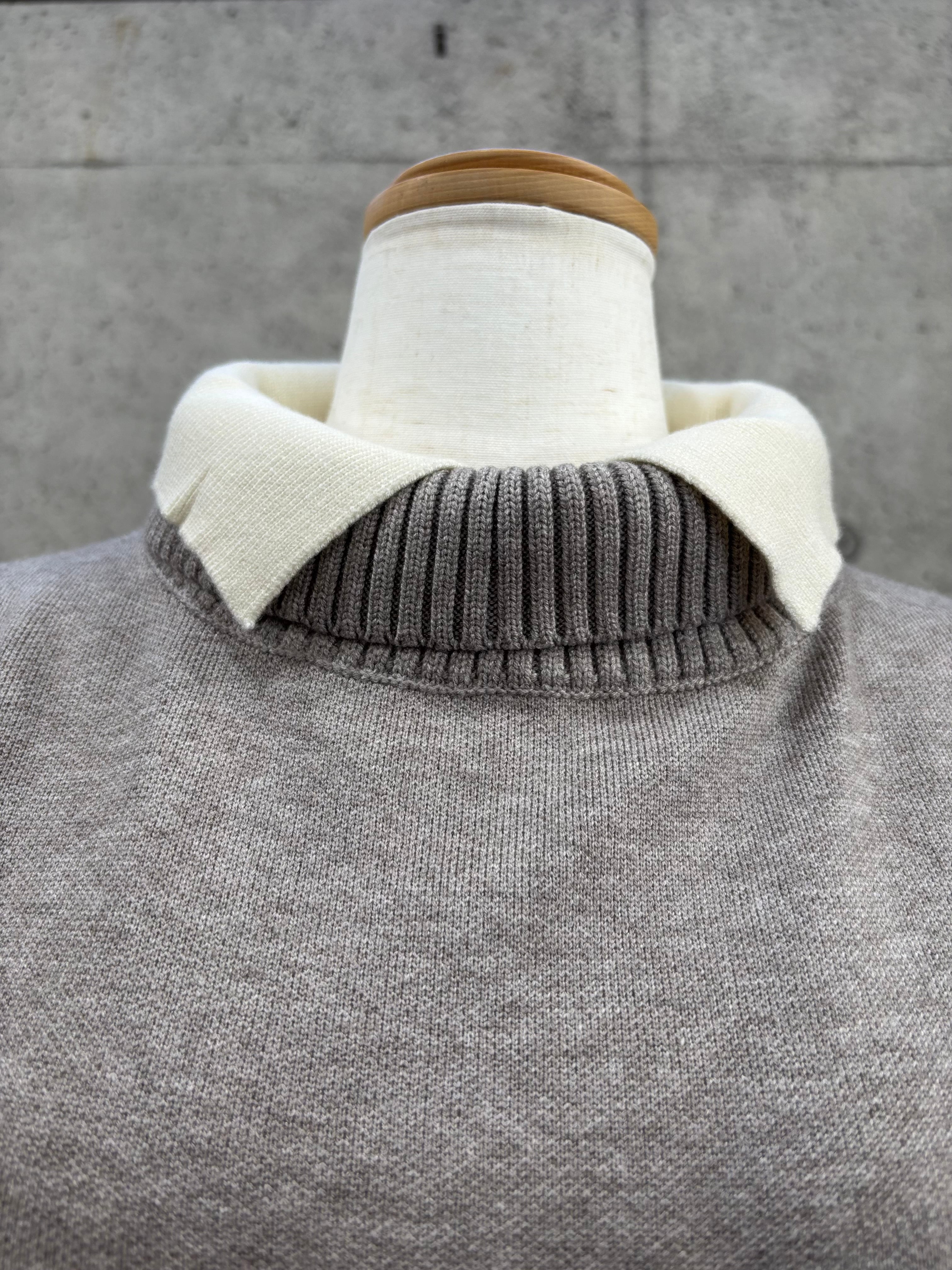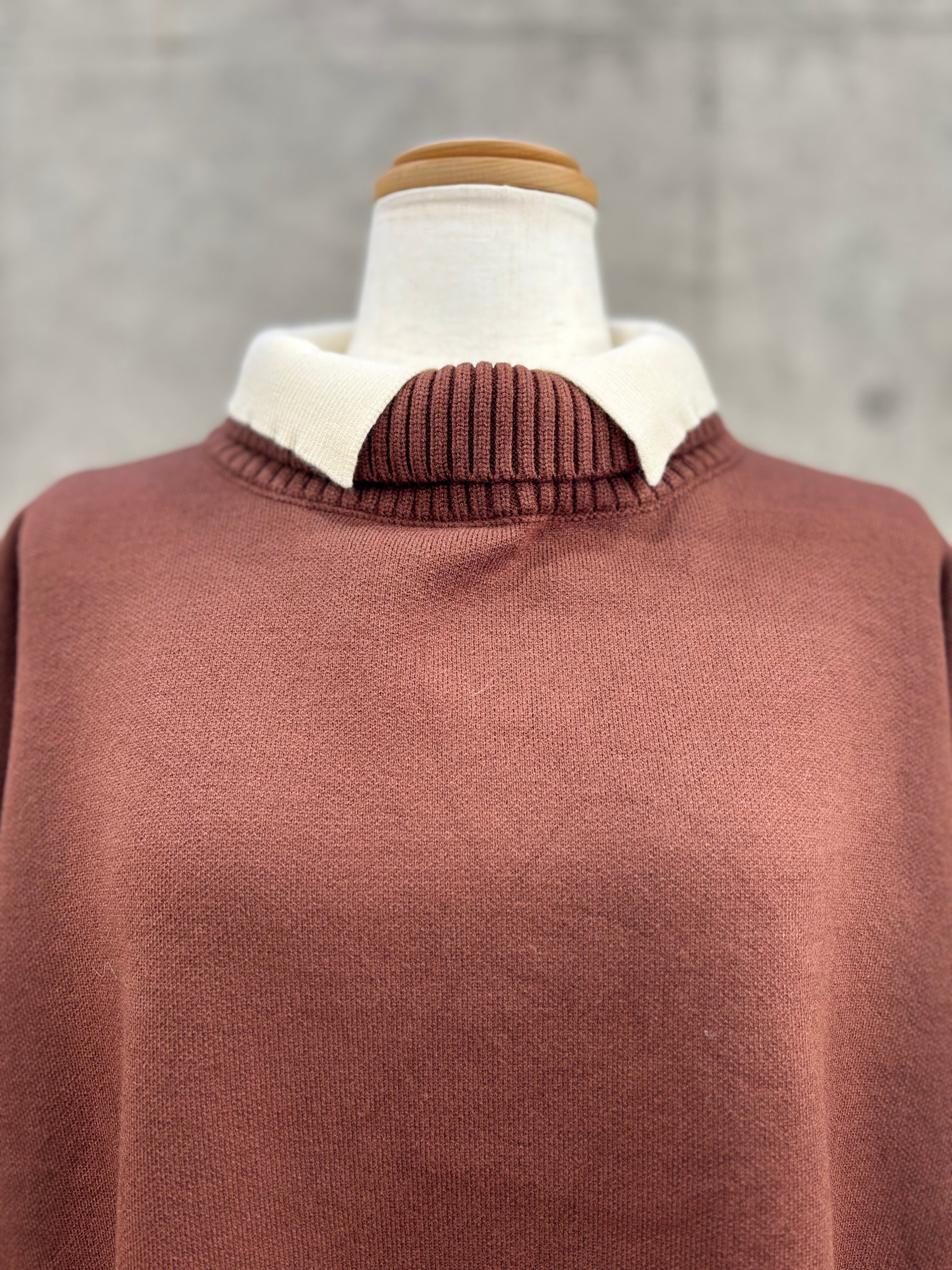 首元はハイネックですが、裏側にホワイトの襟が付いているので折り返すと襟が出てくる2WAY仕様