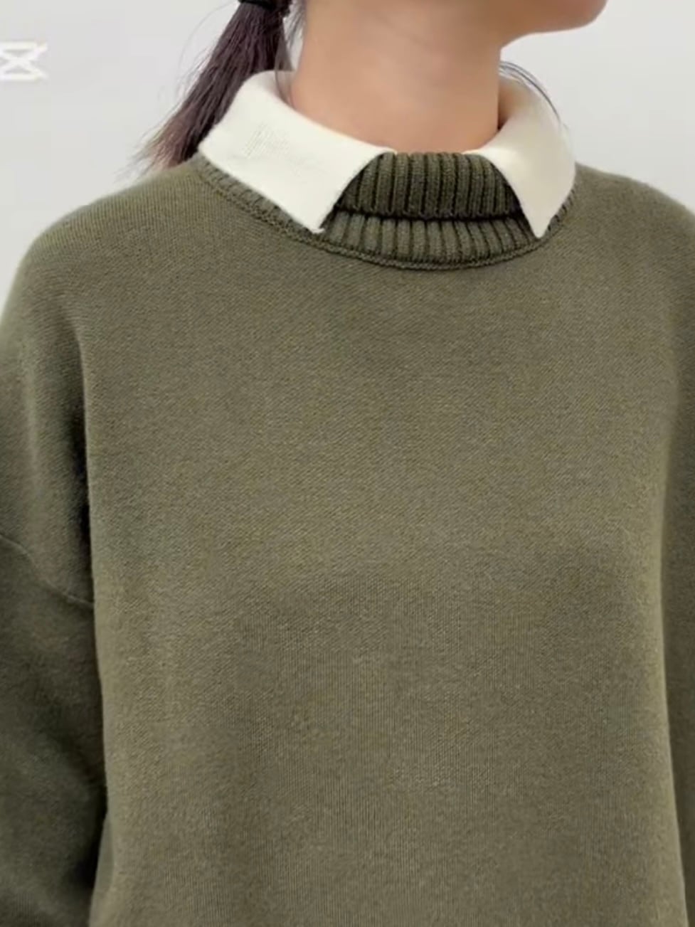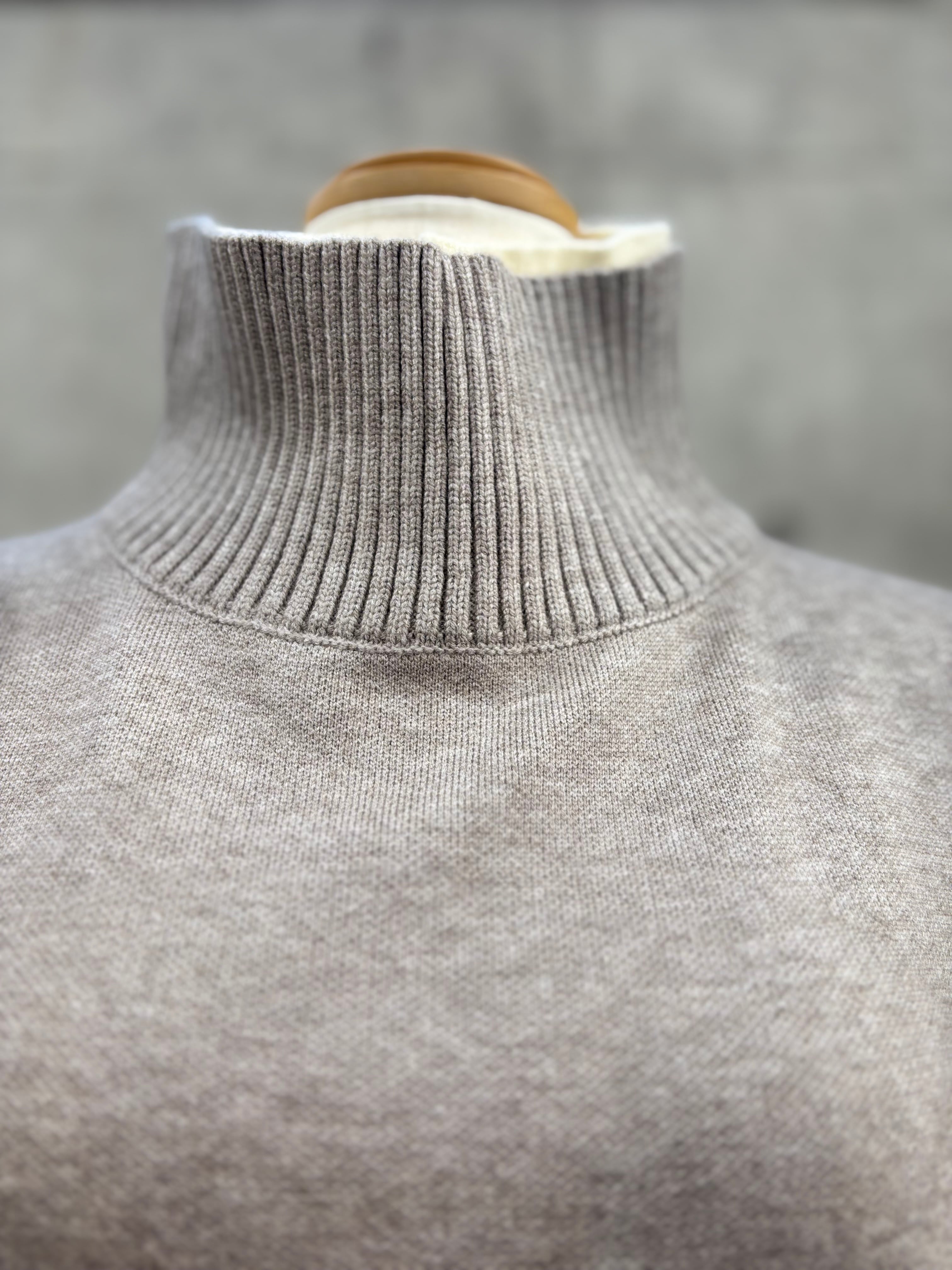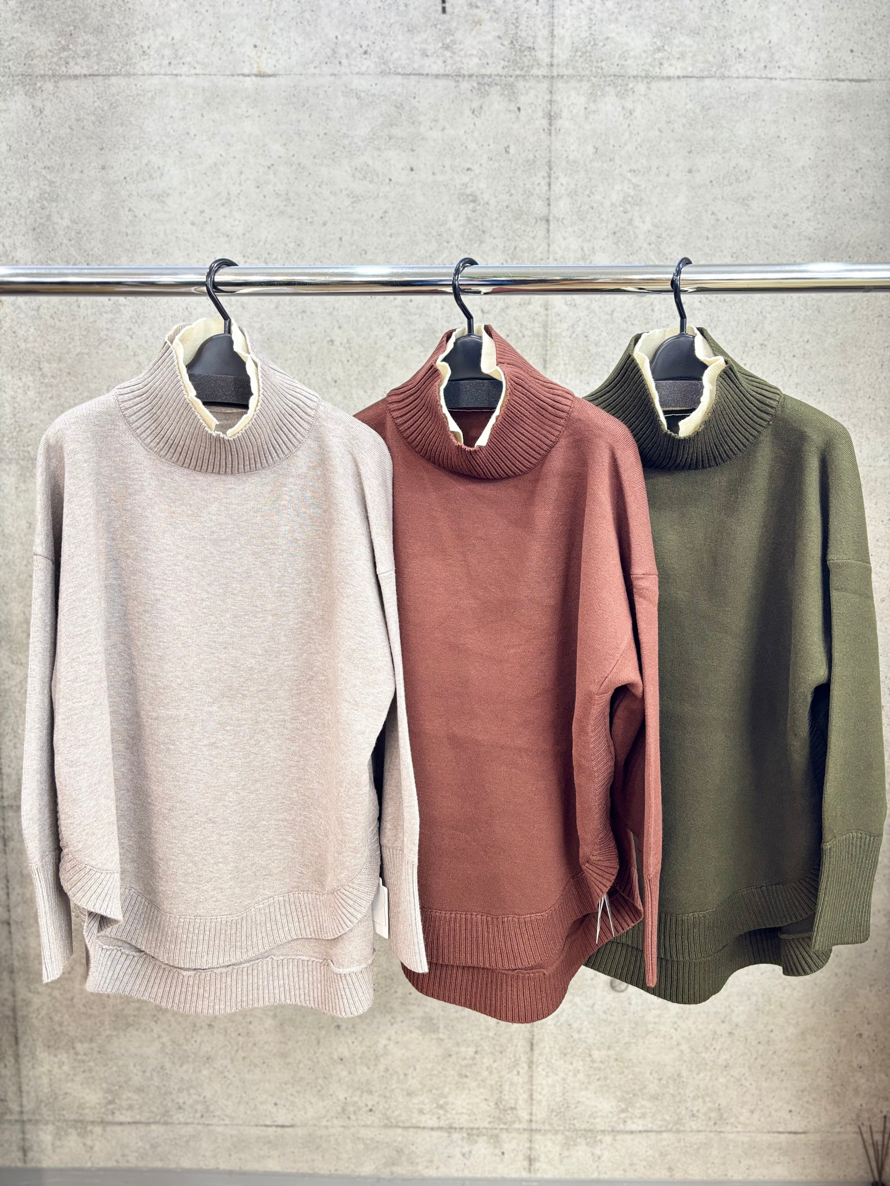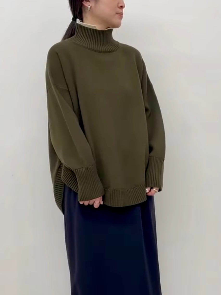 首元はハイネックですが、裏側にホワイトの襟が付いているので折り返すと襟が出てくる2WAY仕様