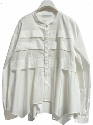 太めのピンタックと裾のレギュラーヘムがポイントのフレアシャツ