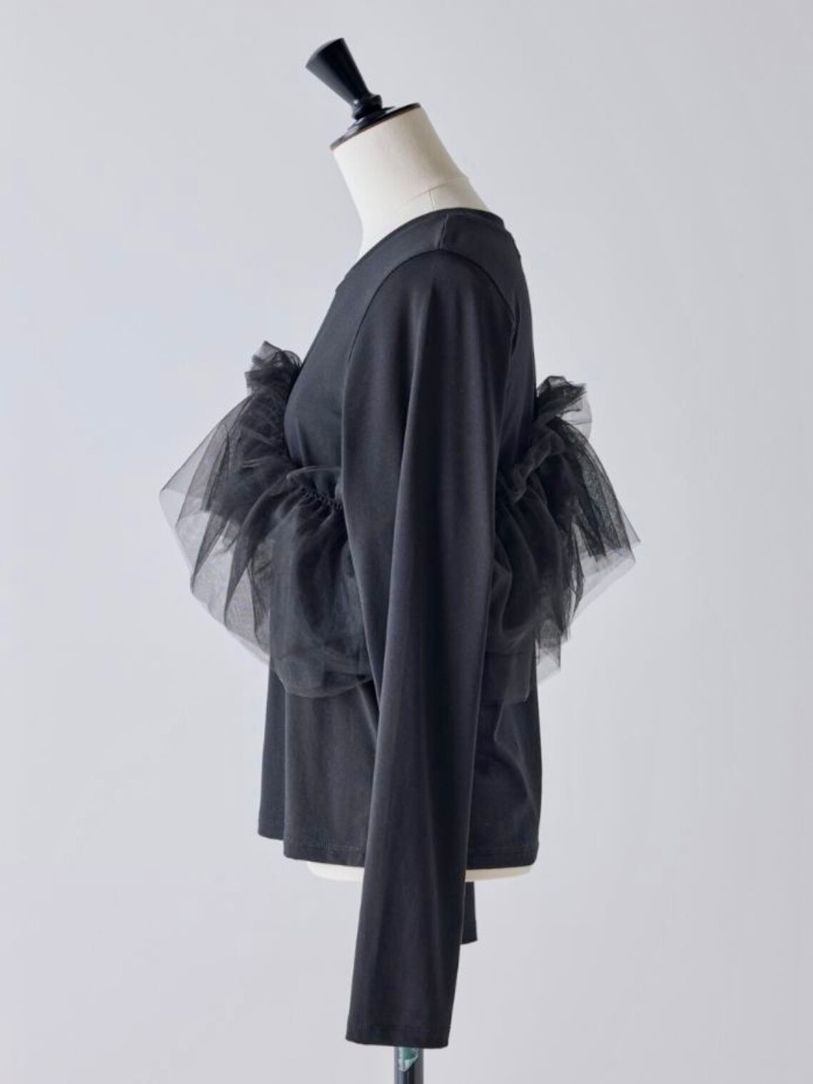 肌触りのいいカットソー素材をベースに、華やかなチュールフリルをあしらいました