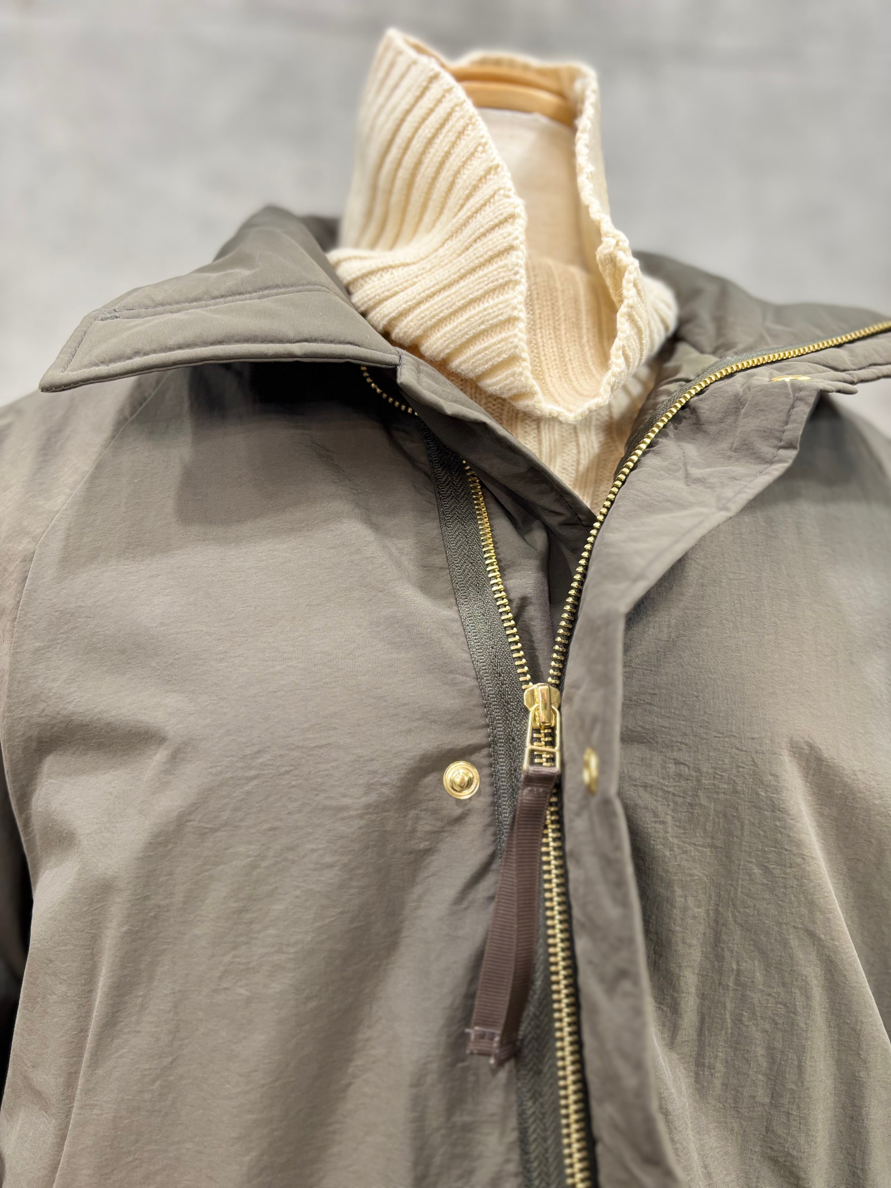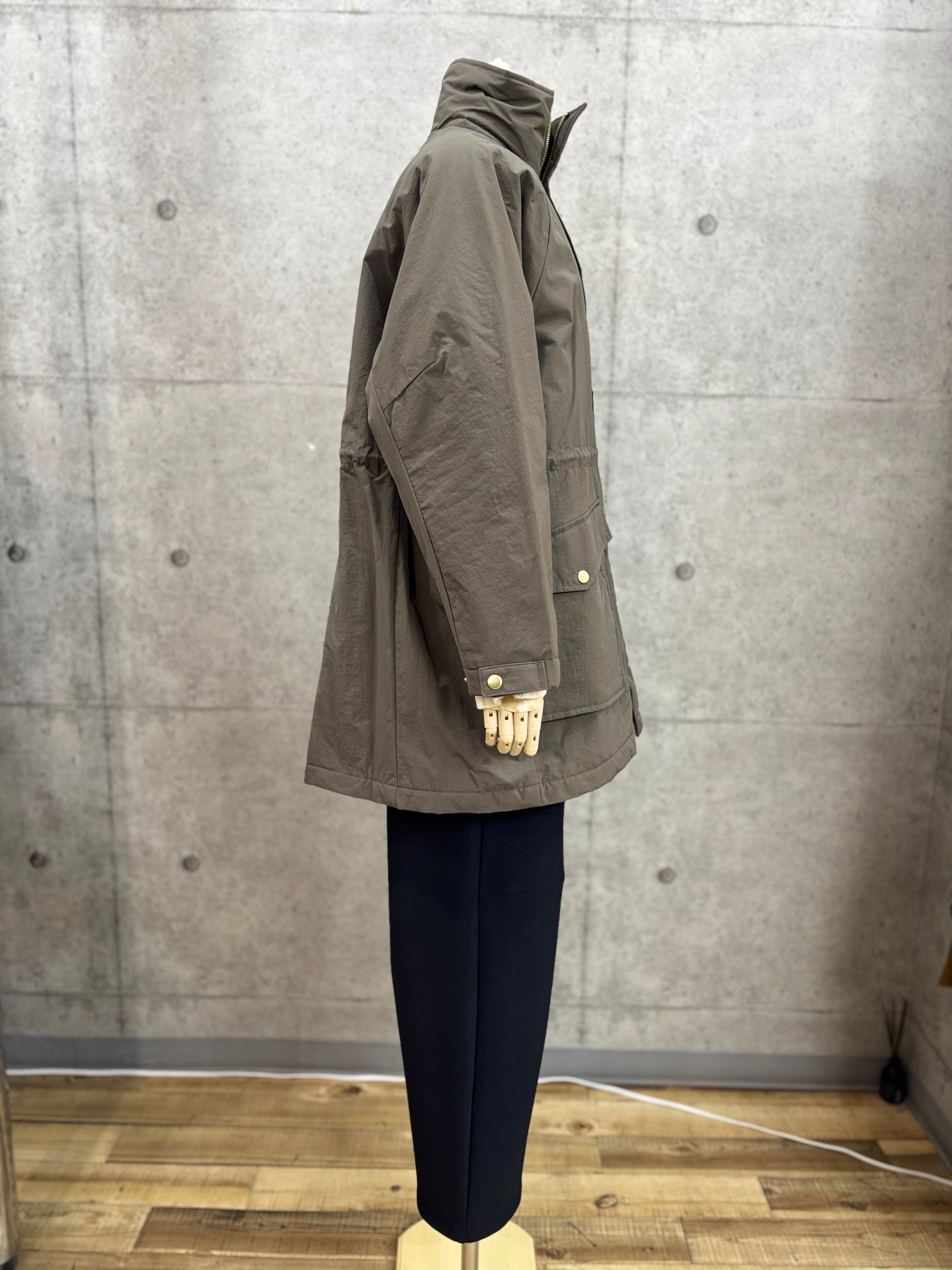 ふんわりとした中綿入りで、軽さと暖かさを両立した中綿モッズコートです