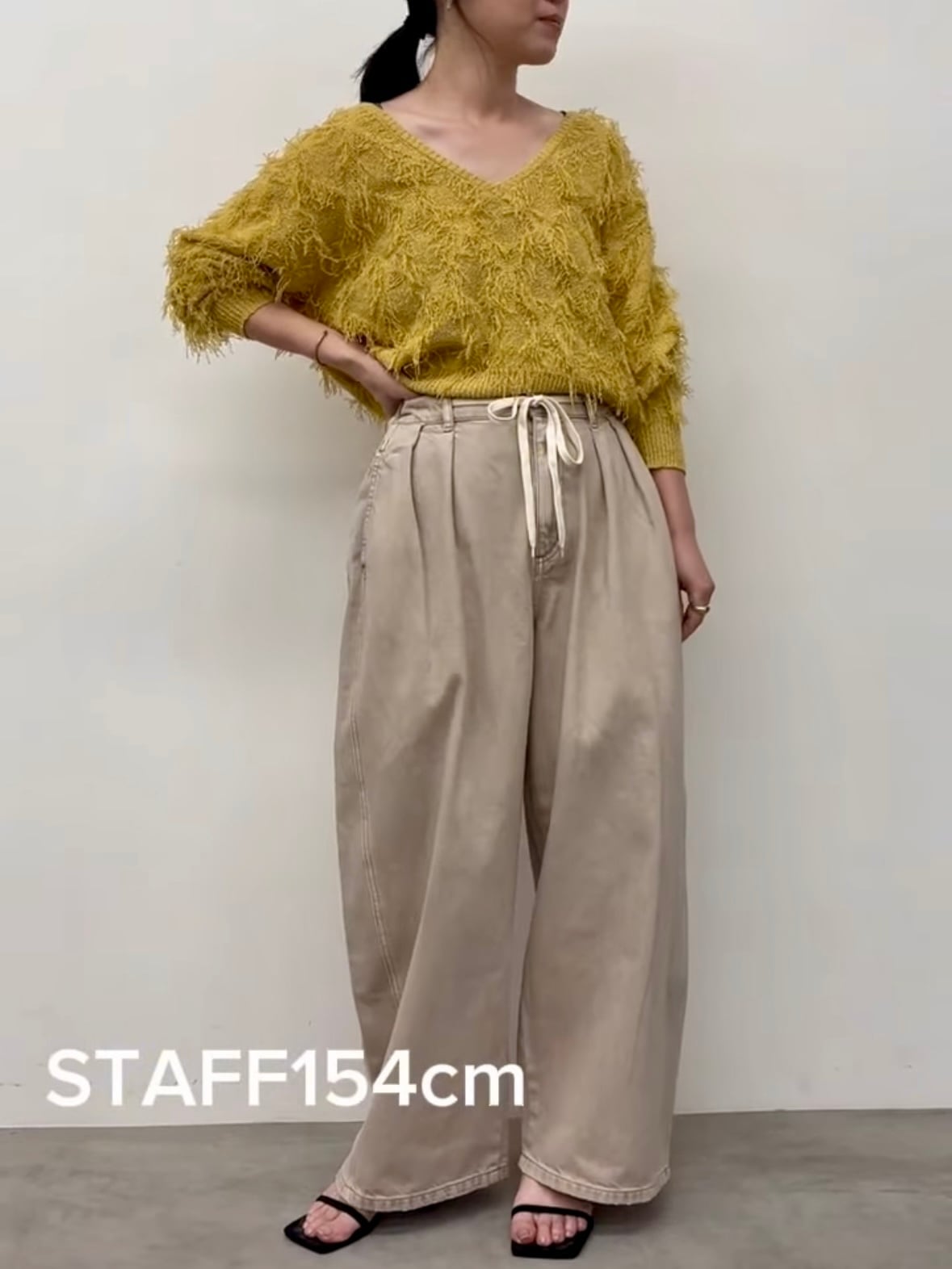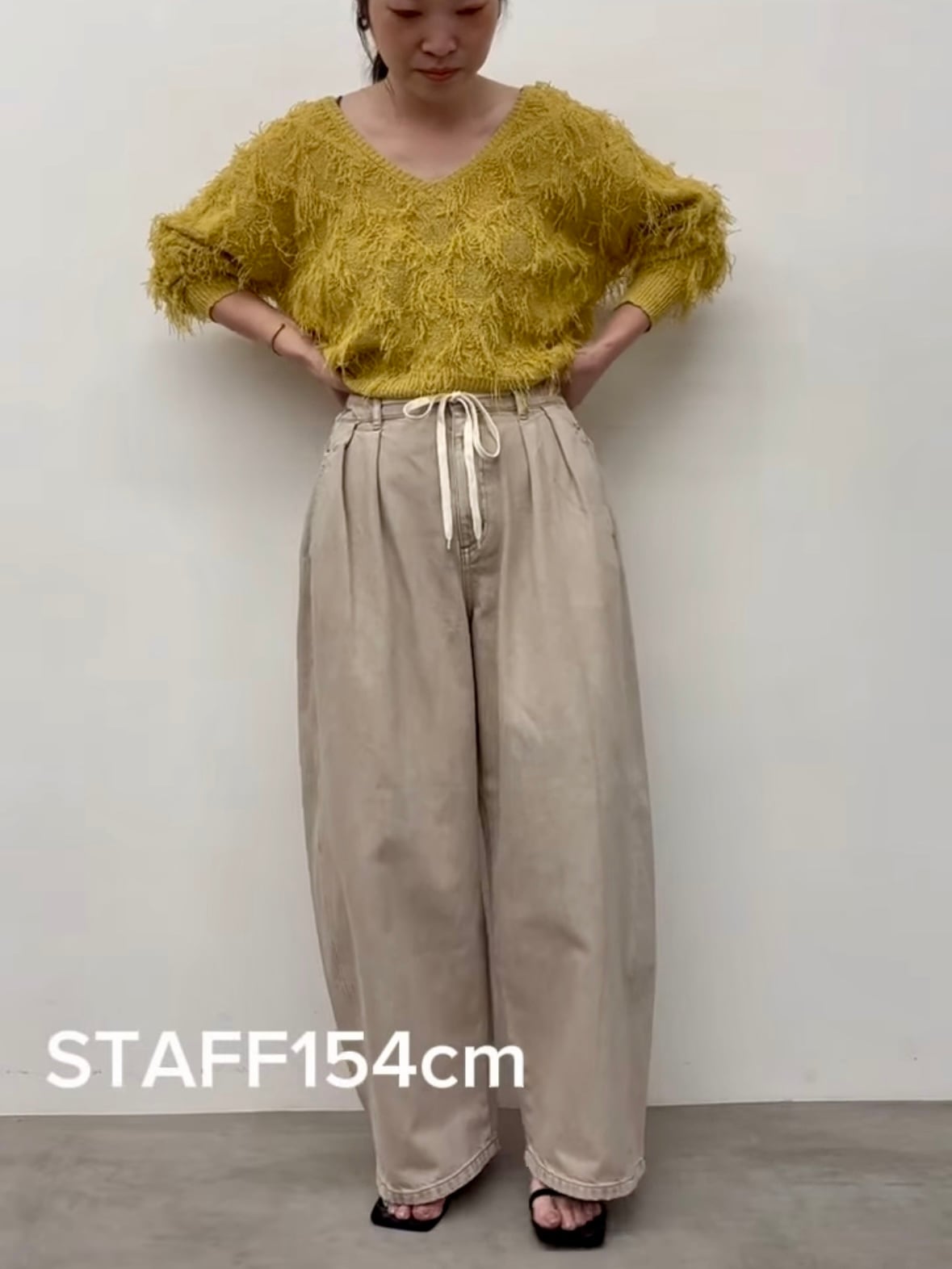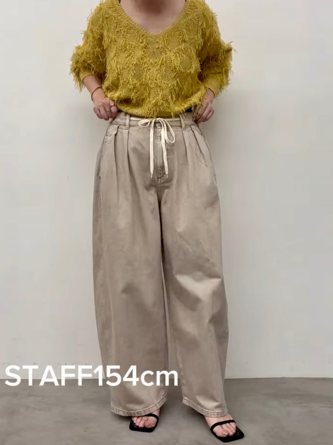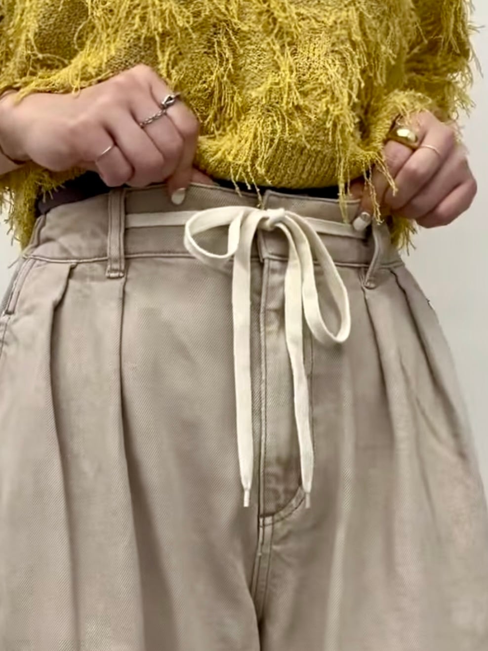 ウエストのヒモがあるので締め付け感がなく、ヒモを外に出して結んでも良し、隠したい時はウエスト部分の内側に紐を出すことができるのでその日のコーデによって変えることできます