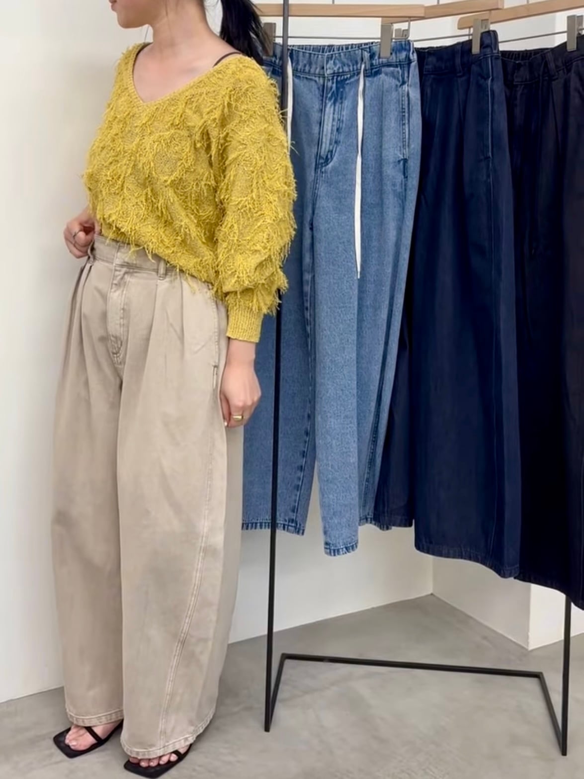 また、ダブルタックが腰回りをスッキリ見せてくれます