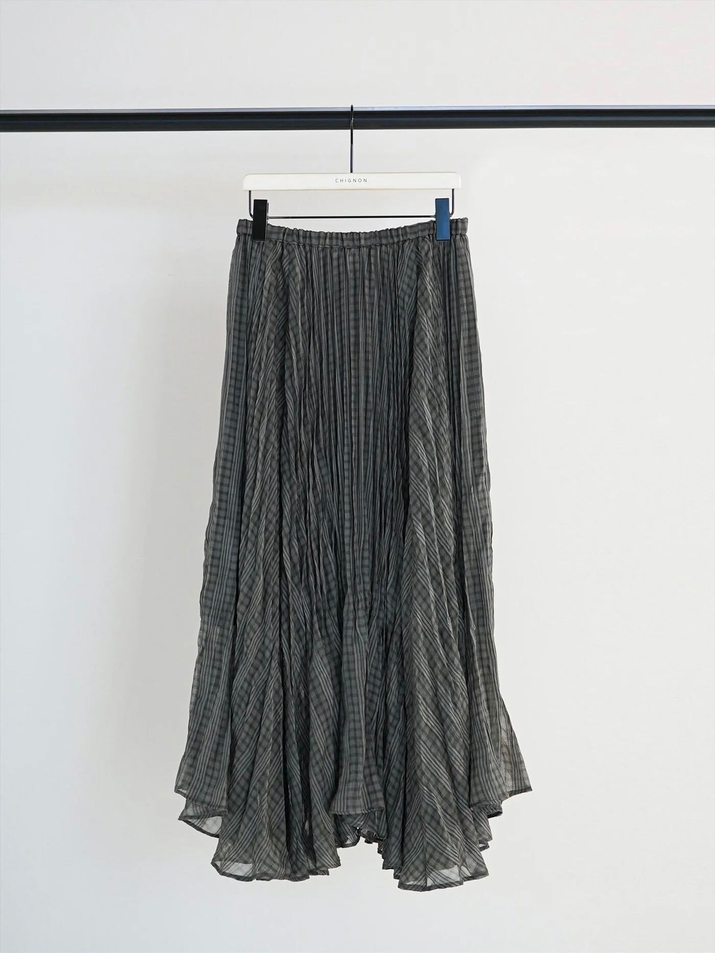 シアー感のあるチェック素材を使用した、華やかで上品なサーキュラースカート。