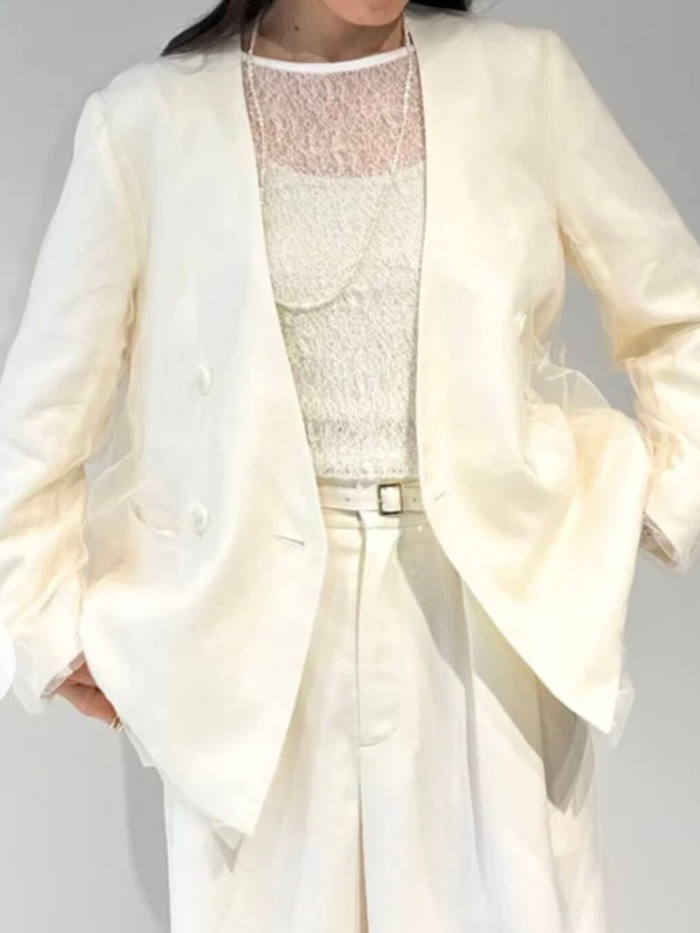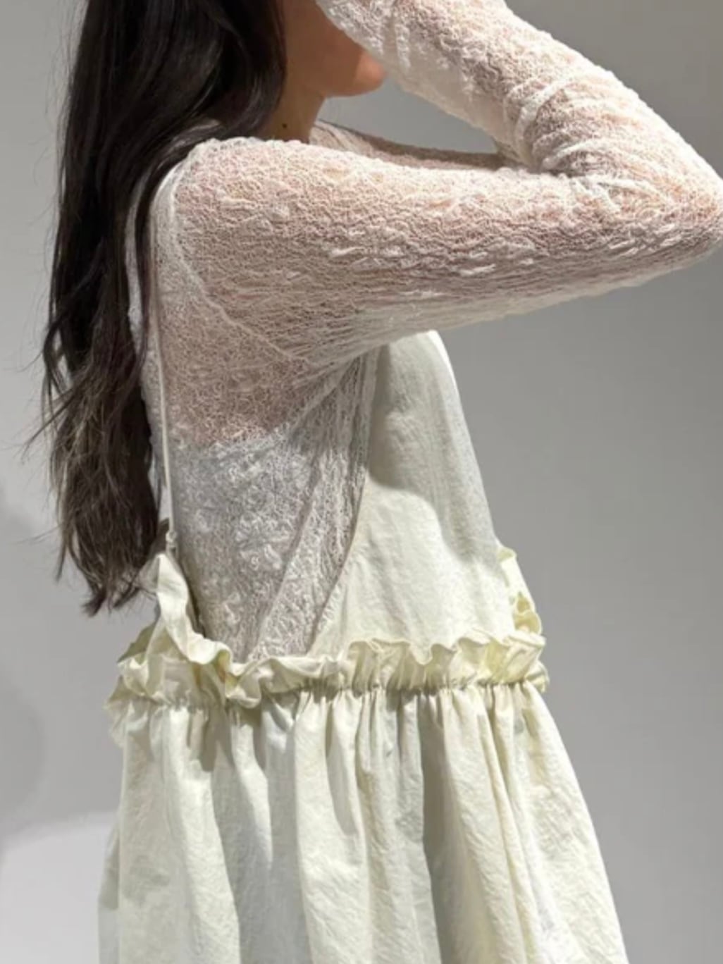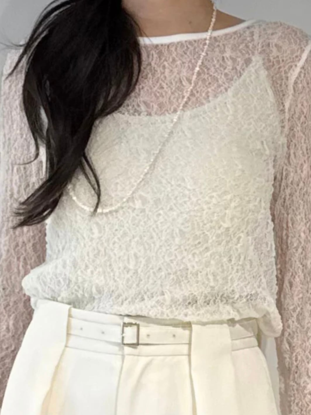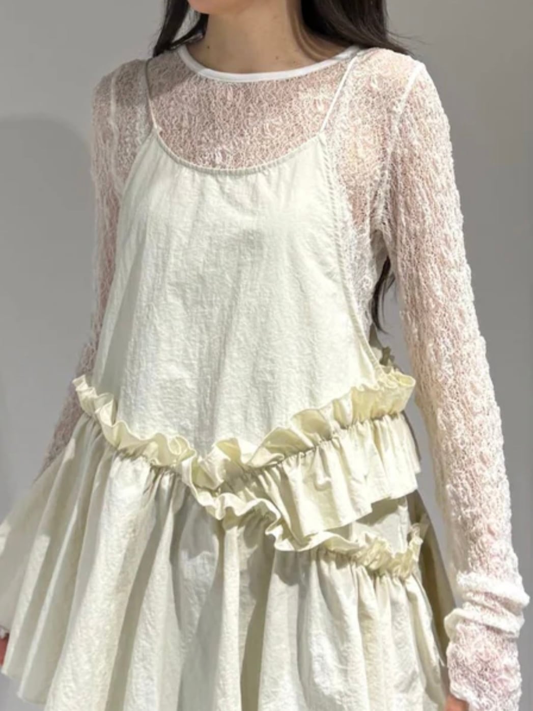 繊細なカットソーレースを贅沢に使ったインナーは、今季らしさ満点の一枚。