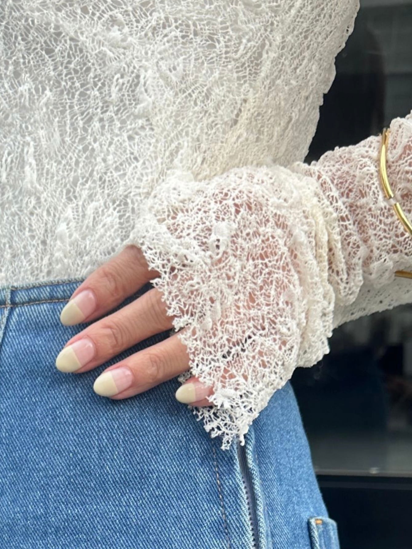 ジャケットやスウェットからレースをちらりと覗かせれば、カジュアルコーデも一気に華やぎます。