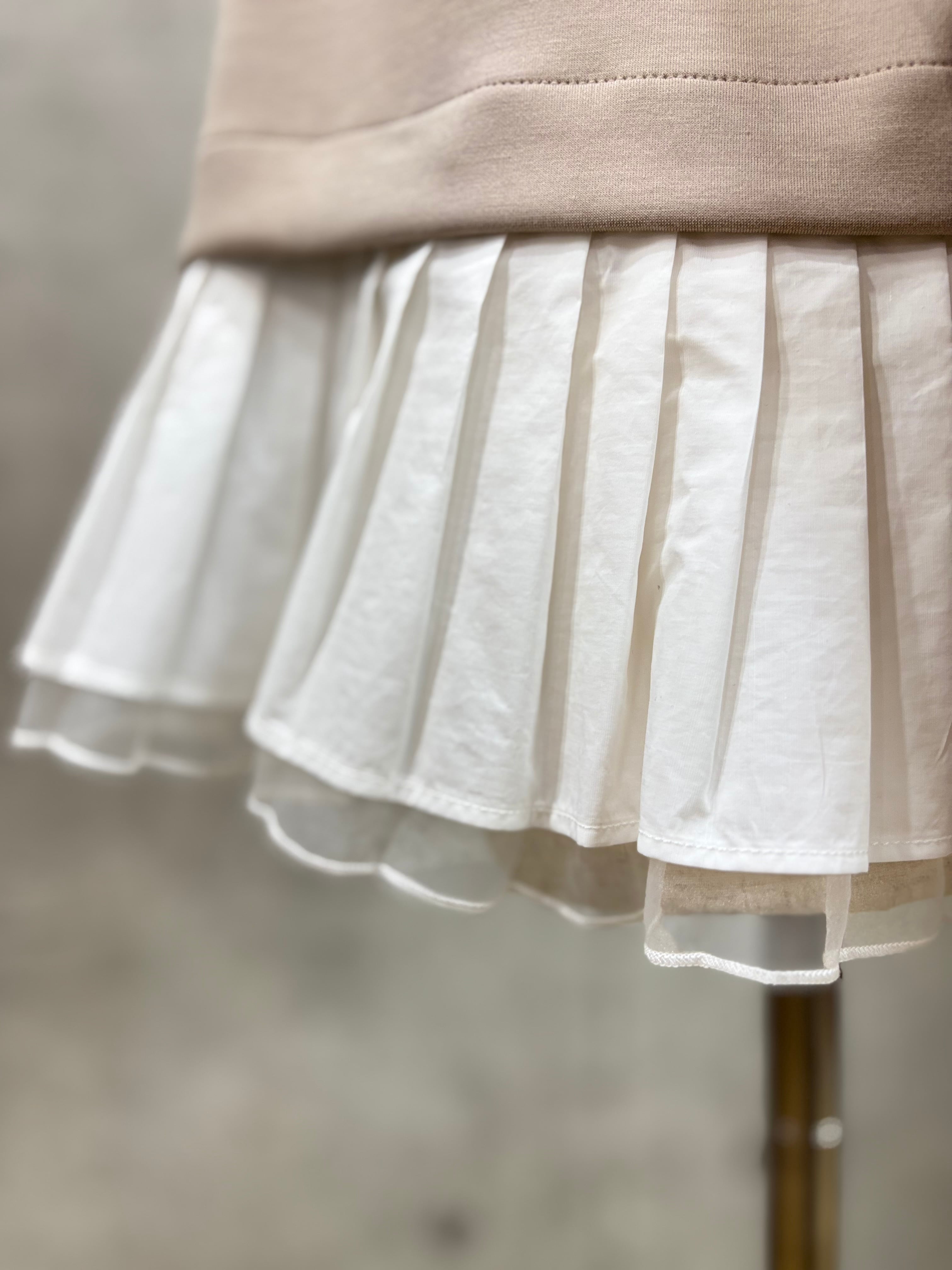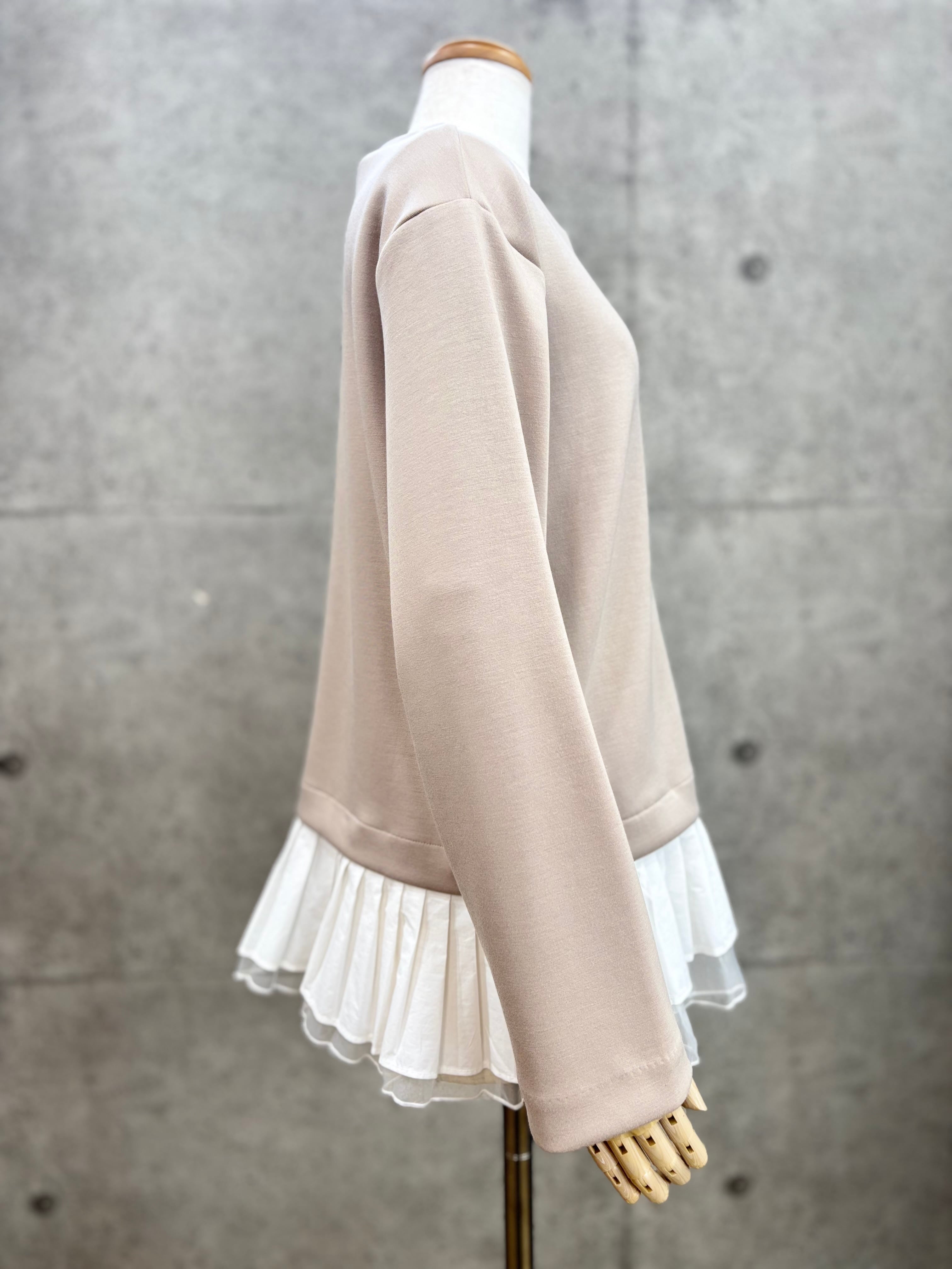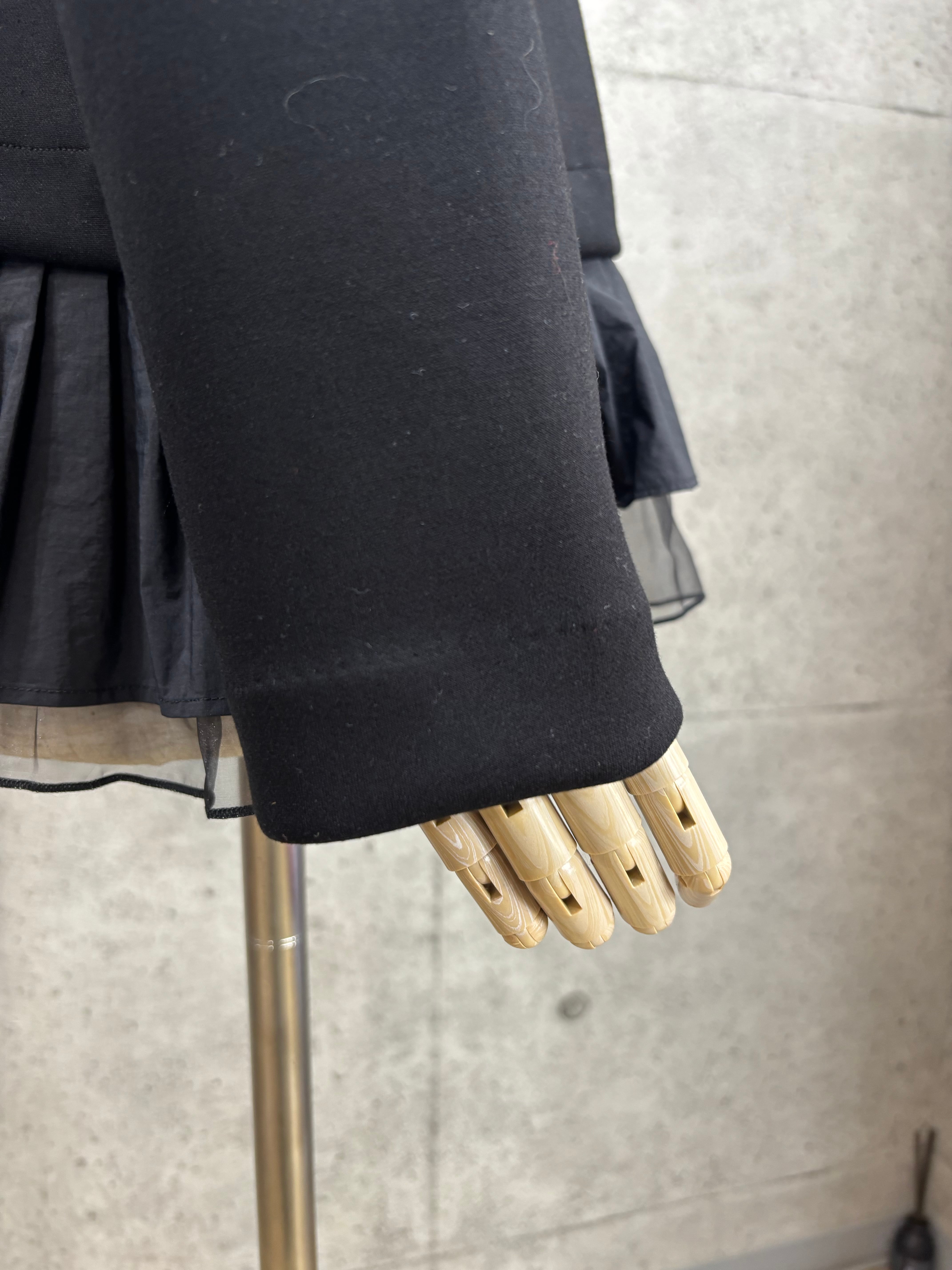 裾部分にはタフタ×オーガンジーの程良いフリルがふんわりと表情が優しい感じをプラス