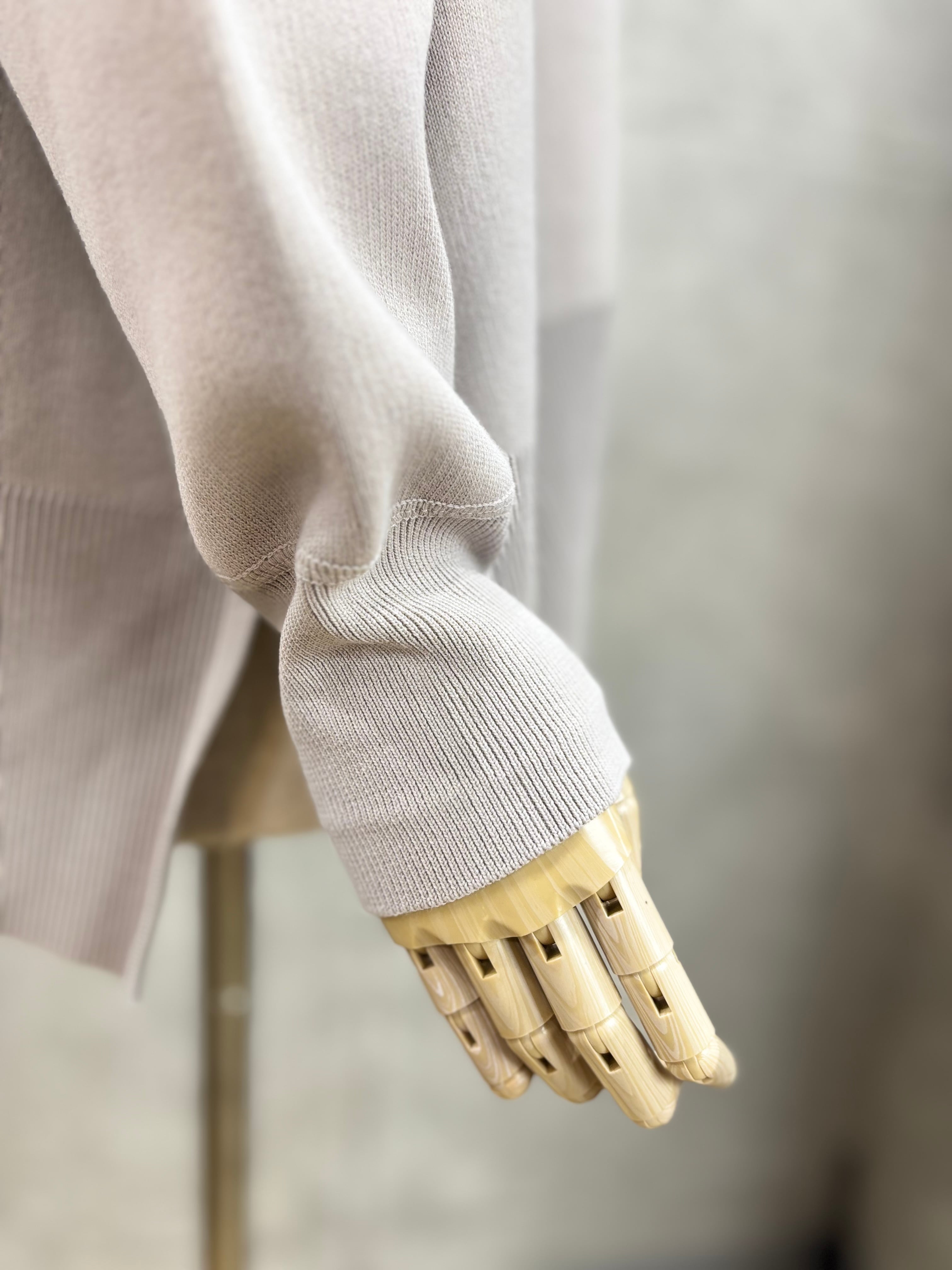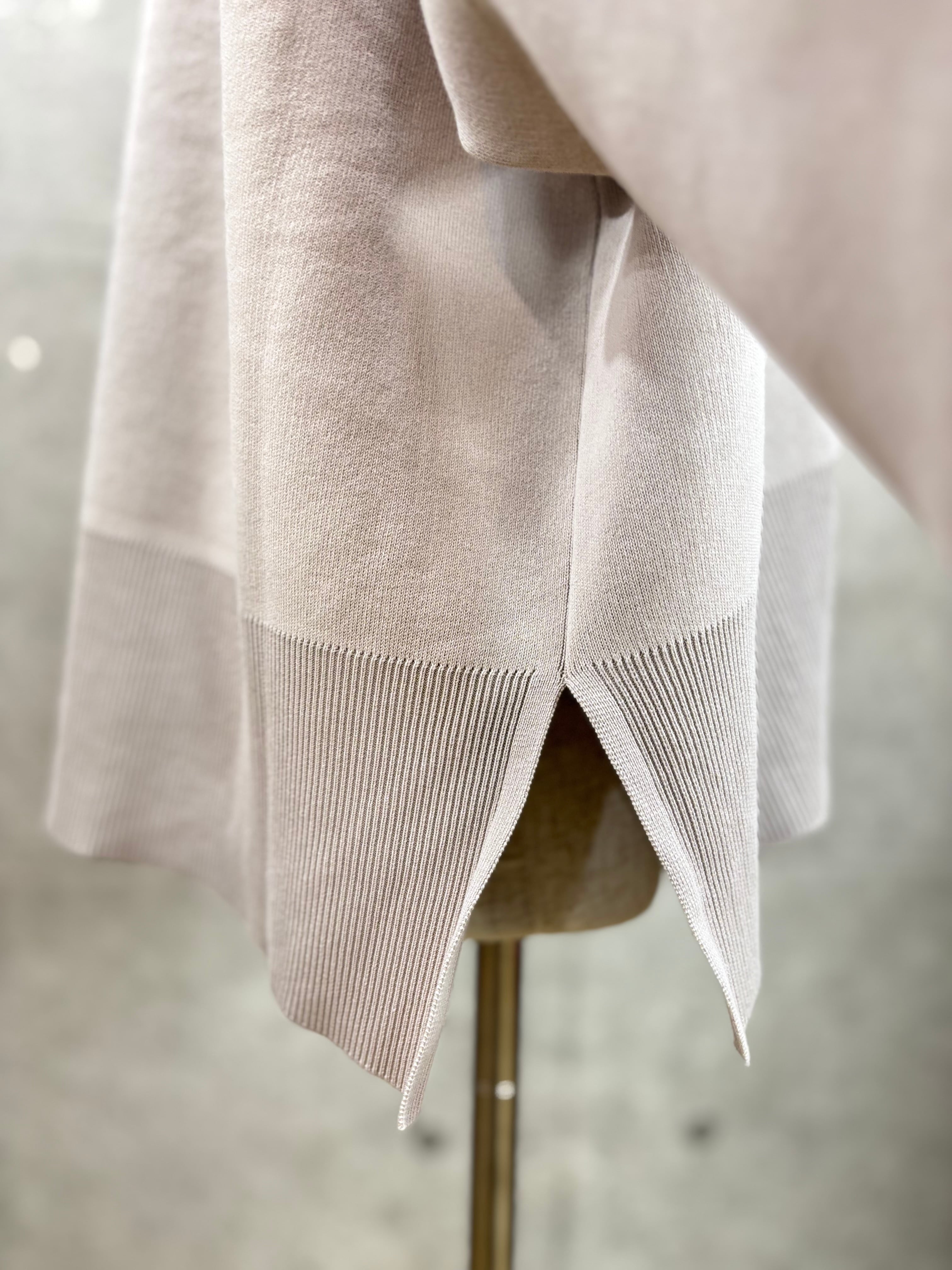 ヒップ周りをカバーしてくれる丈感で、パンツ・スカート共にどちらも合わせやすいアイテムです