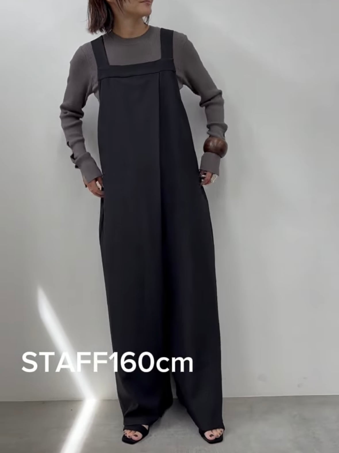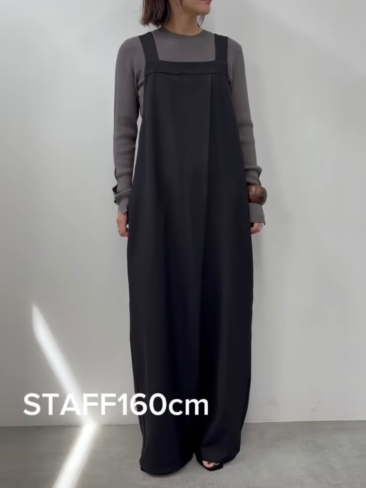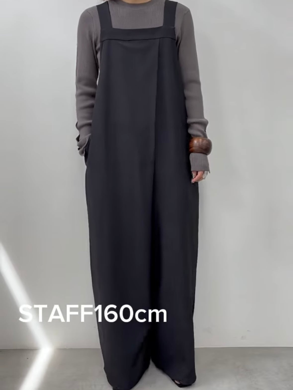 ストンと落ちるシルエットに、ラップ風のデザインがポイントのサロペット