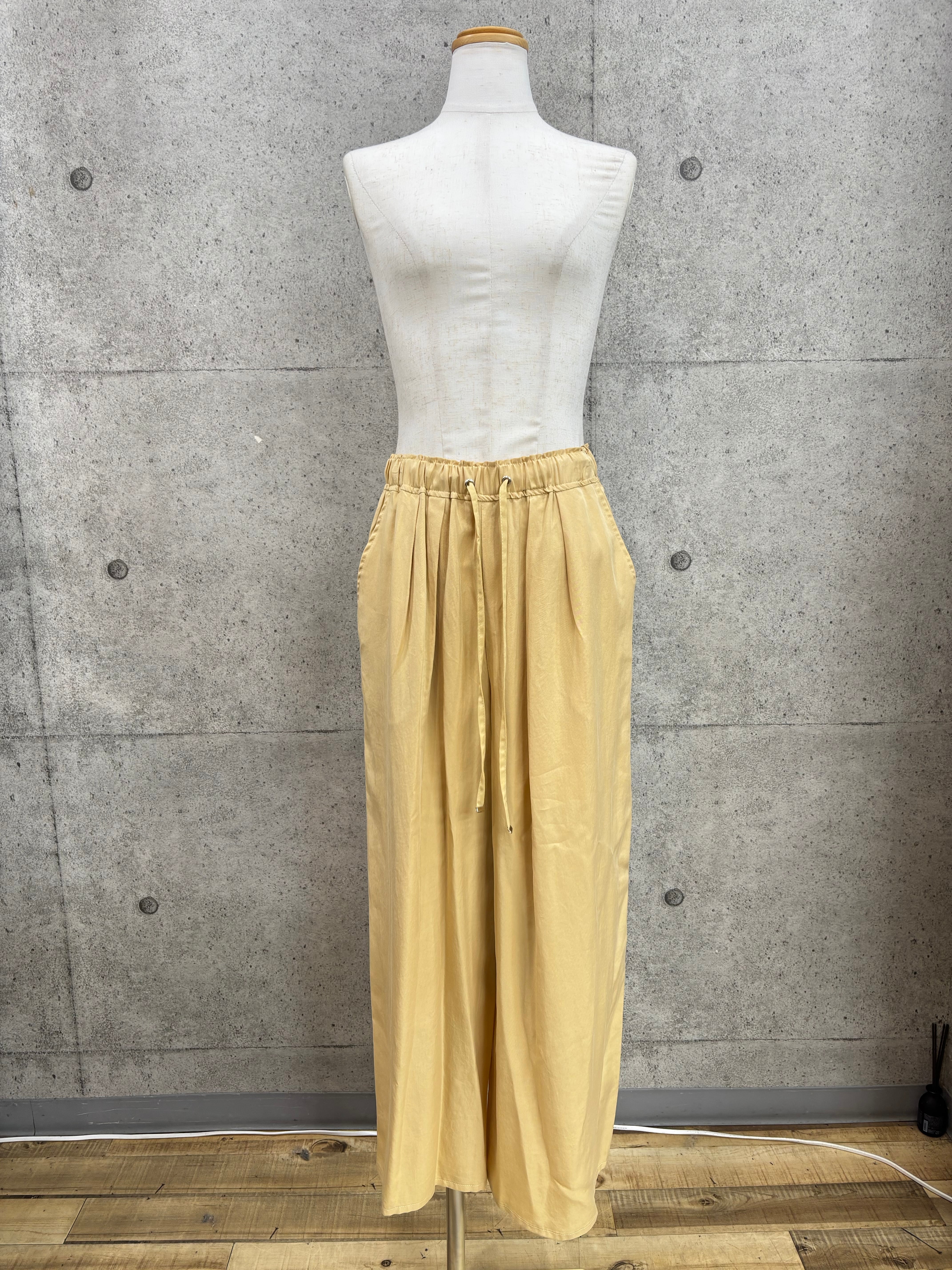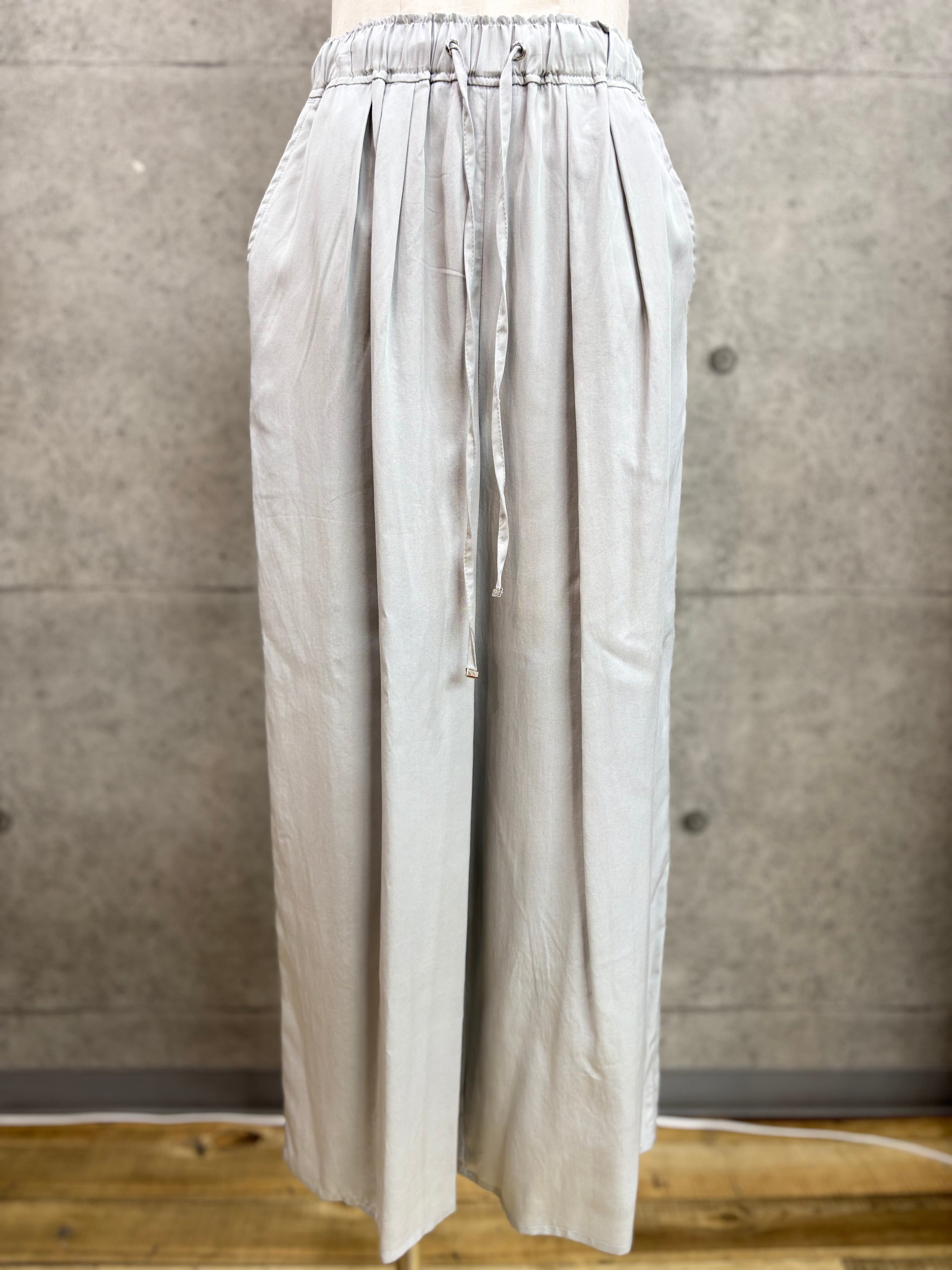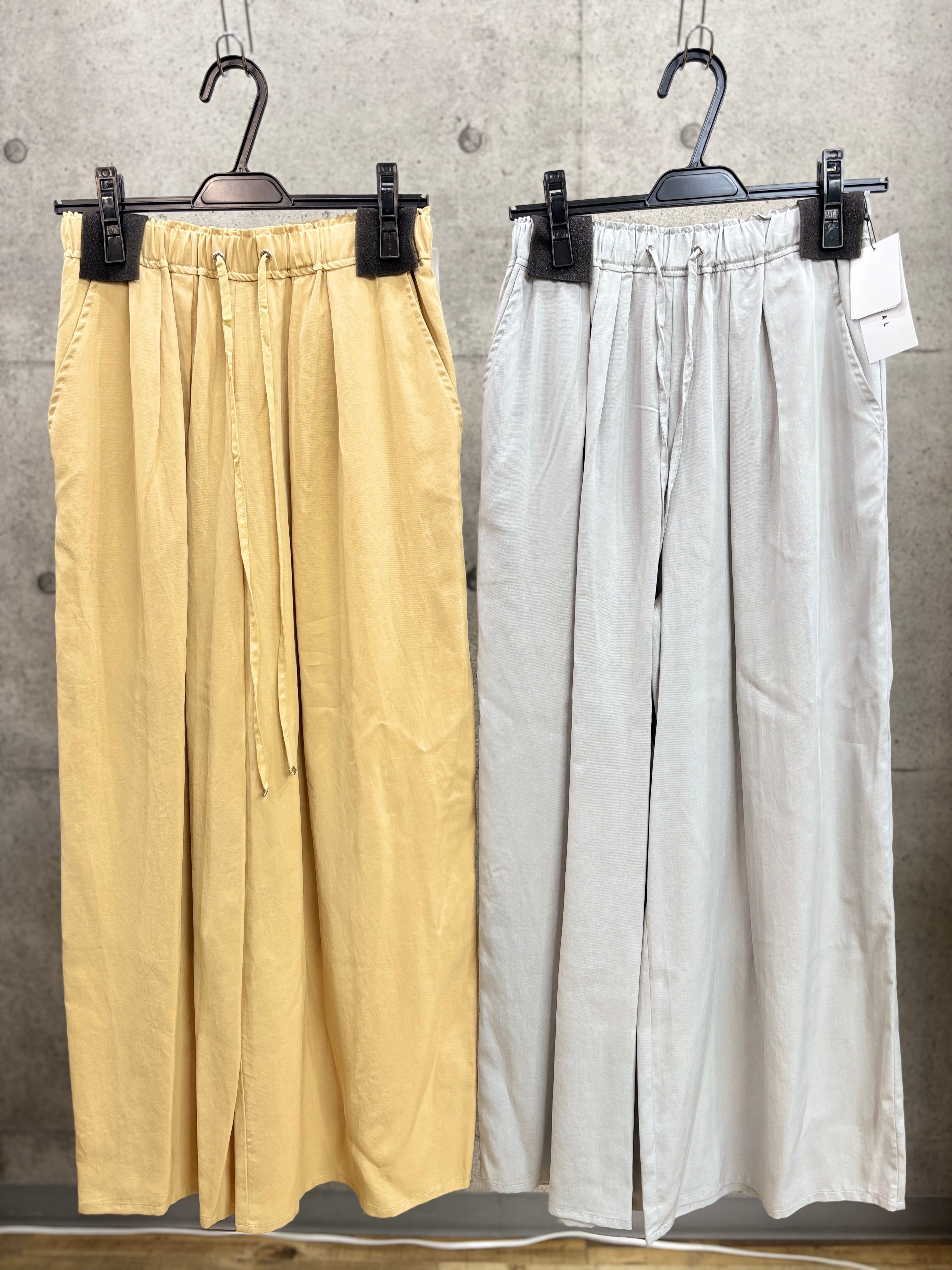 テンセルツイル素材なので滑らかで軽い着心地、ウエストは総ゴムなのでラクチン