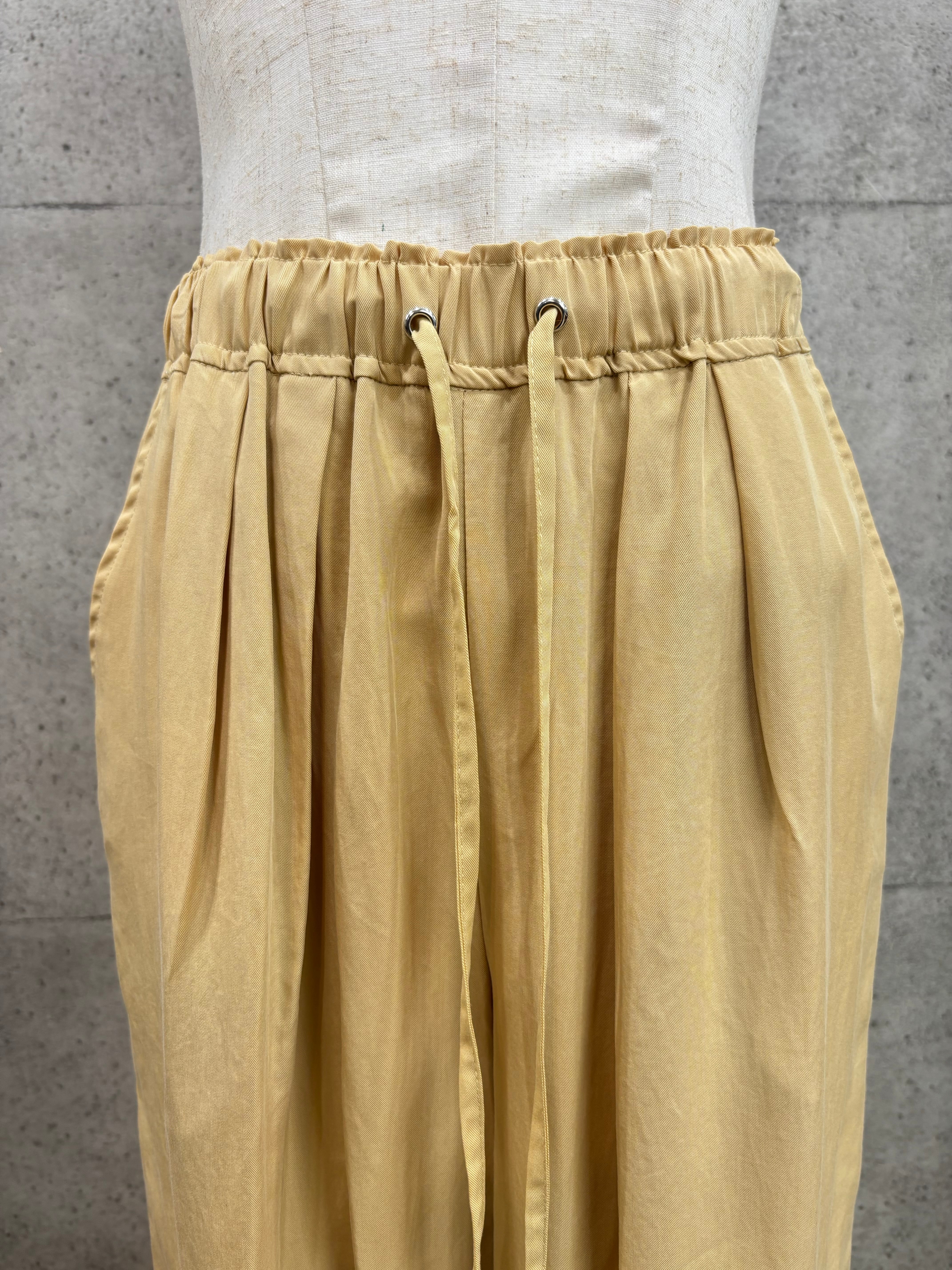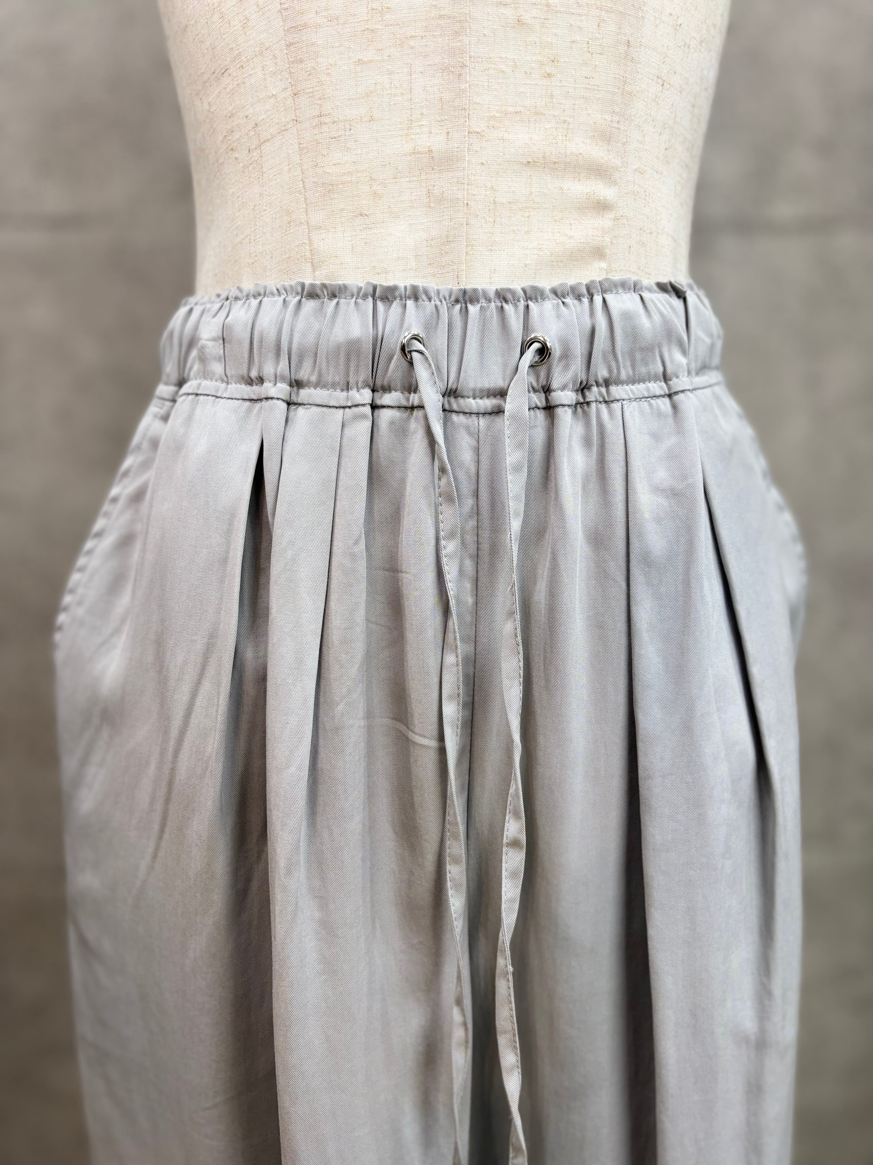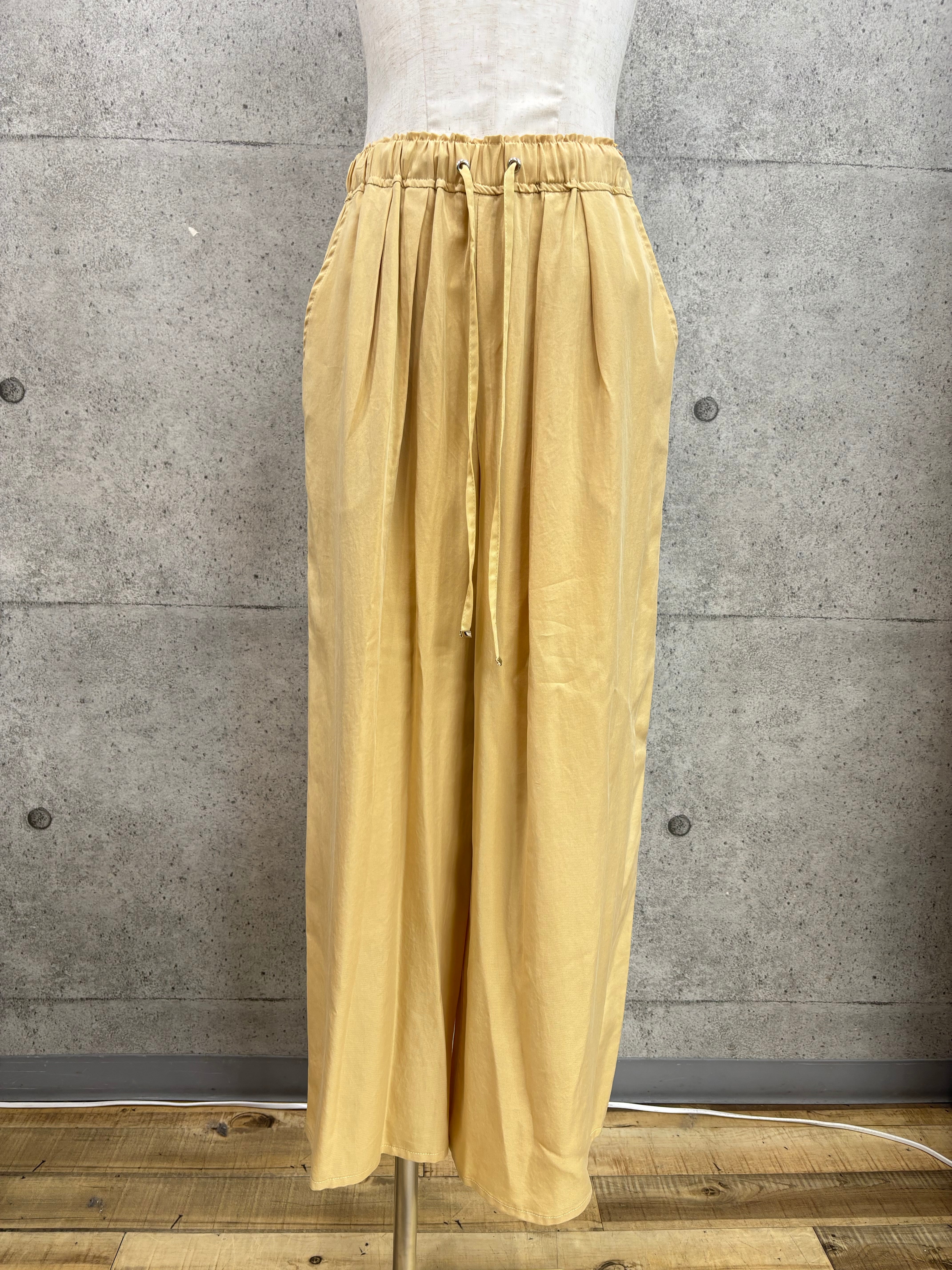 テンセルツイル素材なので滑らかで軽い着心地、ウエストは総ゴムなのでラクチン