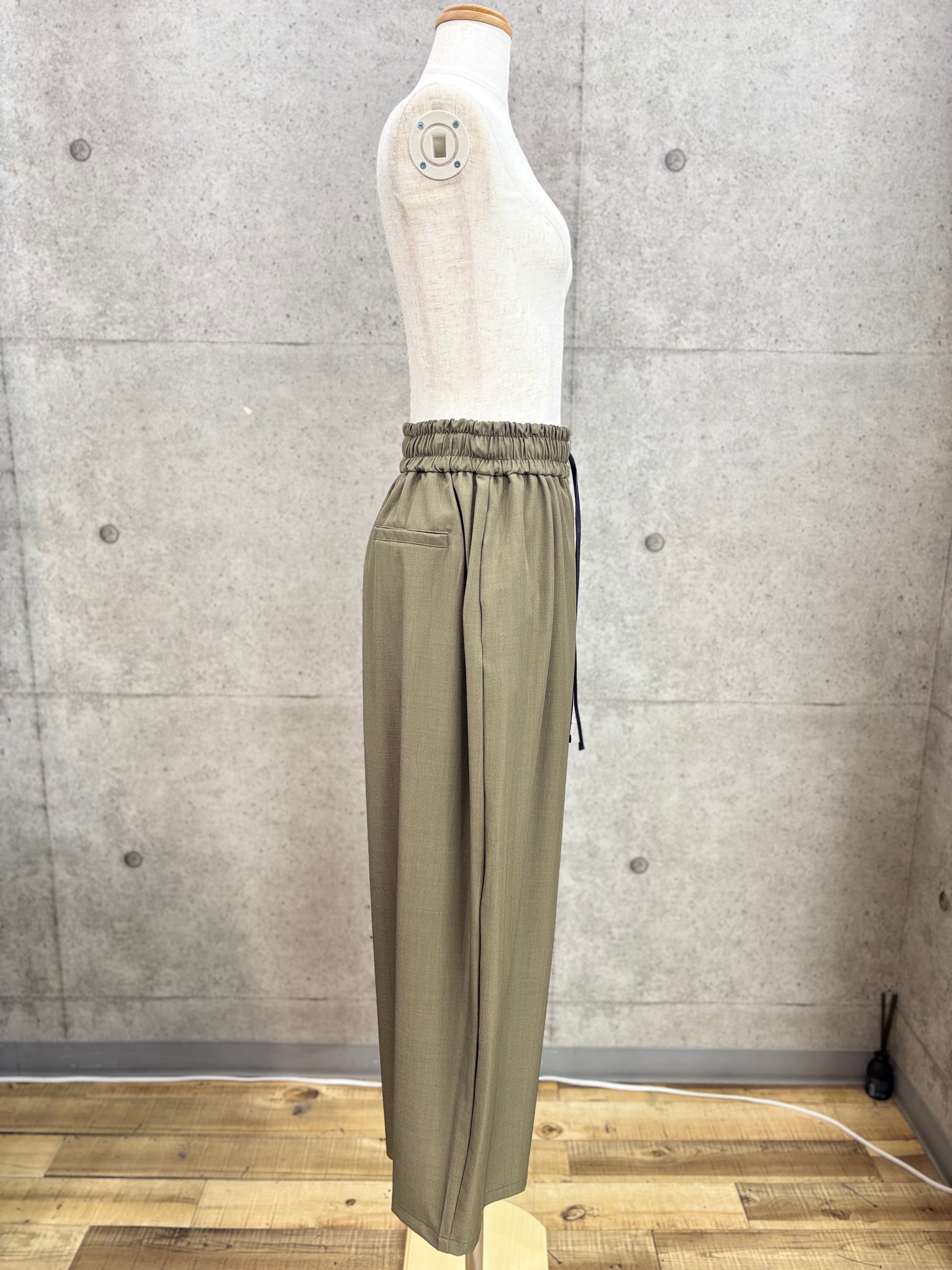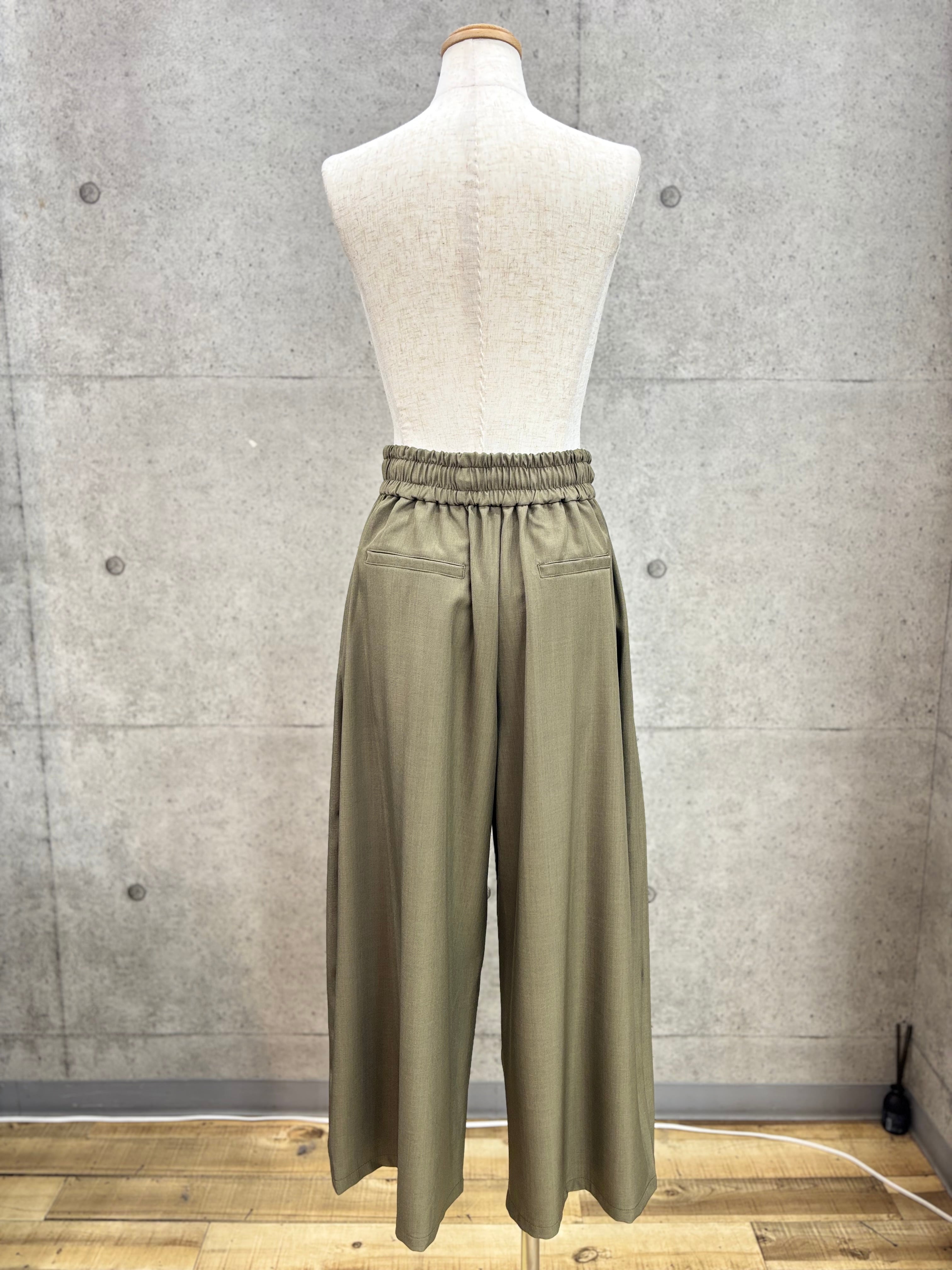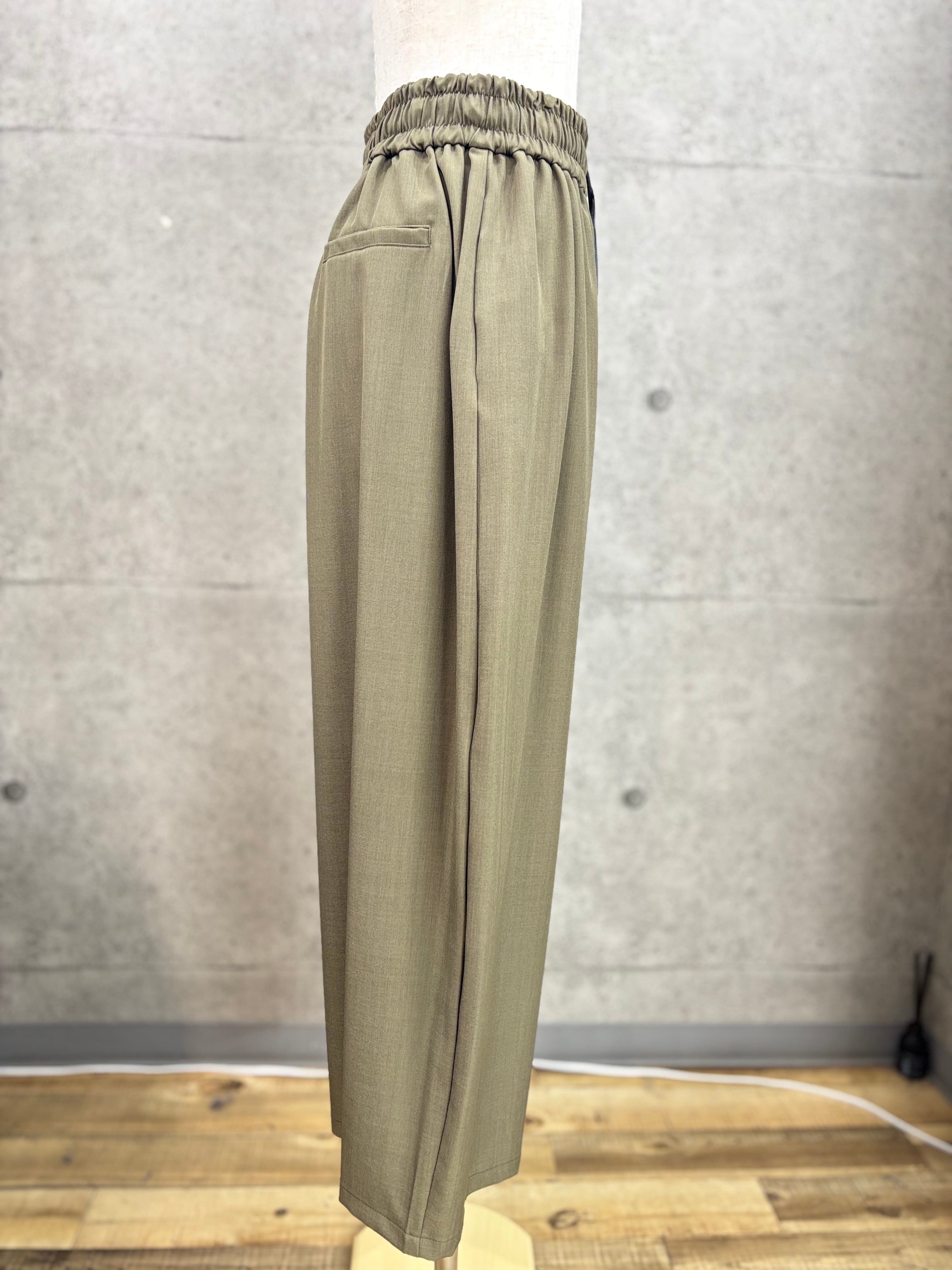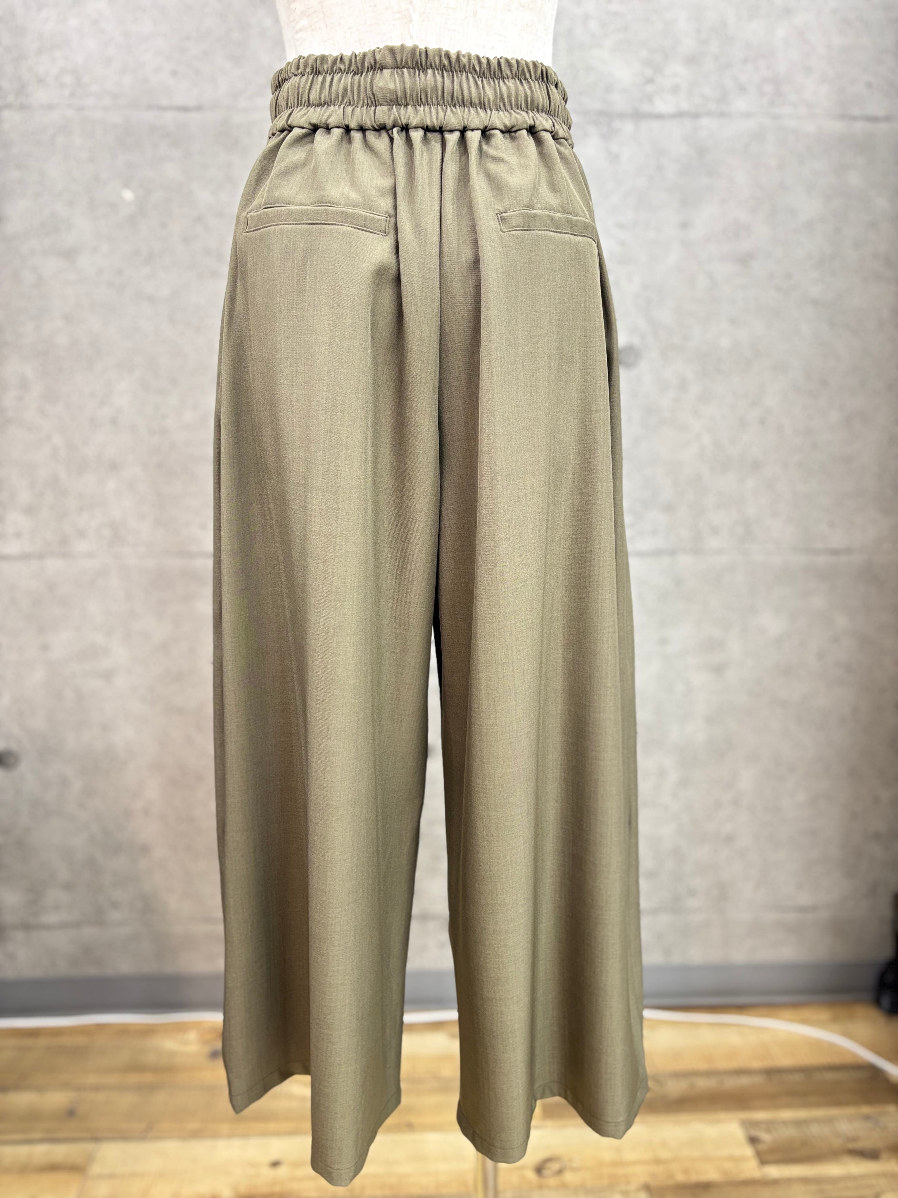 リネン感を出したポリエステル素材のワイドパンツ