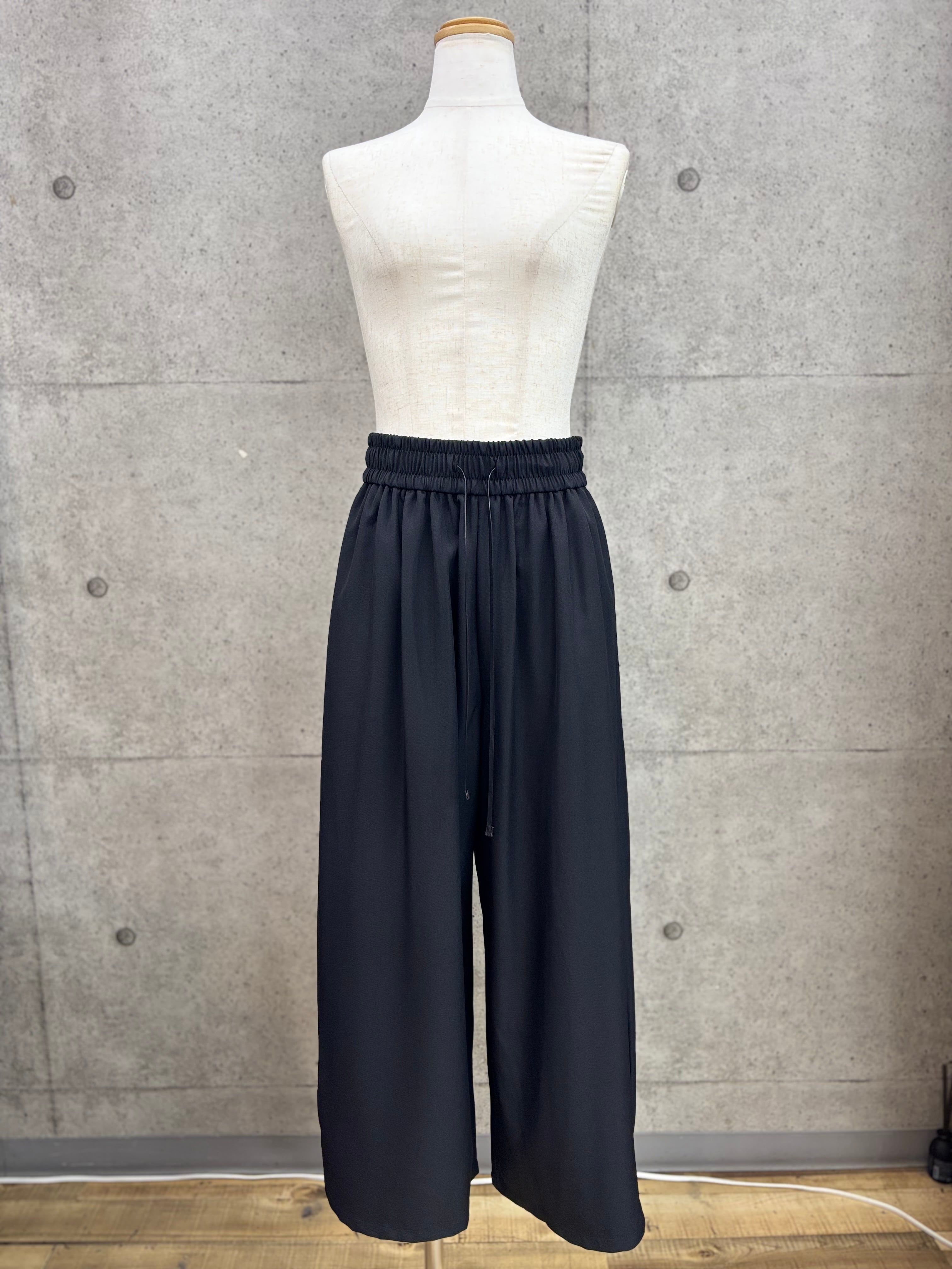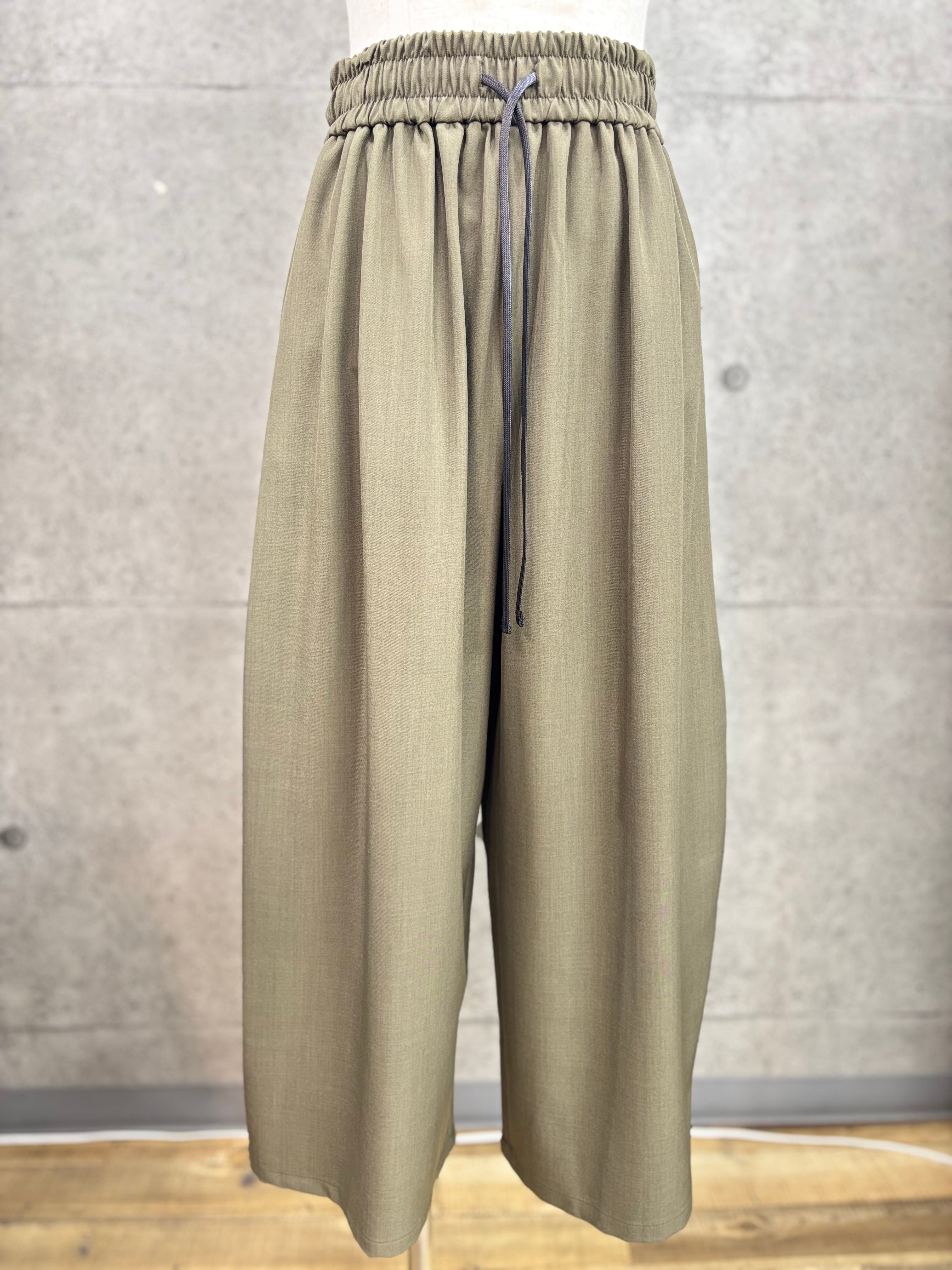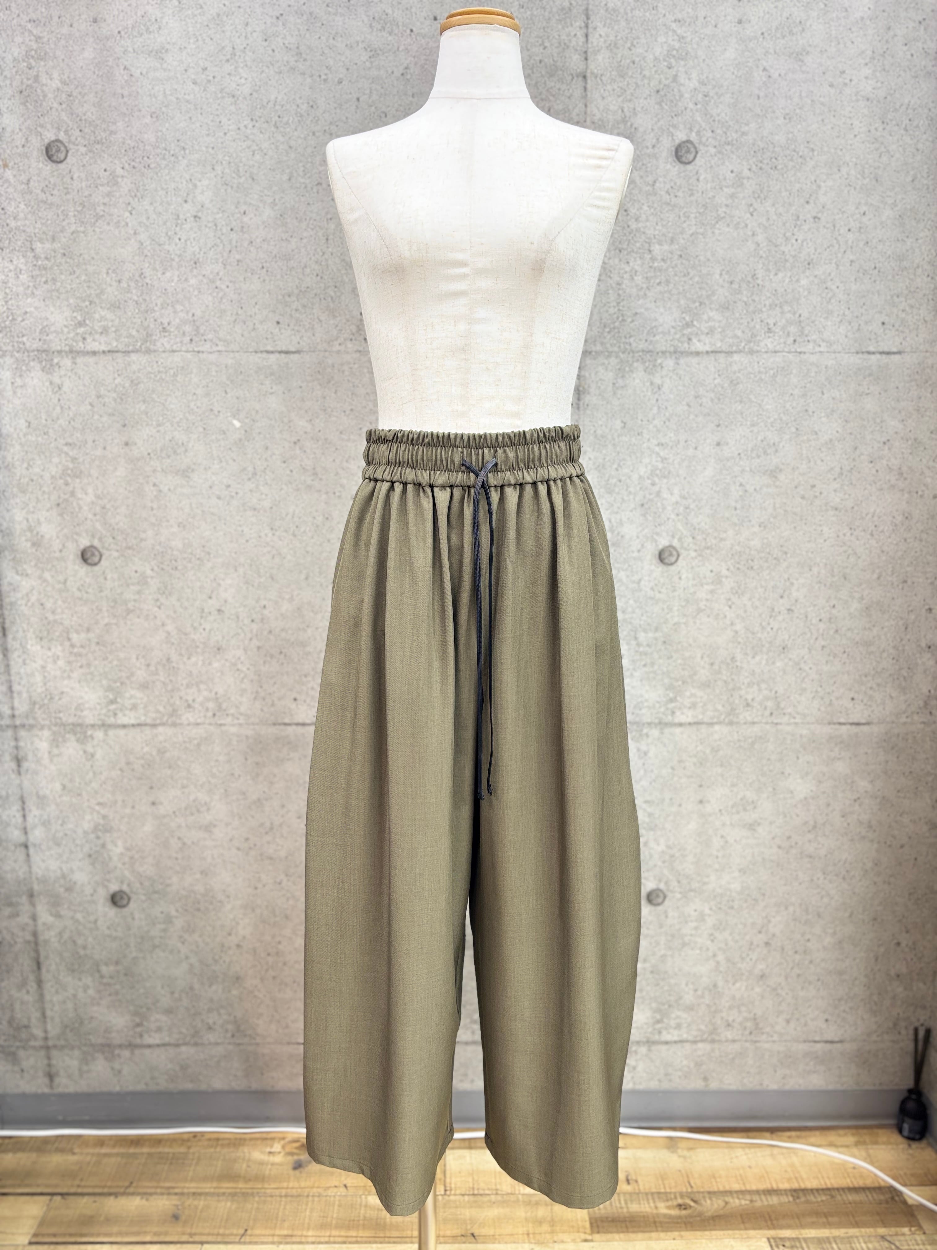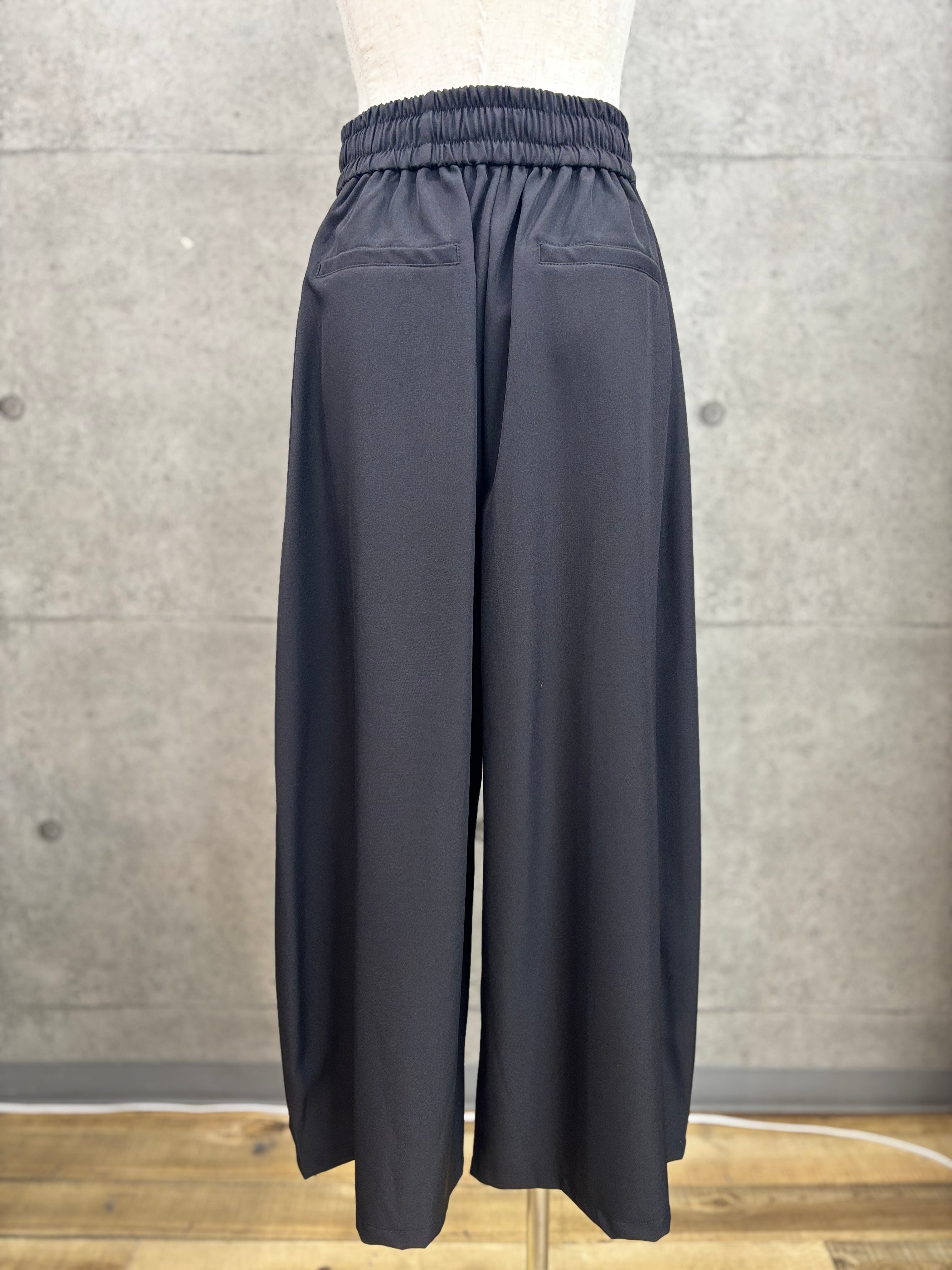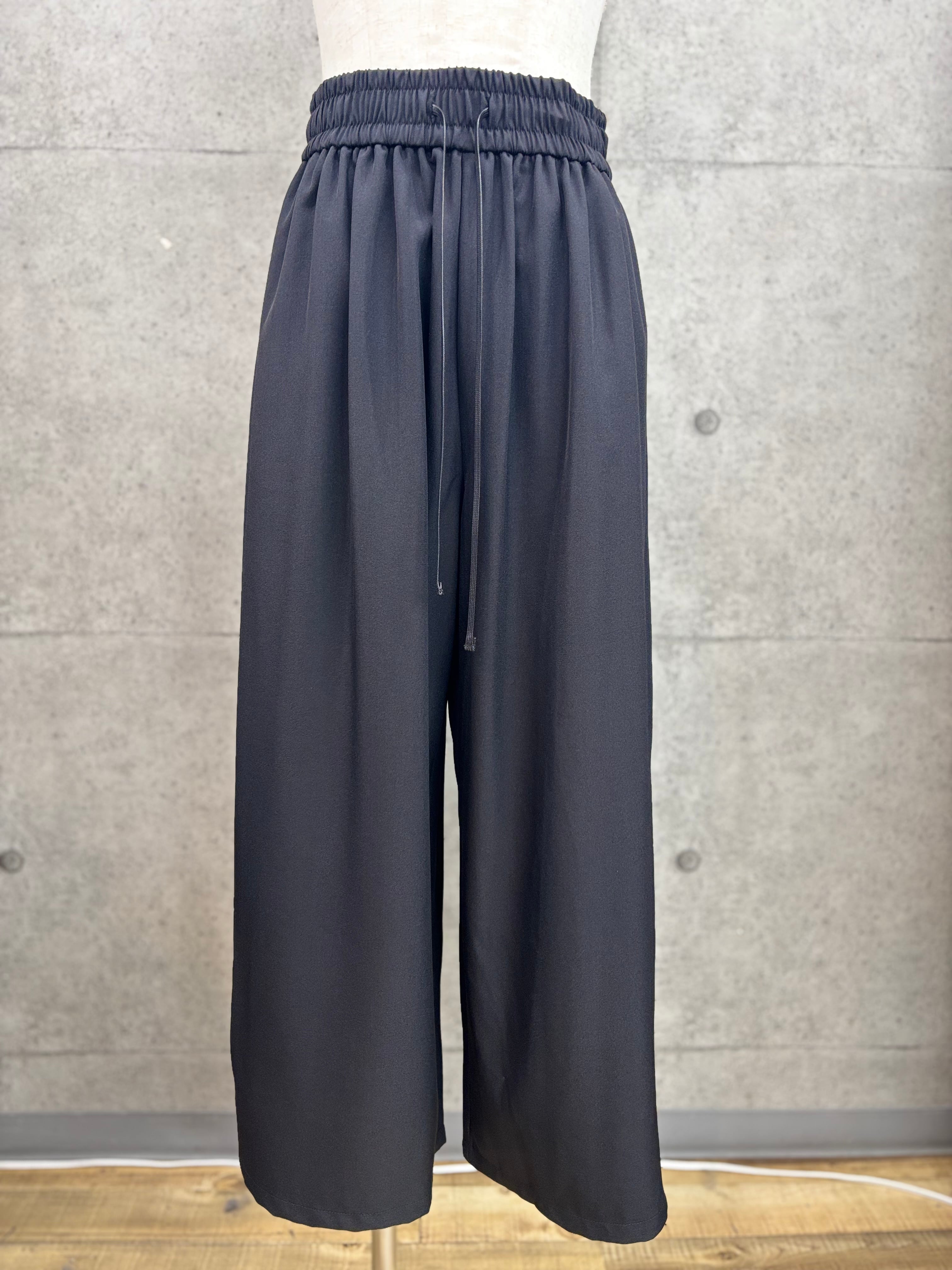 リネン感を出したポリエステル素材のワイドパンツ