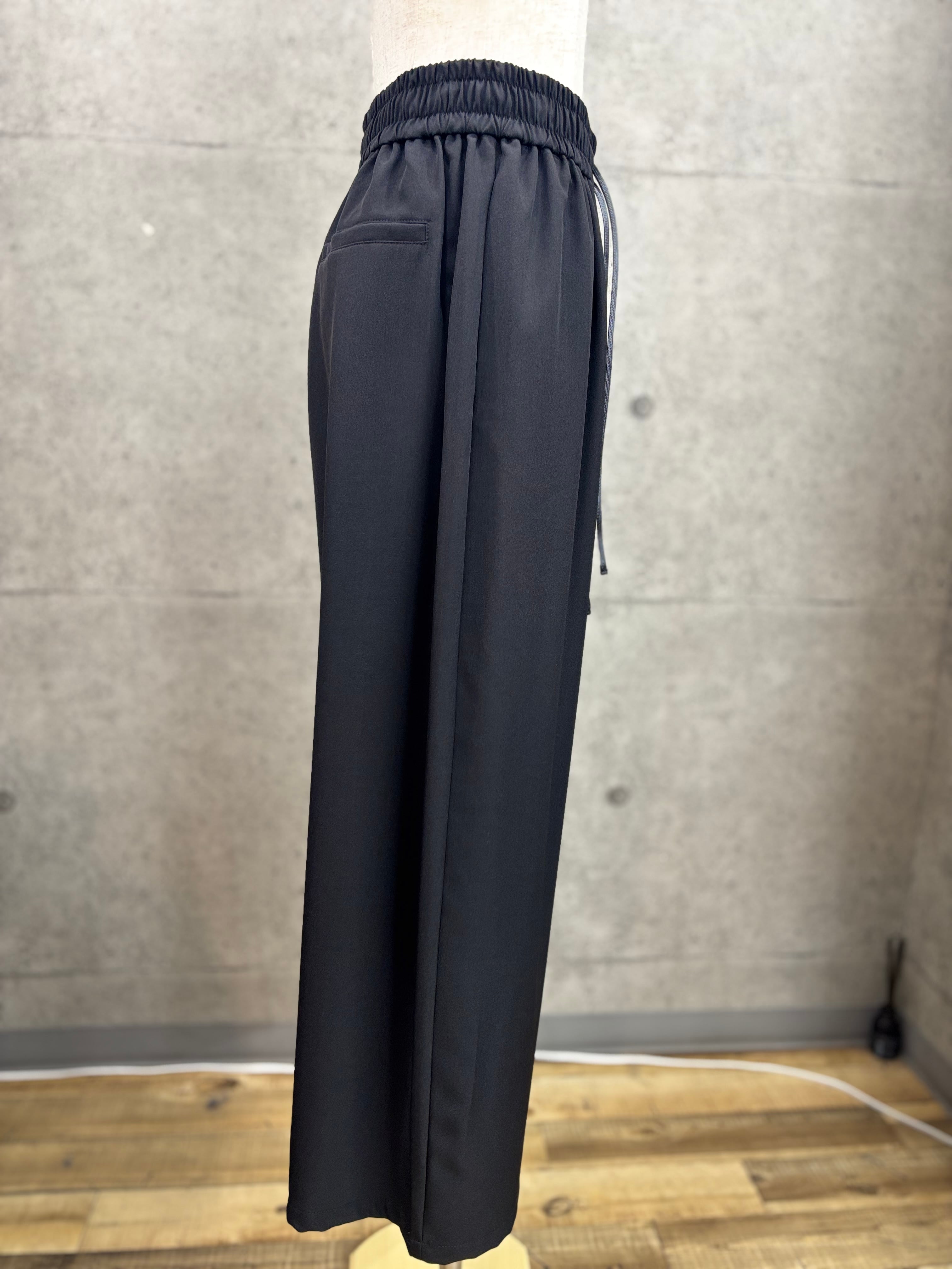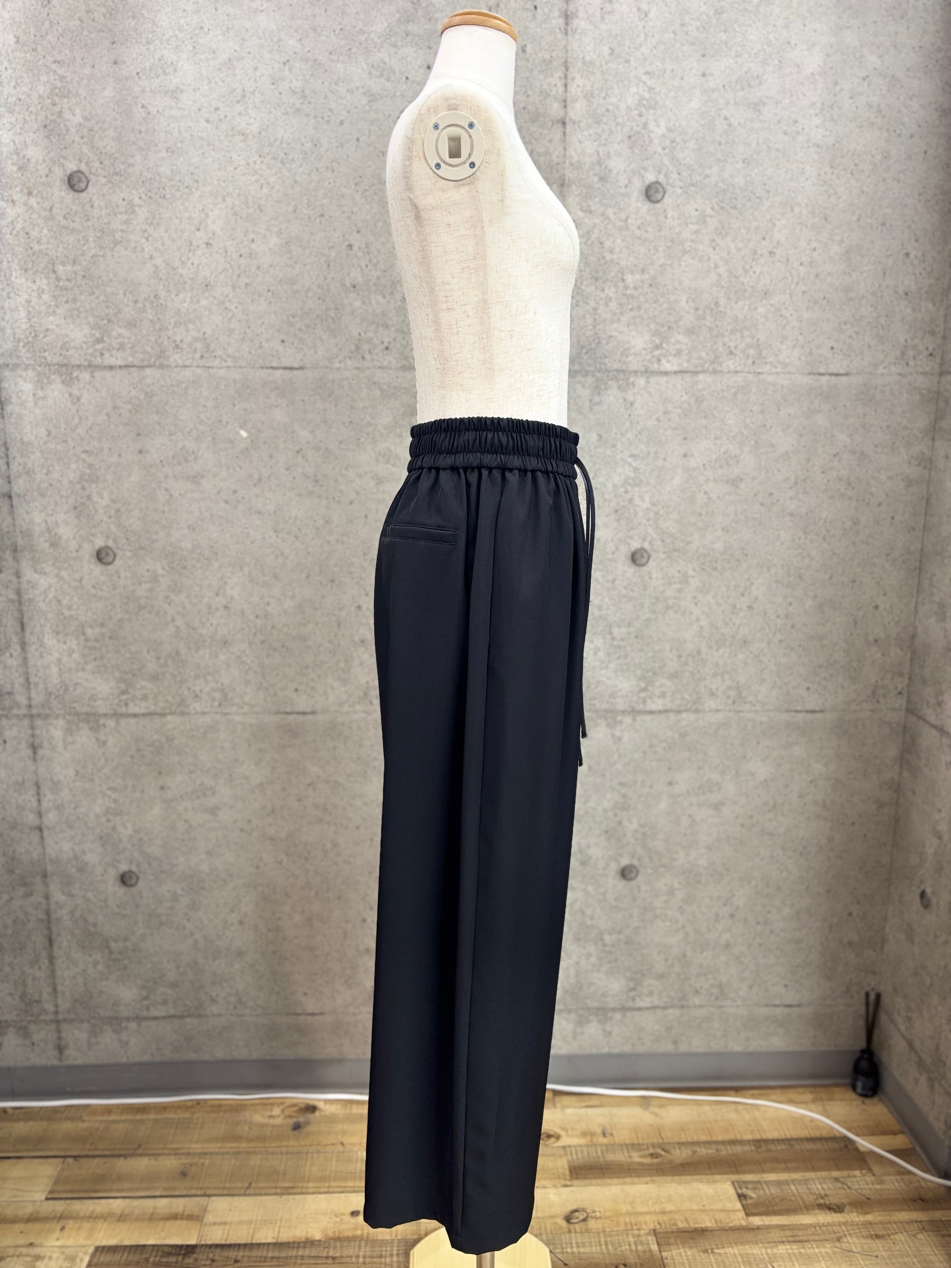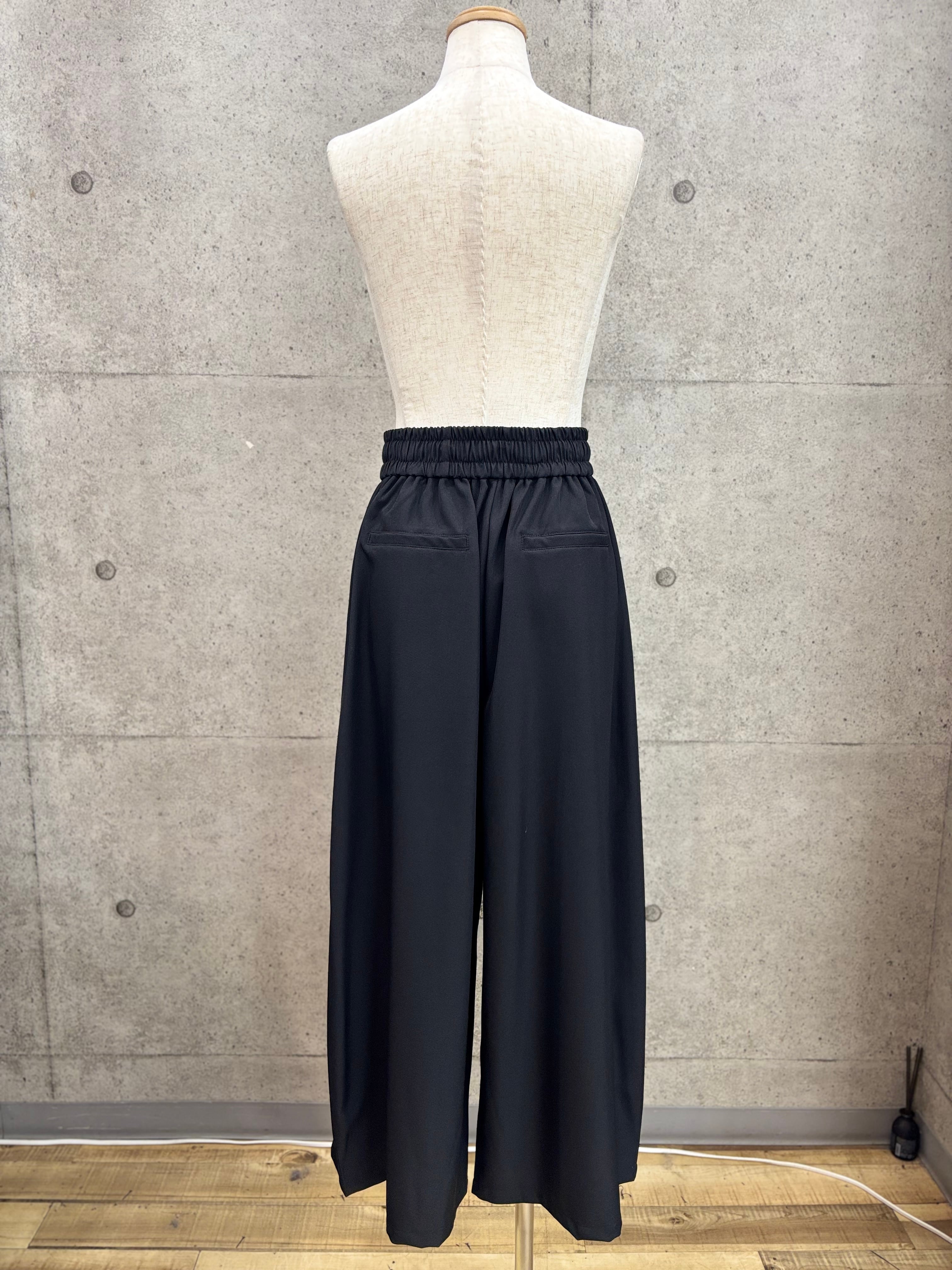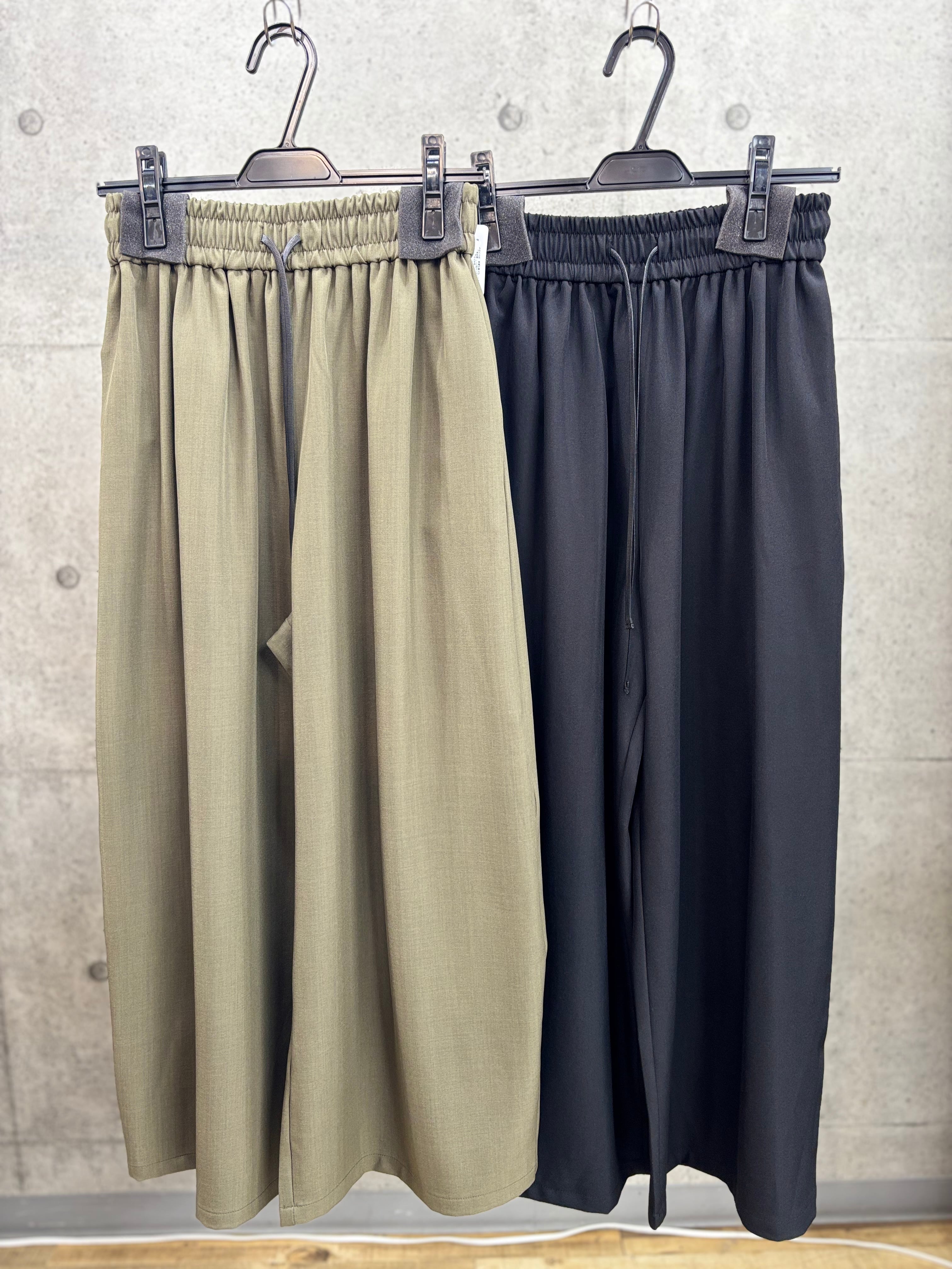 リネン感を出したポリエステル素材のワイドパンツ