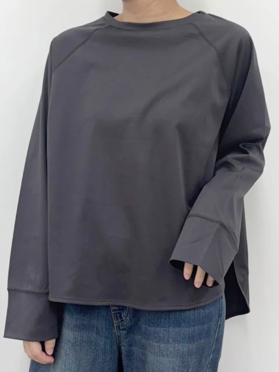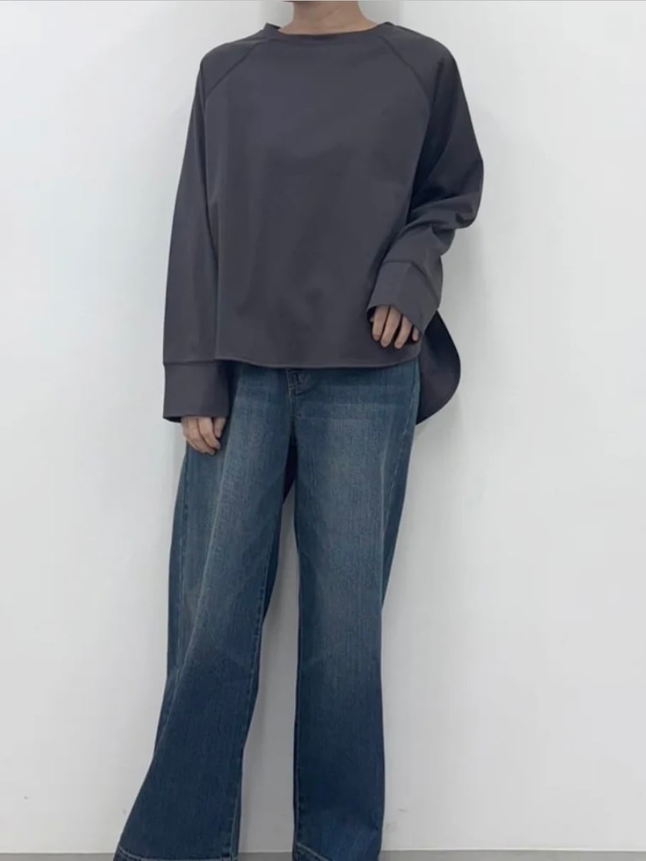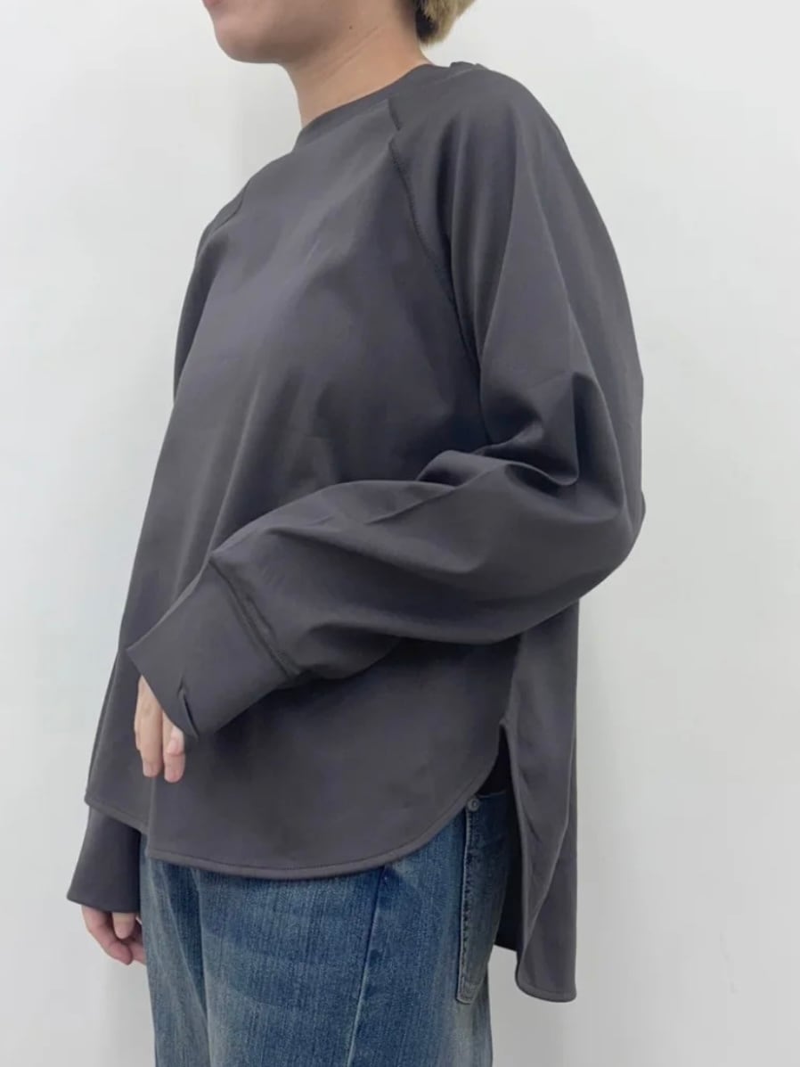 肌触りの良いコットン素材を使用したシンプルで着まわしやすいラグランプルオーバ
