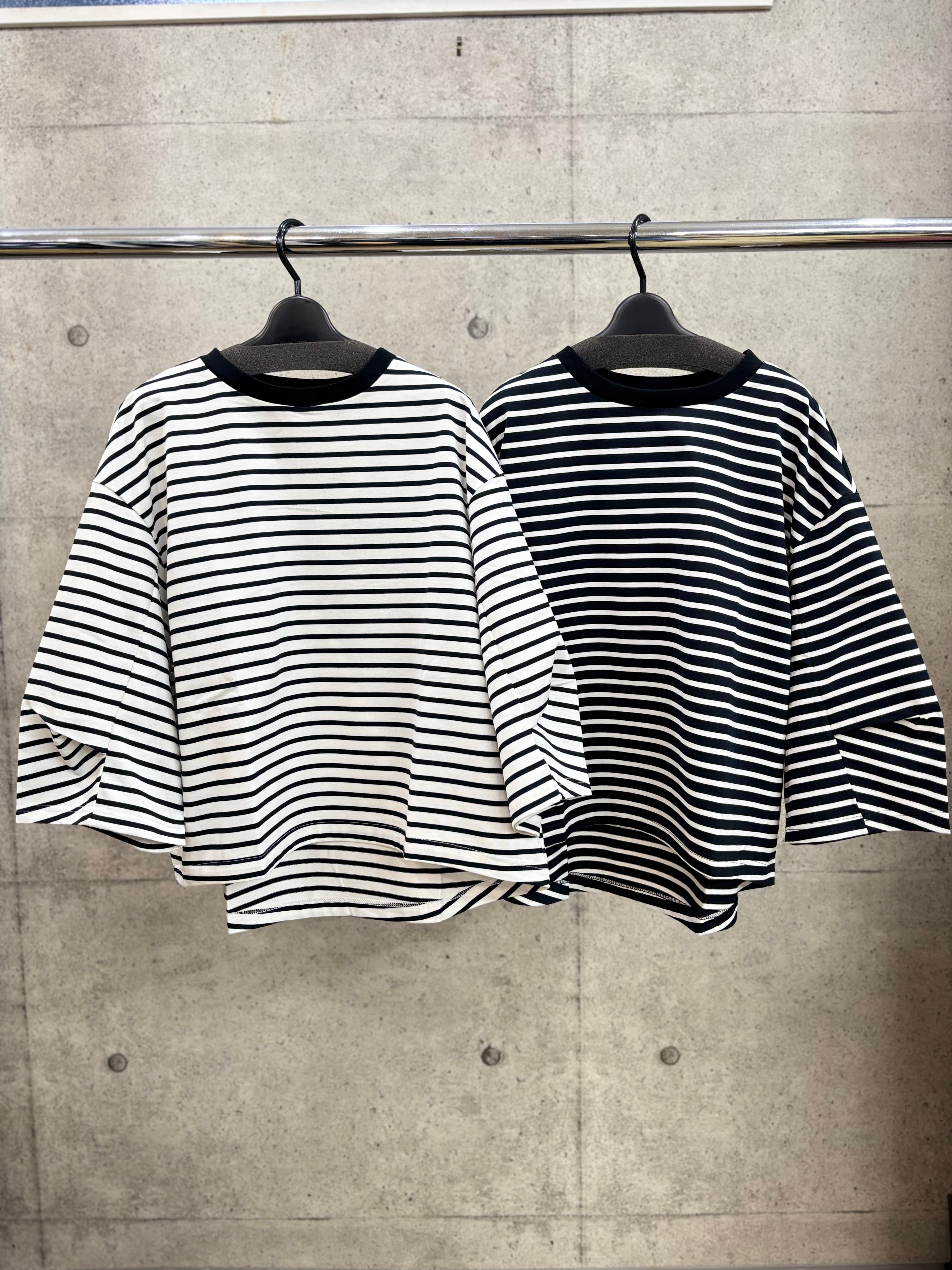 ゆったりとしたシルエットと、広めの袖デザインがポイントの1枚です