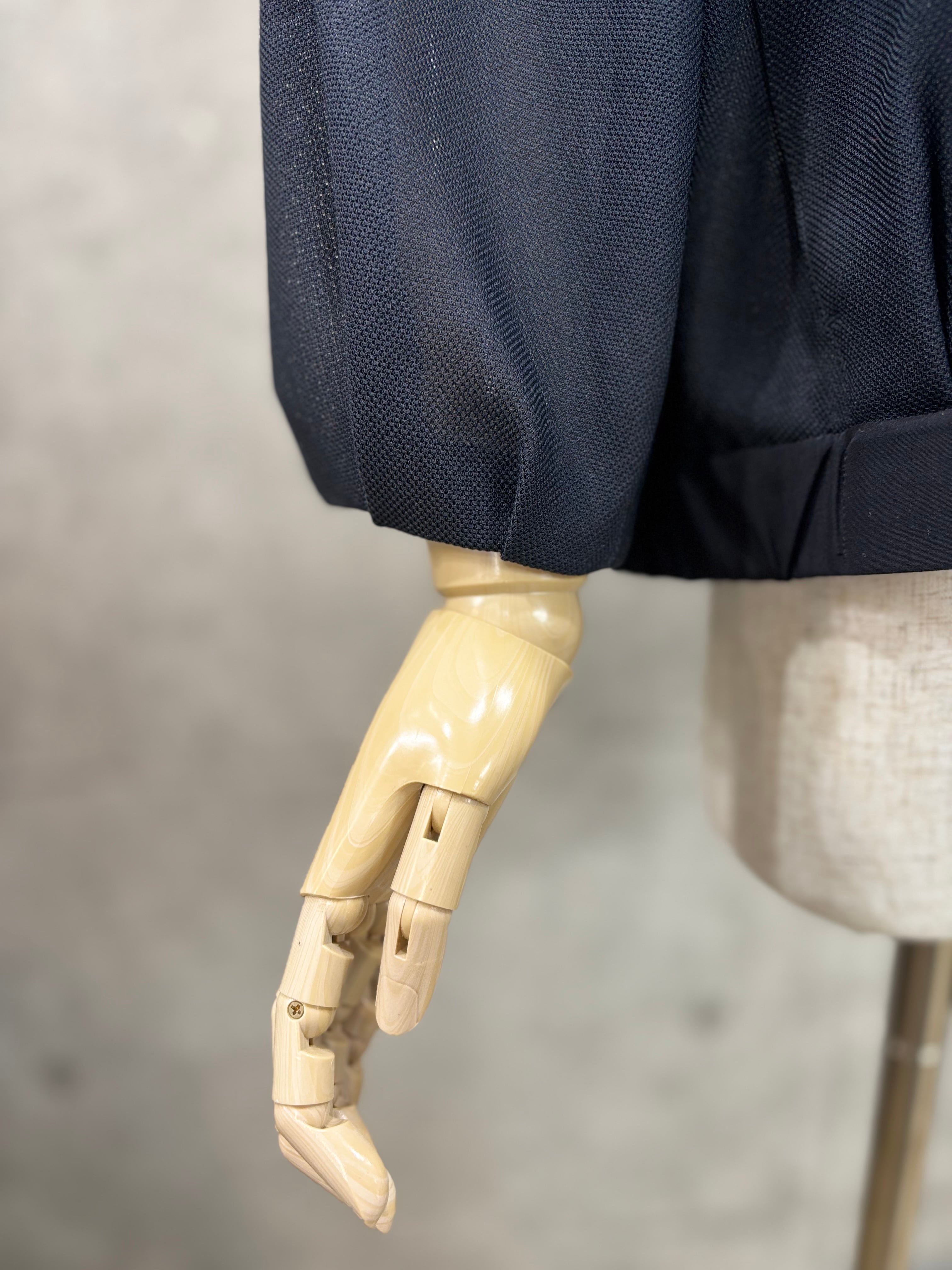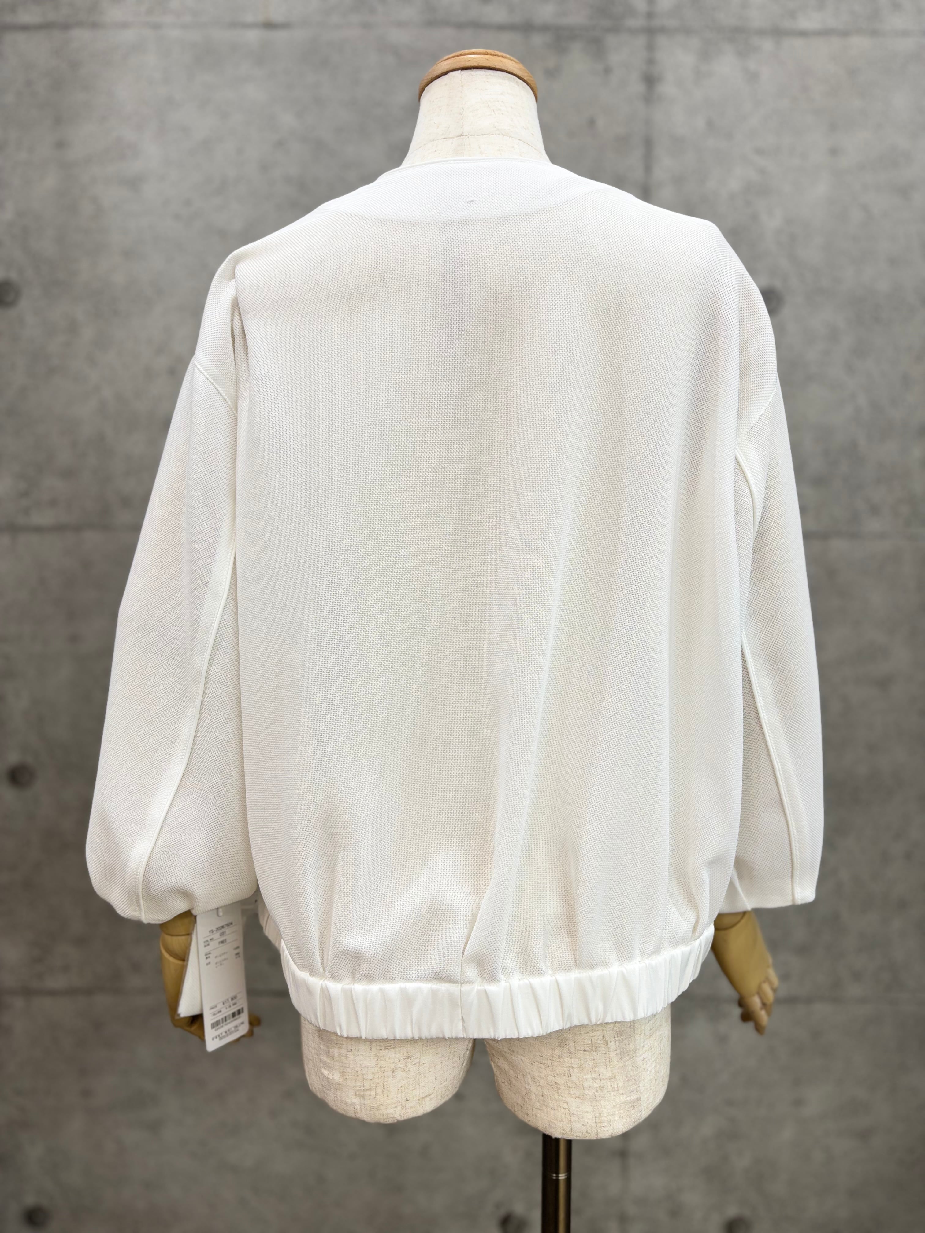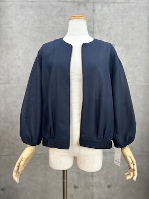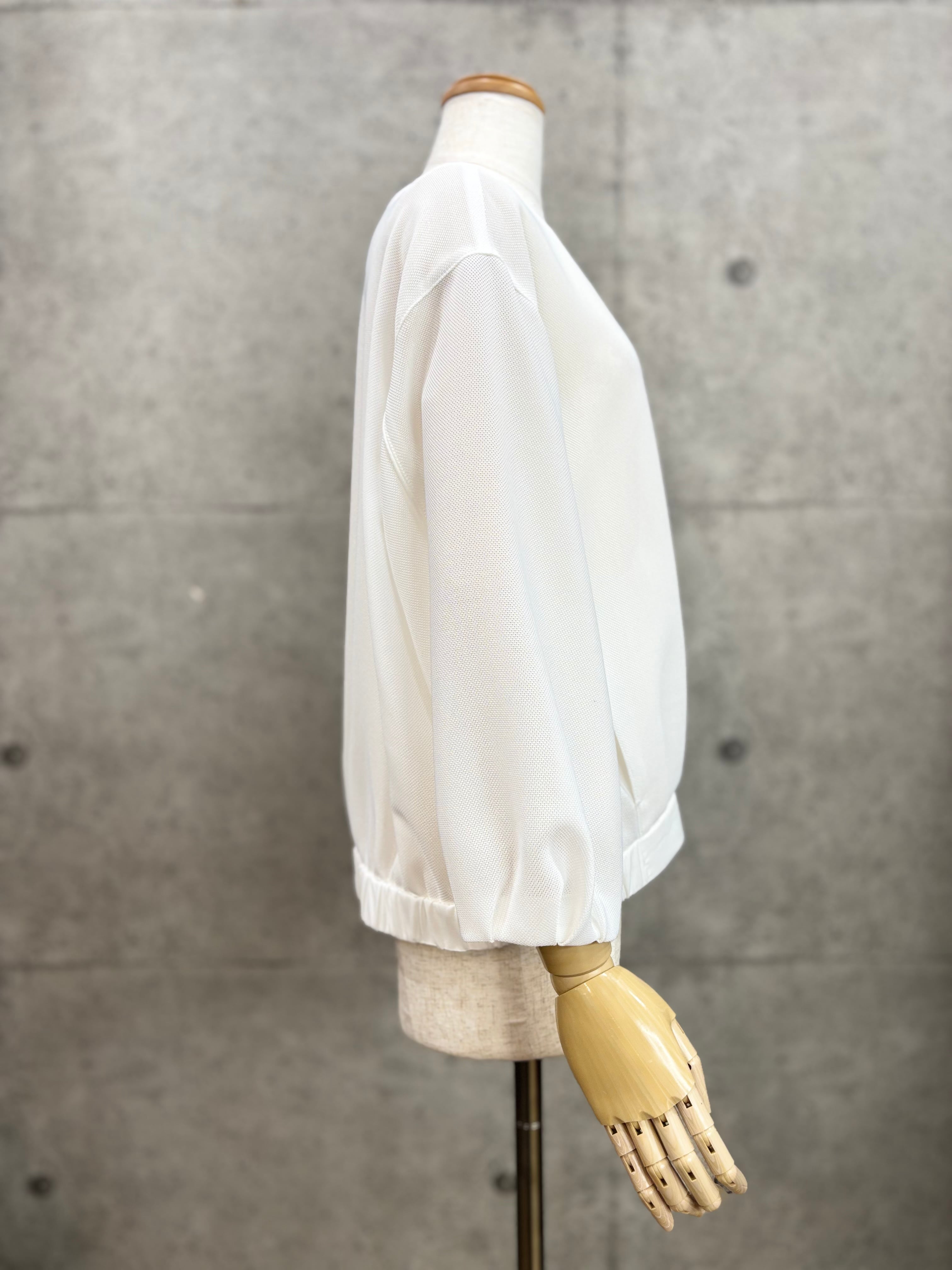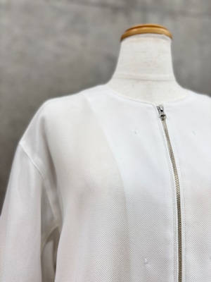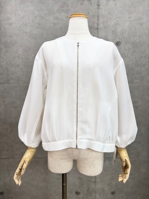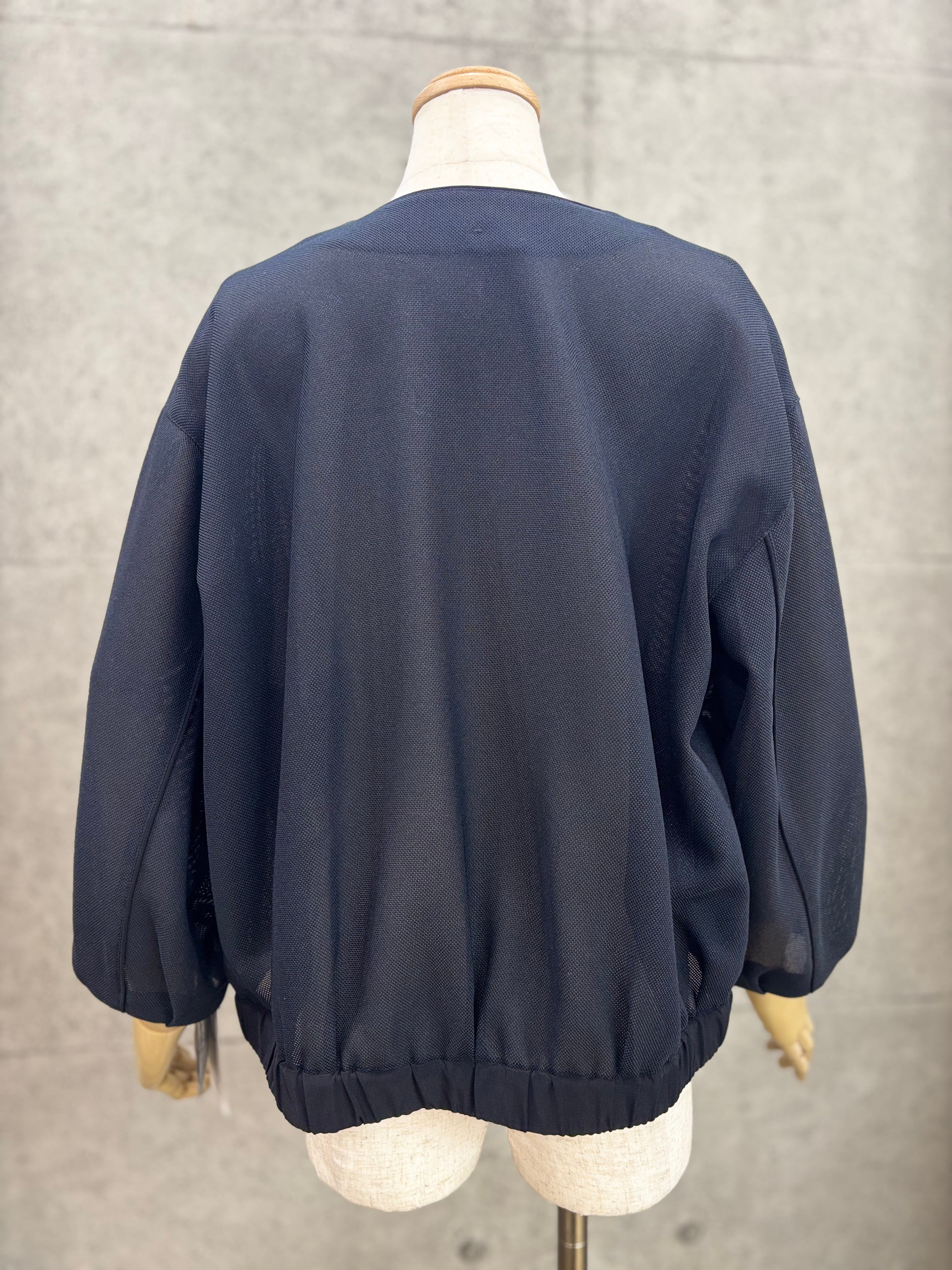 軽やかなメッシュ素材で仕立てたノーカラーブルゾン