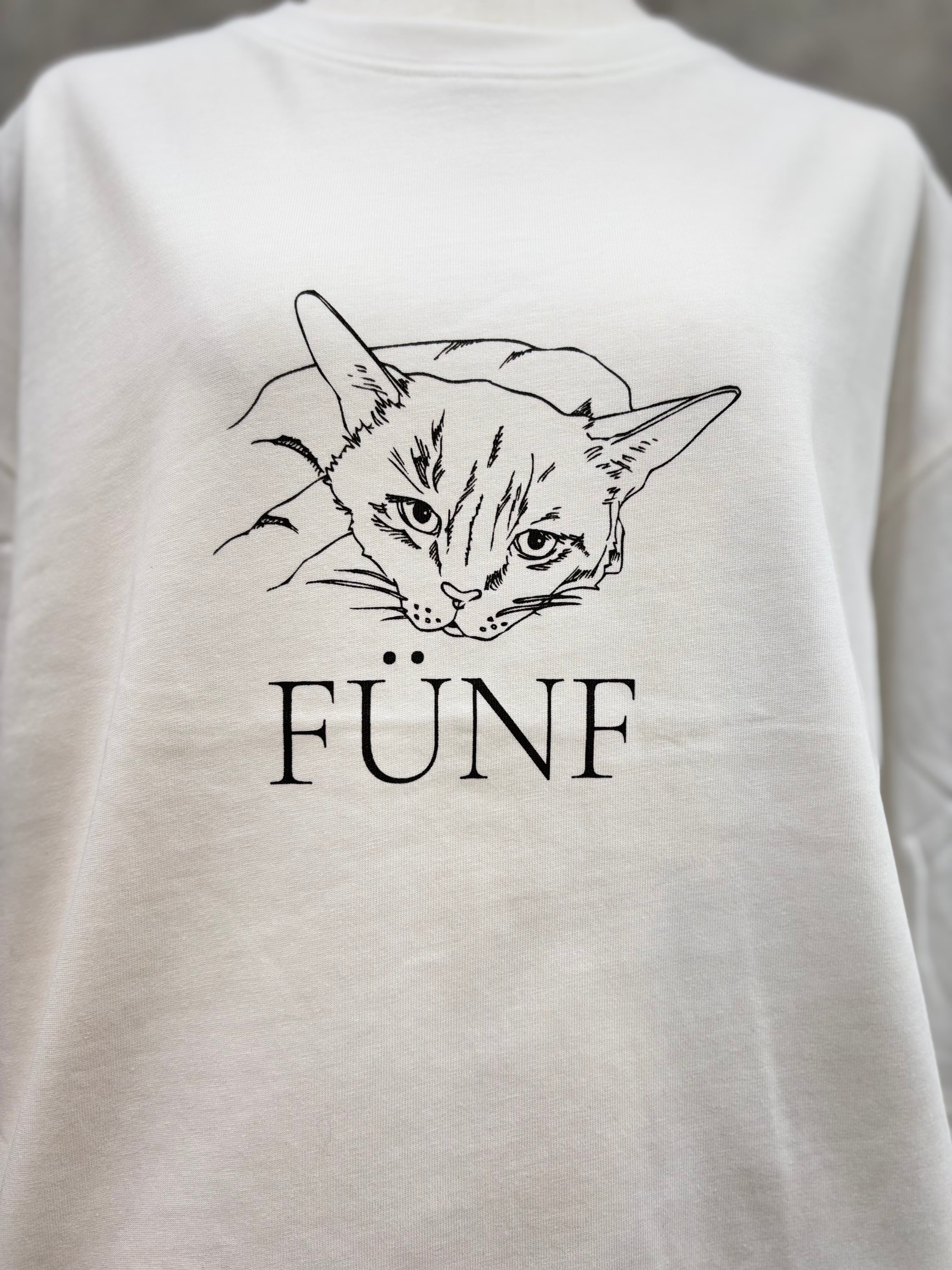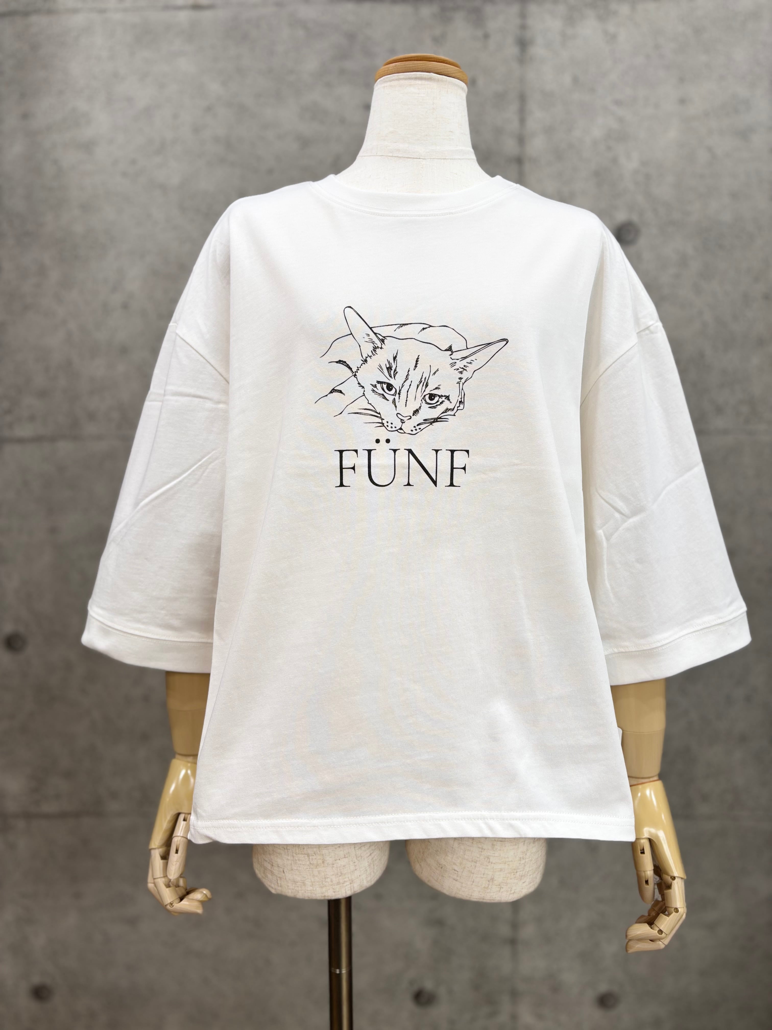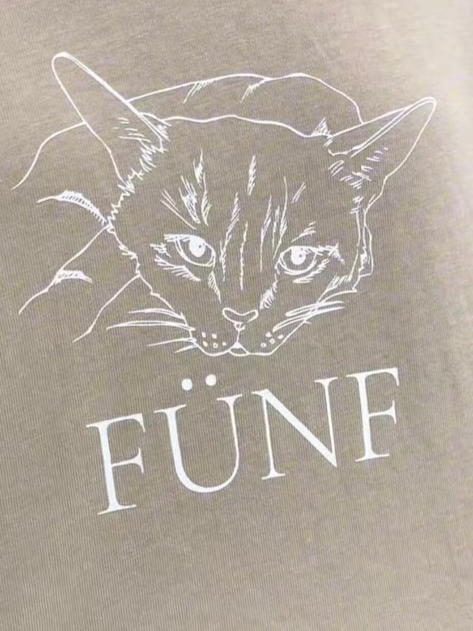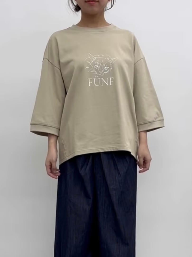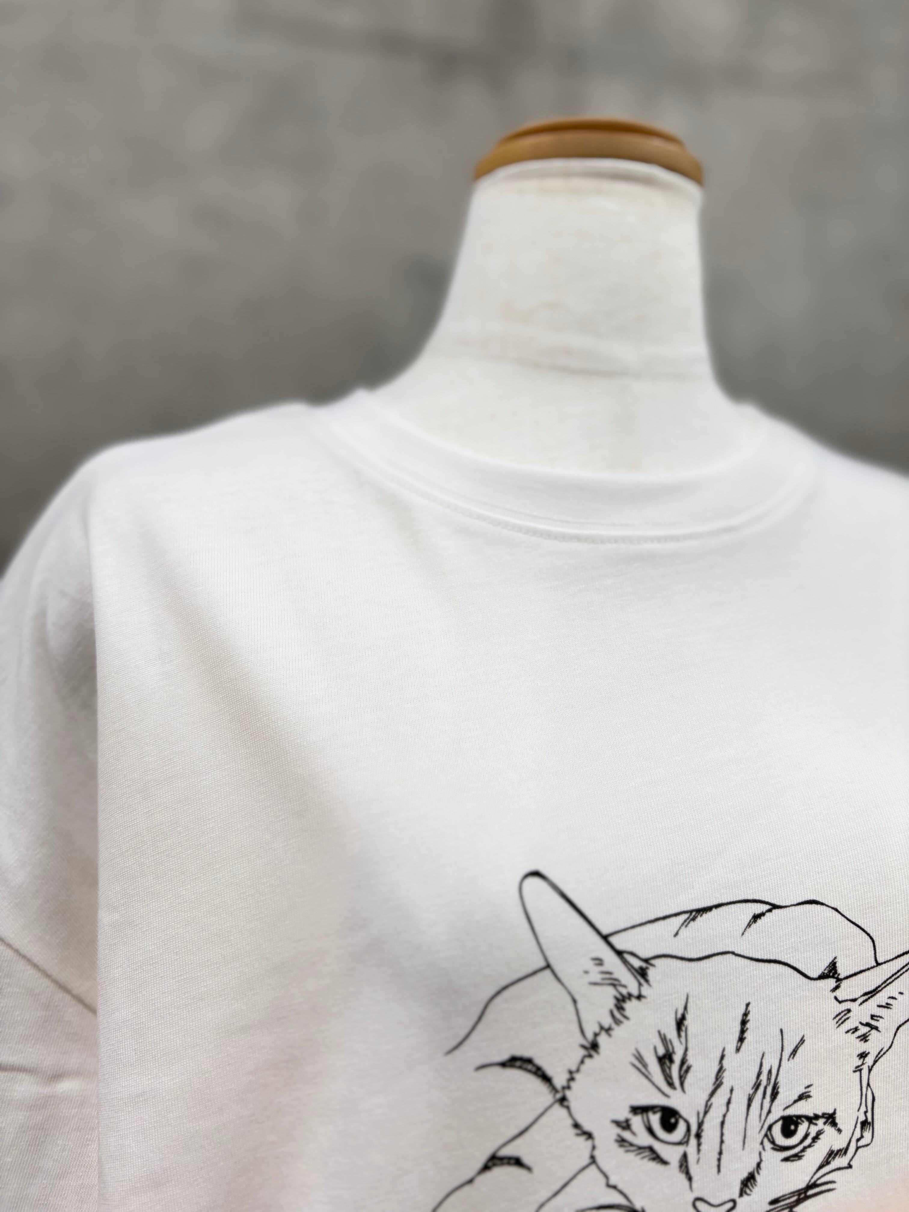 前身頃の物憂げな猫のイラストプリントがポイント