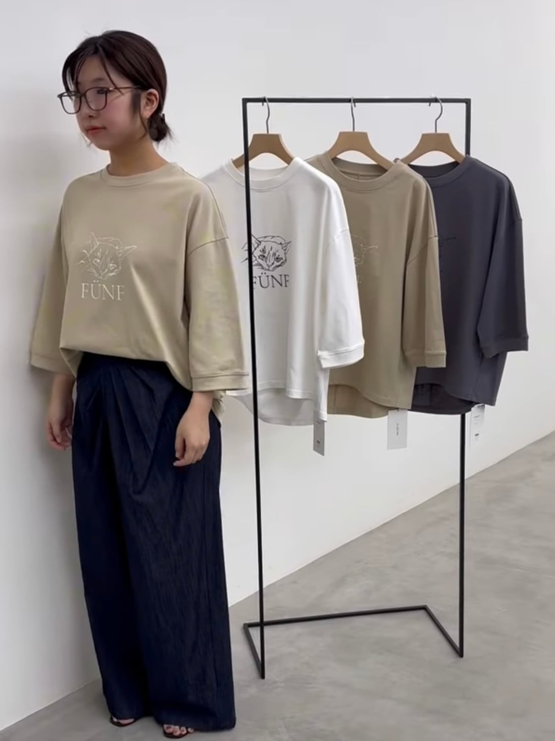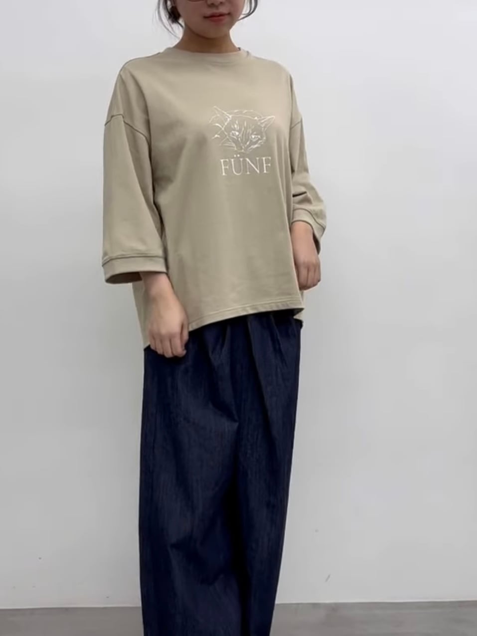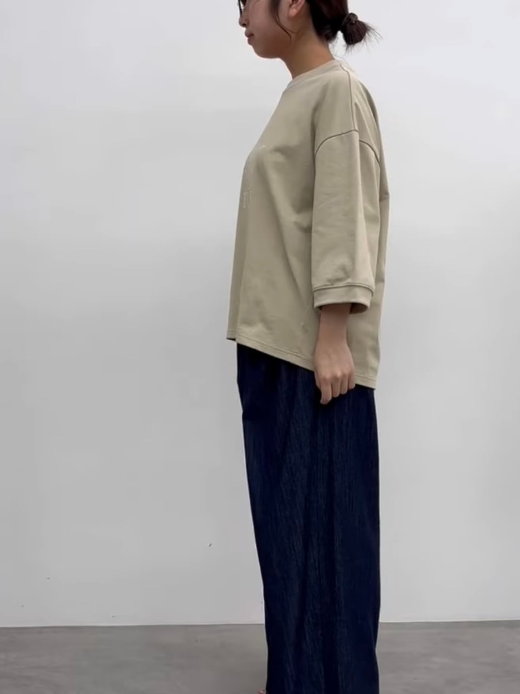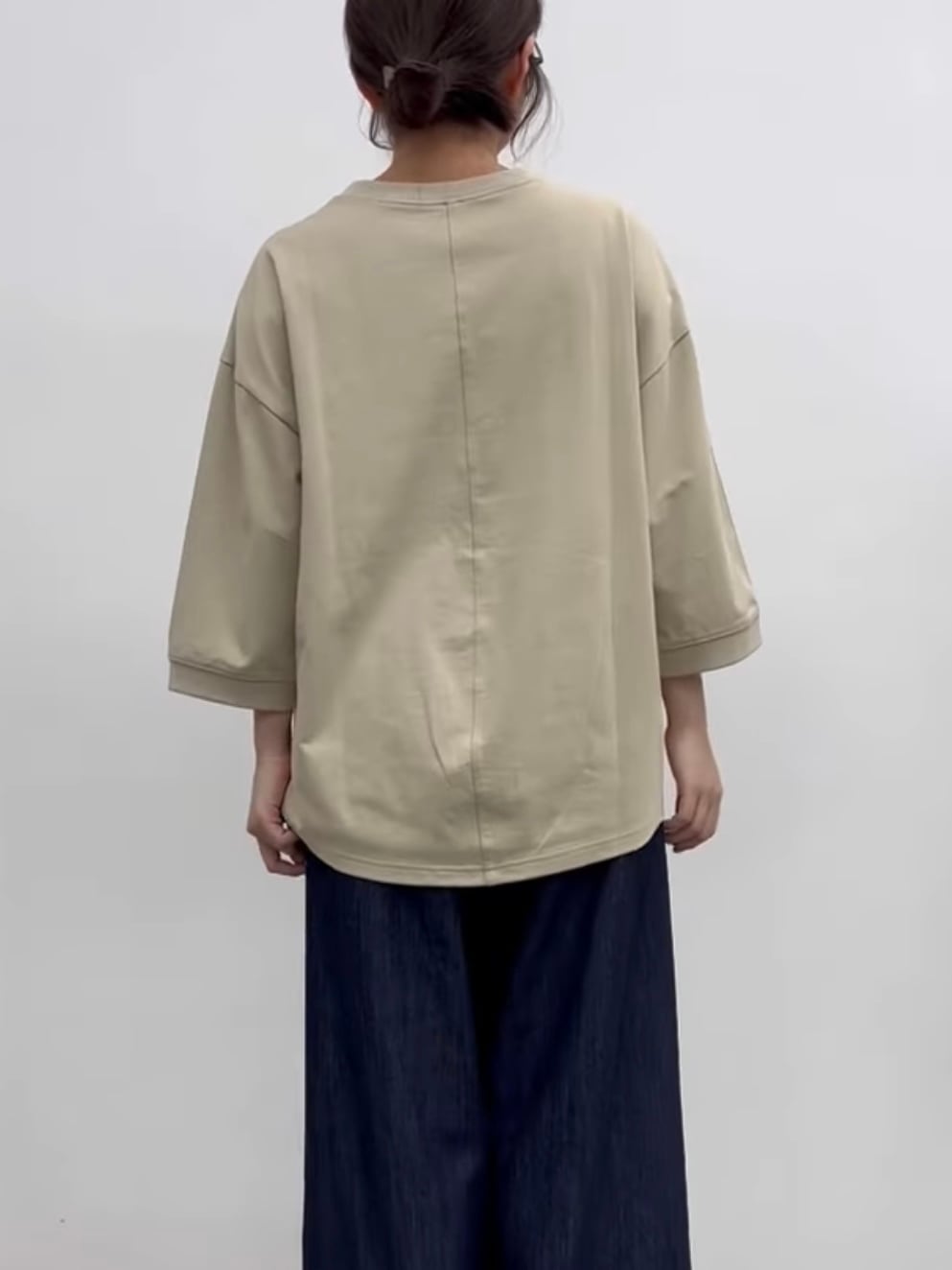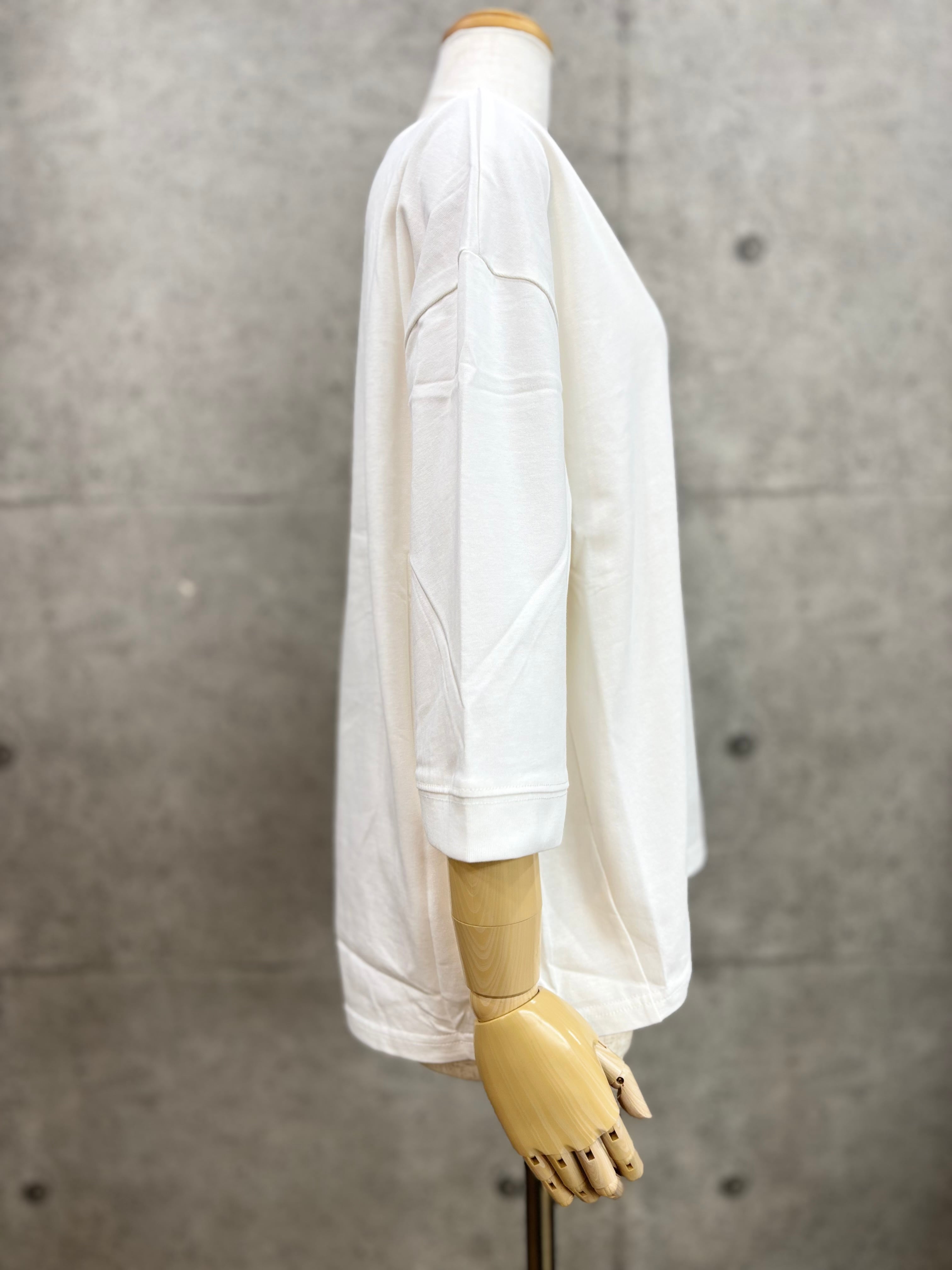 ゆったりとしたサイズ感の5分袖Tシャツです
