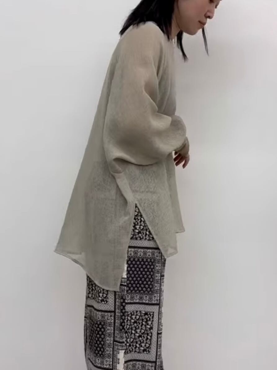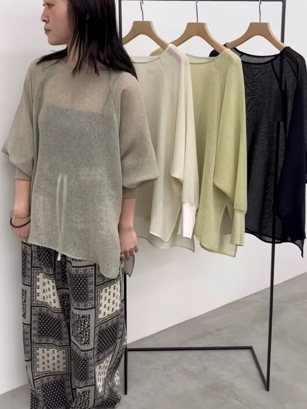 透け感のあるトップスなので、カップ付きインナーとの合わせやプリントTとのレイヤードスタイルなどいろんなコーデにお使い頂けます