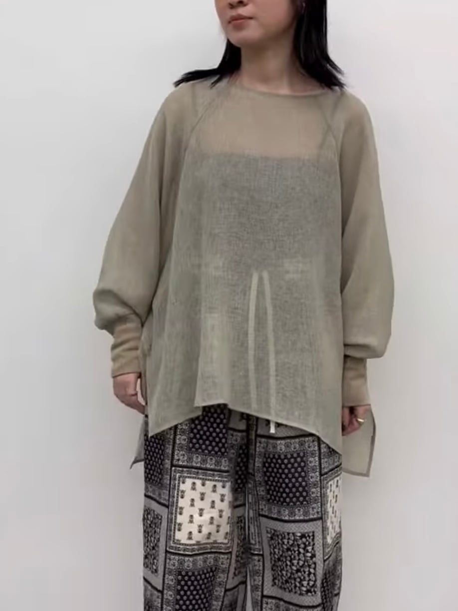 [送料無料】CLOCHE(クロッシェ) リネン風メッシュプルオーバ シアー オーバーサイズ 大人カジュアル 手洗い可能 610-85023