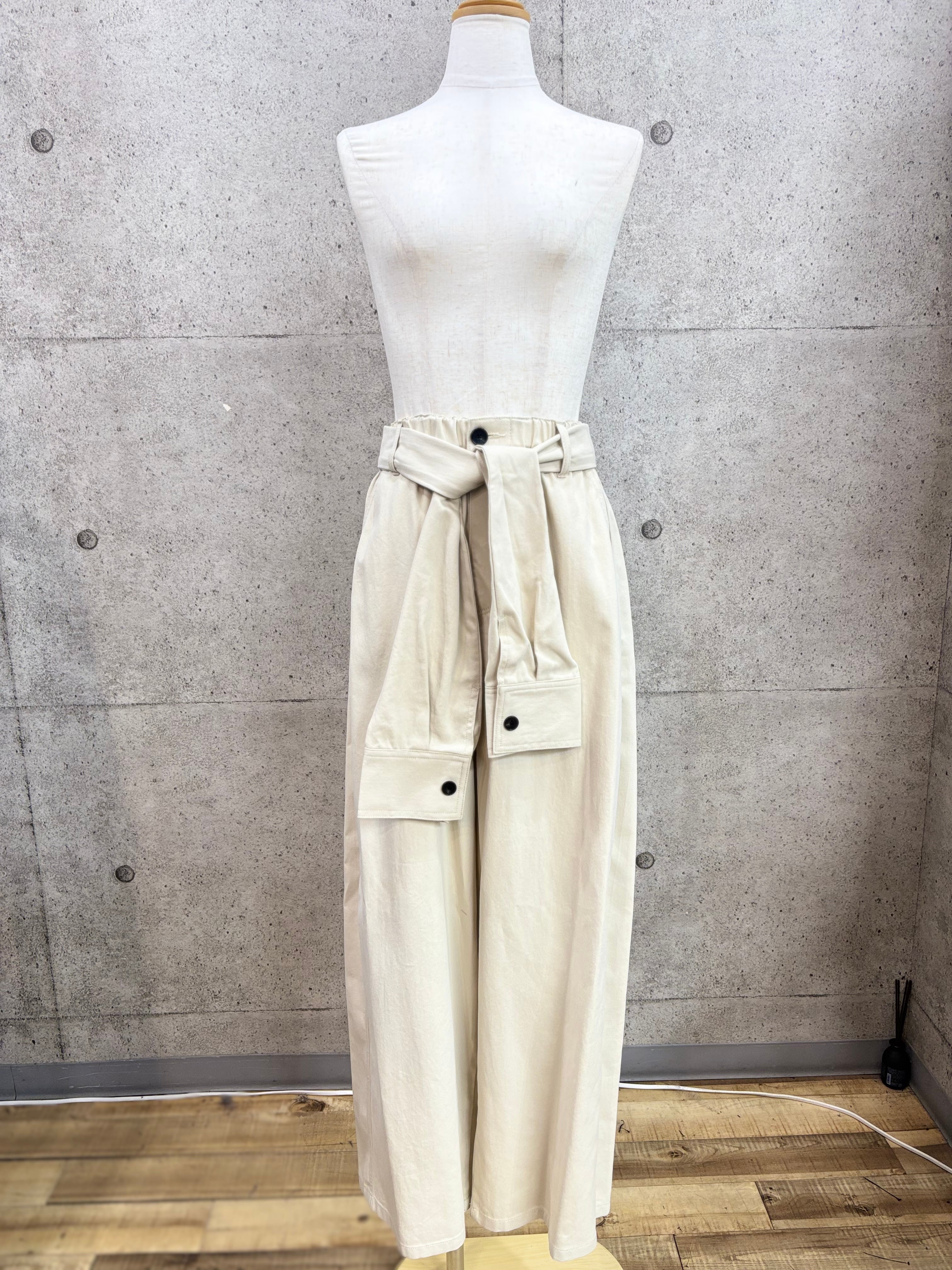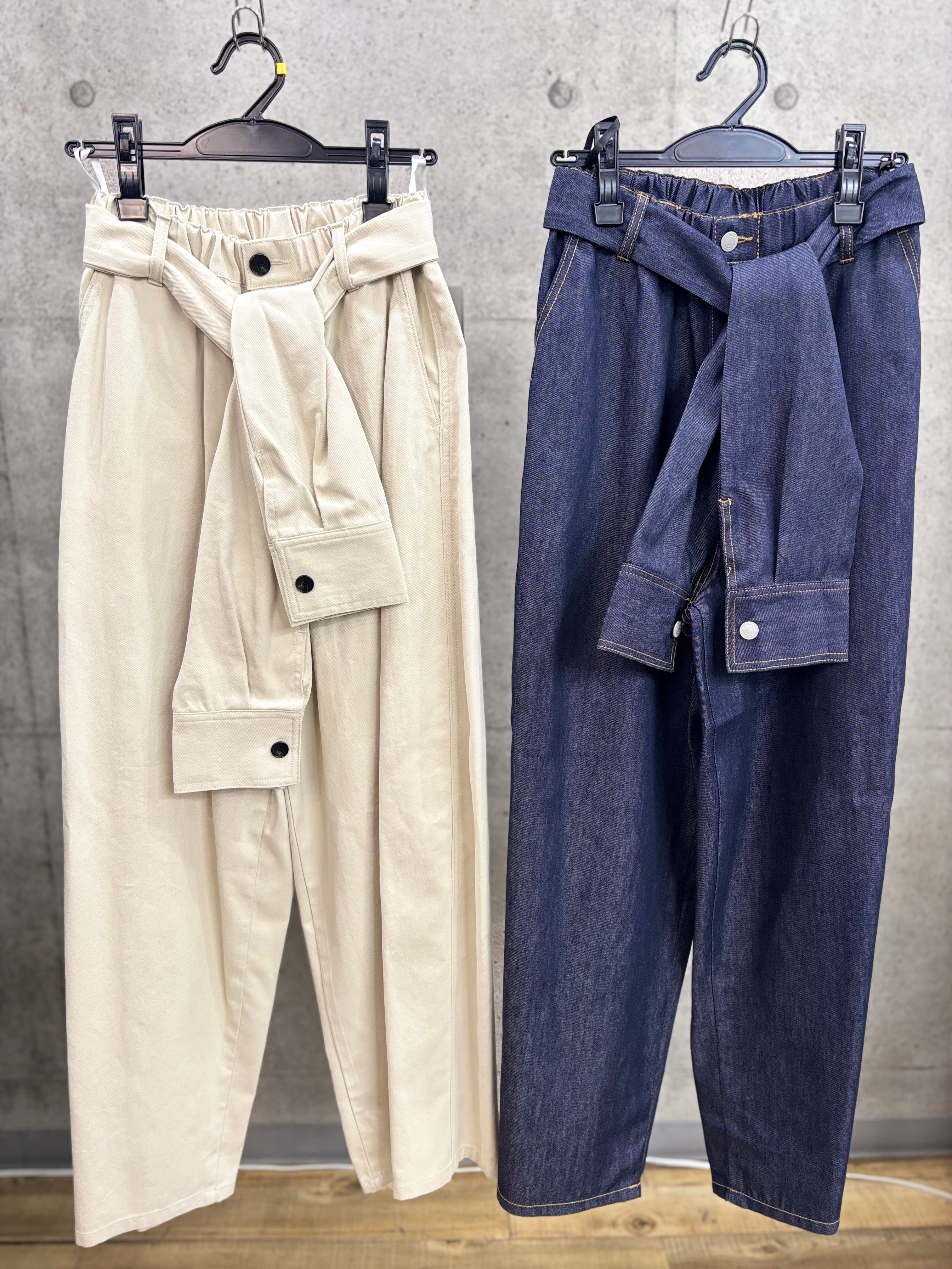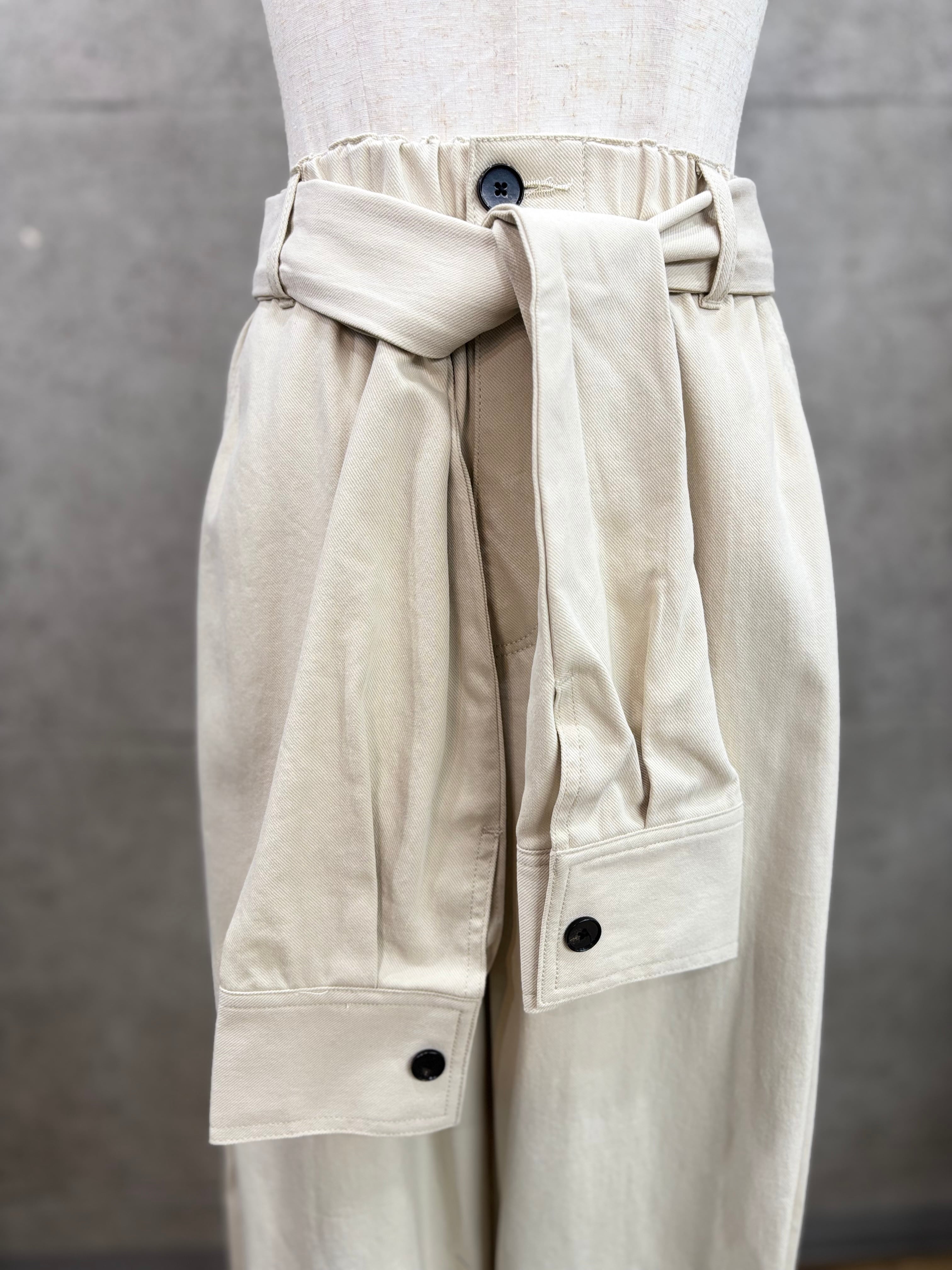ウエストのベルトがシャツの袖になっているパンツ