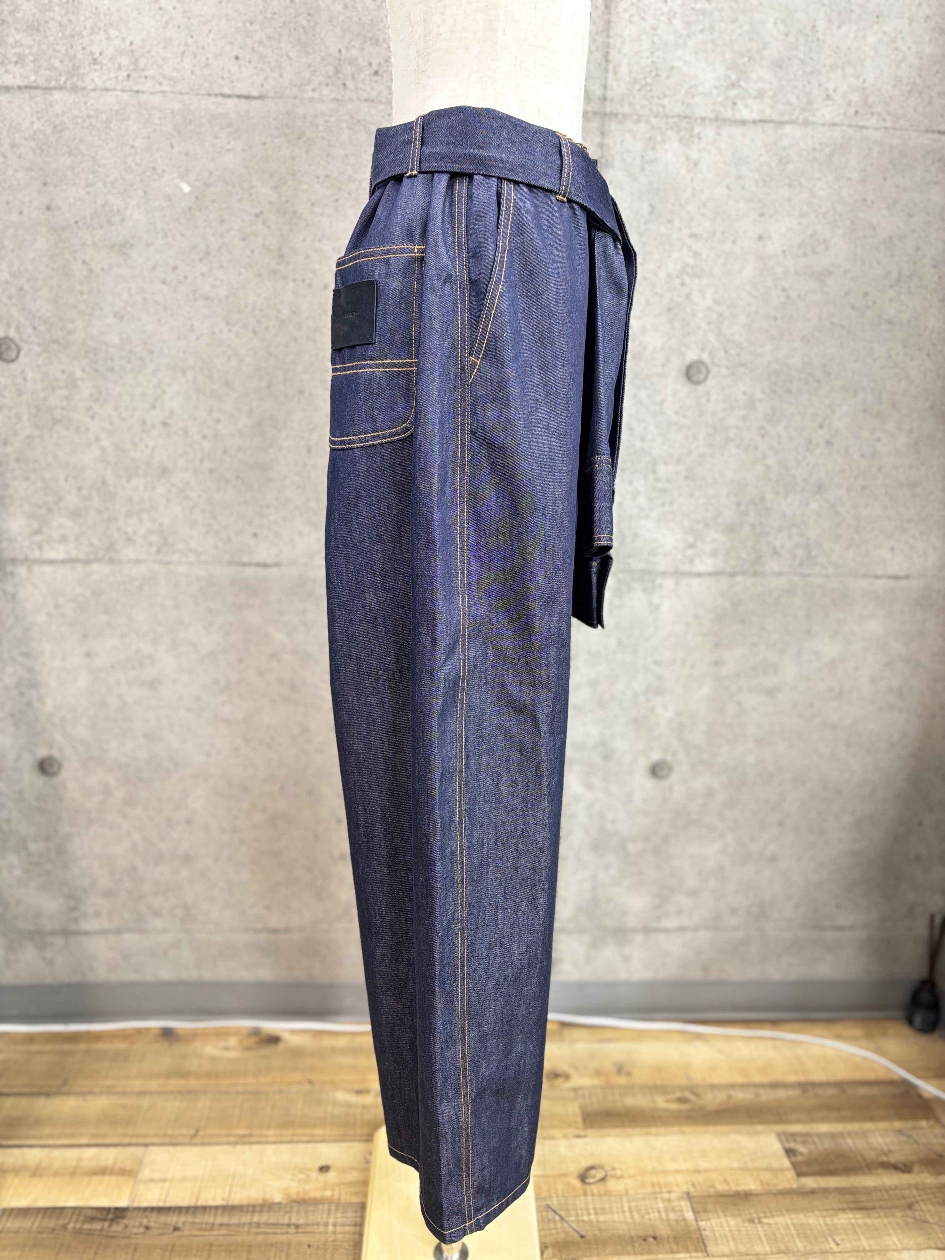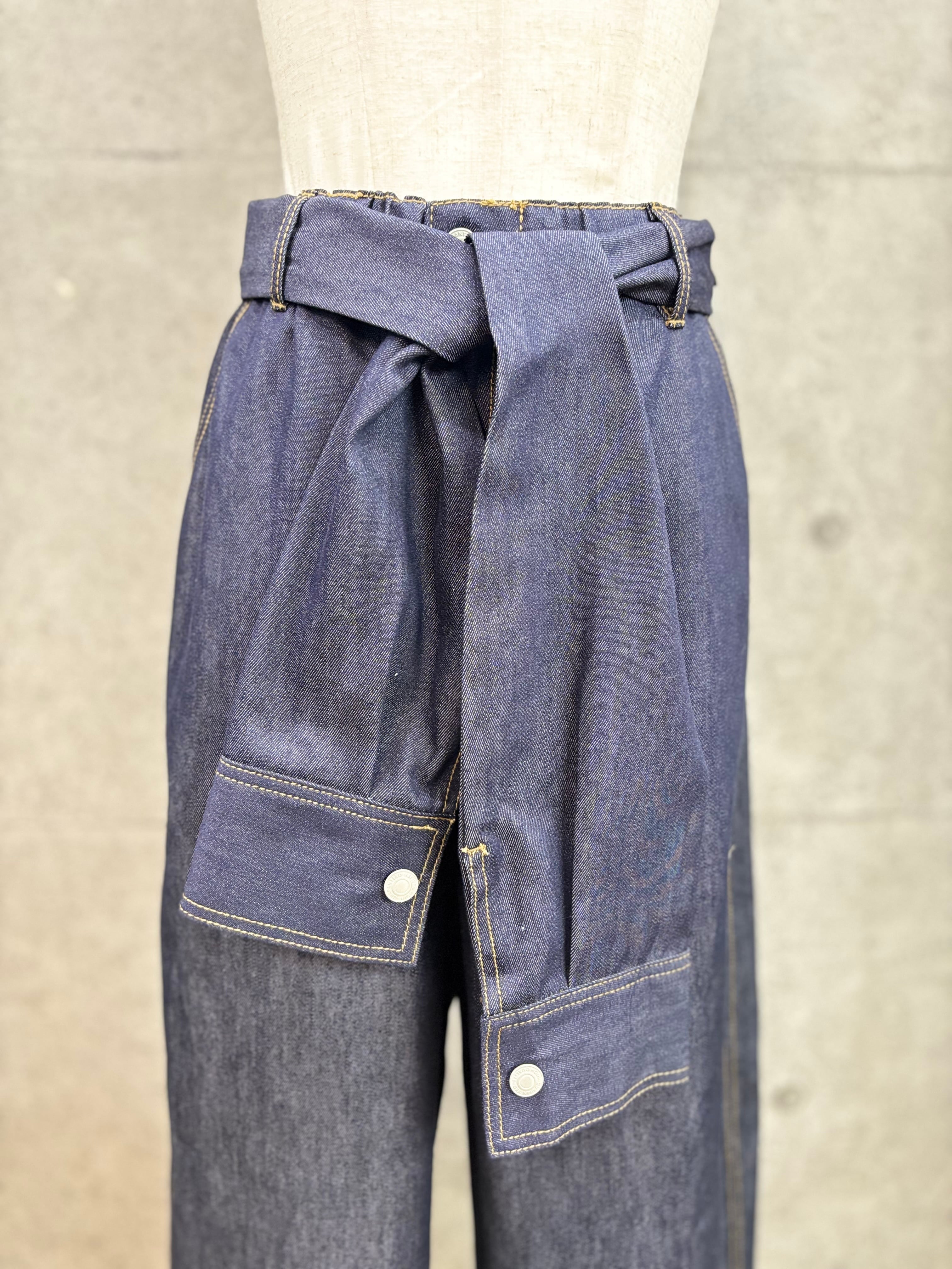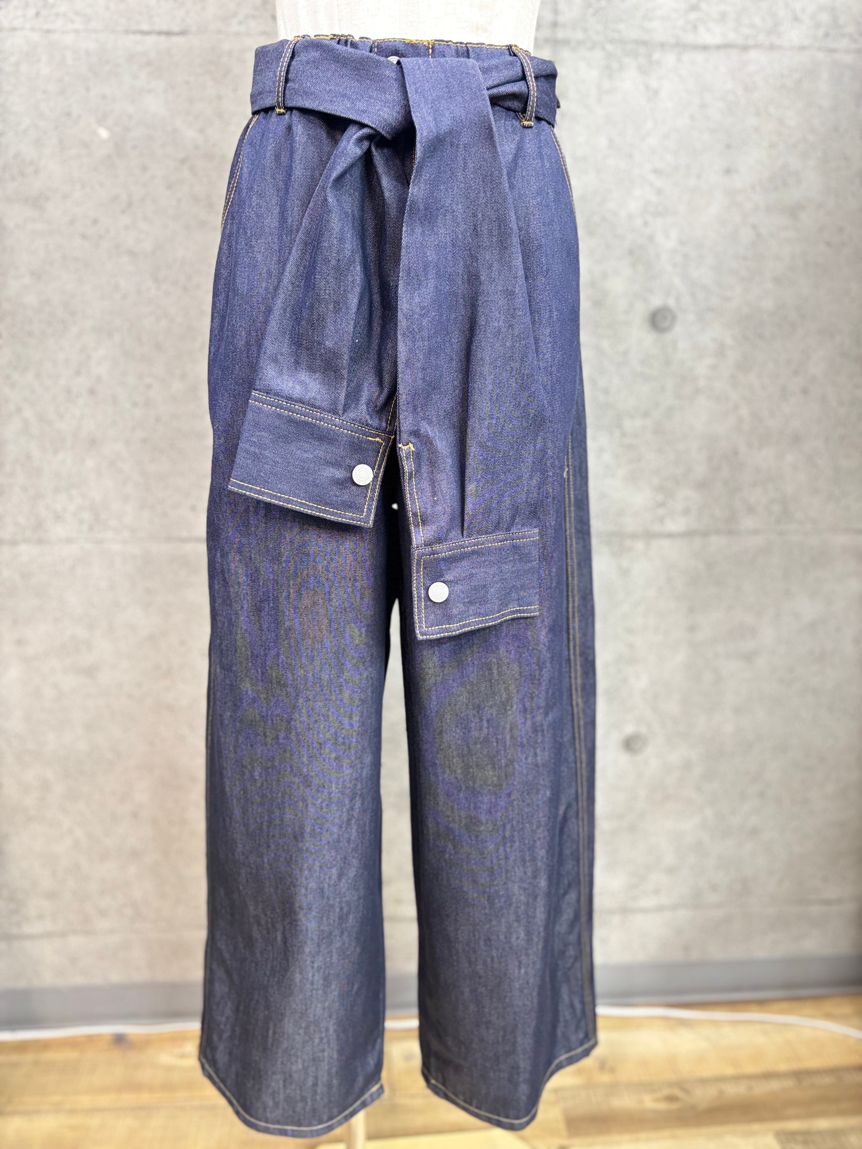 ウエストのベルトがシャツの袖になっているパンツ
