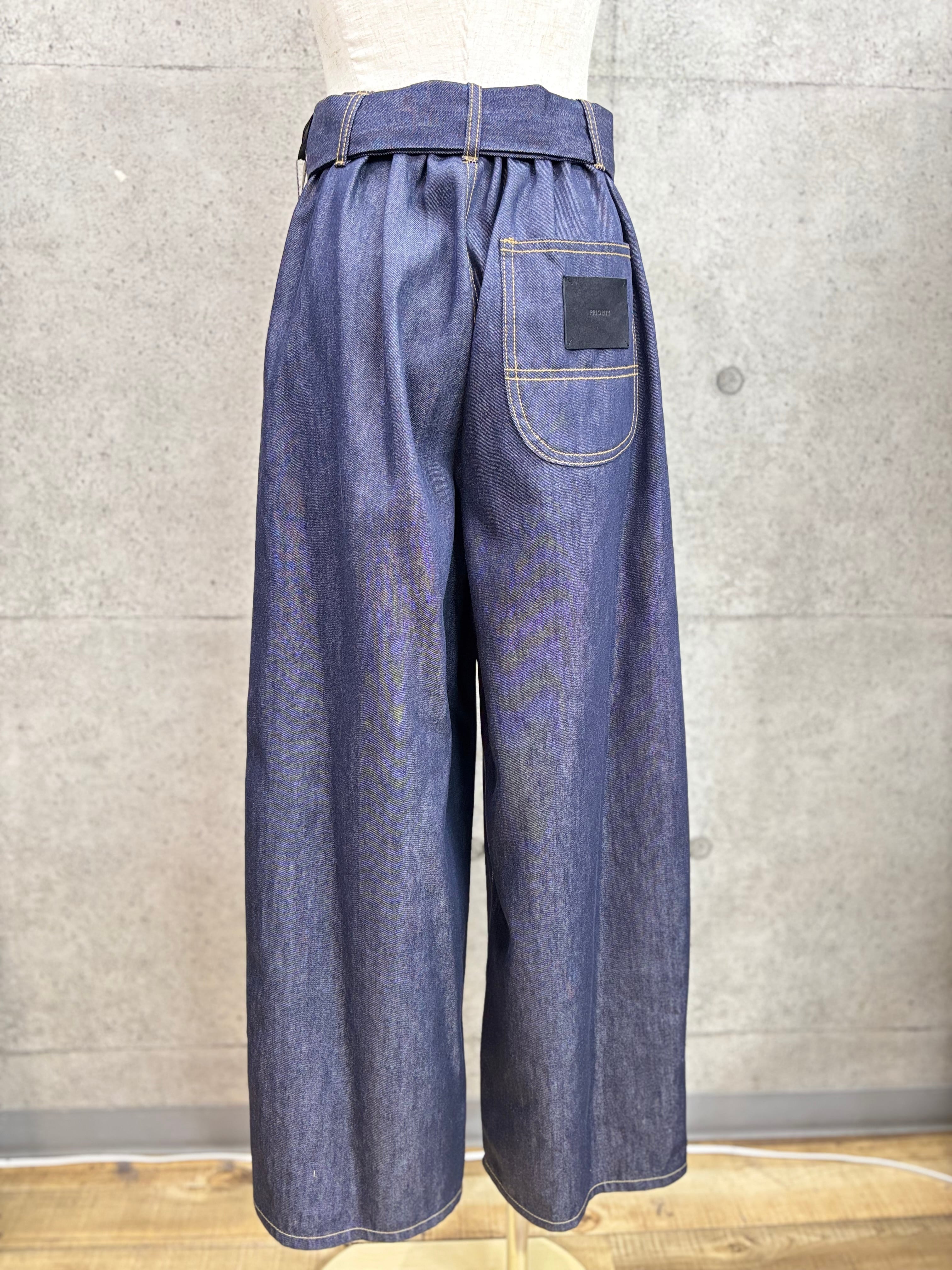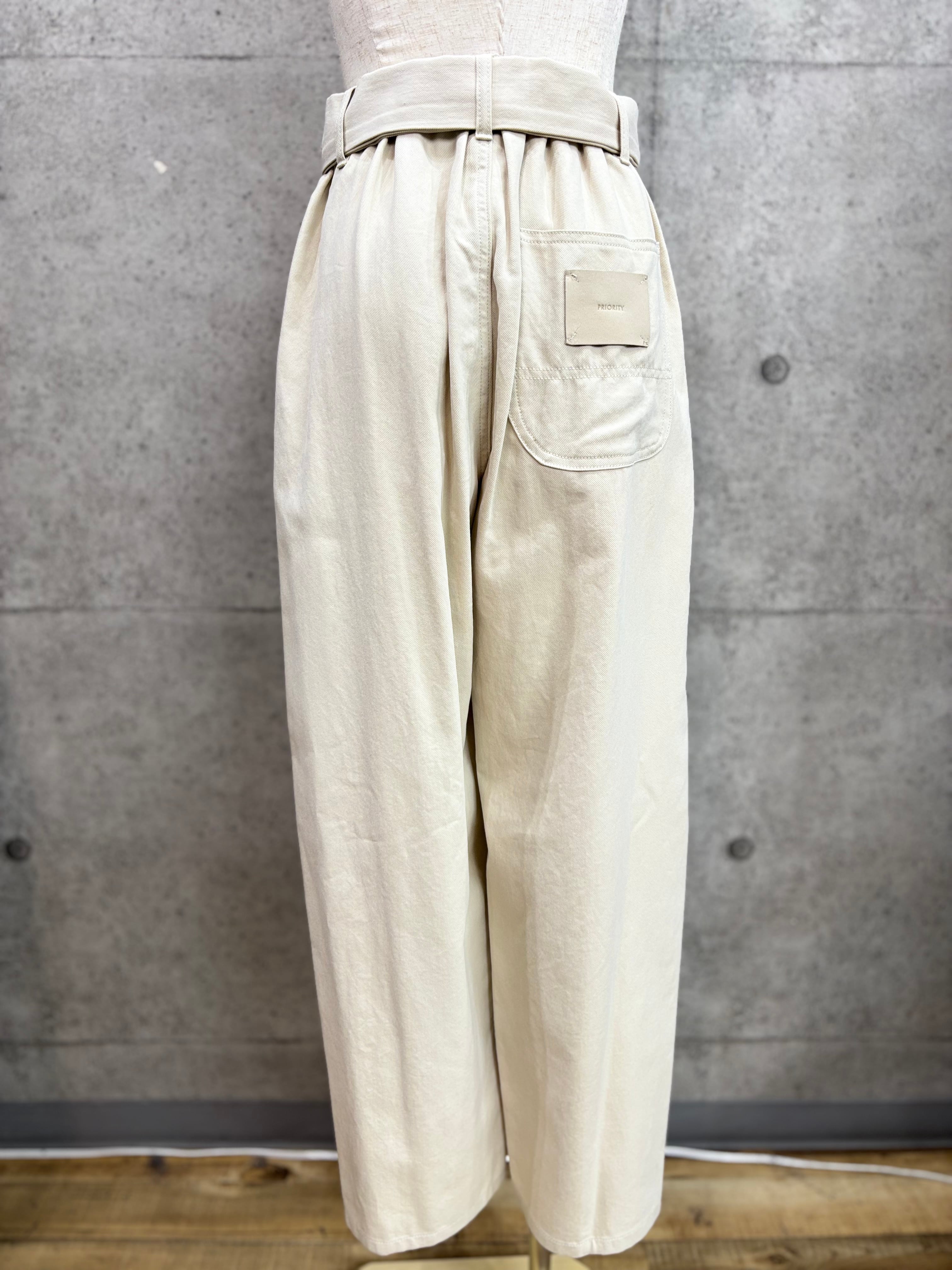 【送料無料】PRIORITY(プライオリティ)ウエストシャツベルトパンツ コクーン ベルト デニム チノ 大人カジュアル 水洗い可能 P61060AI