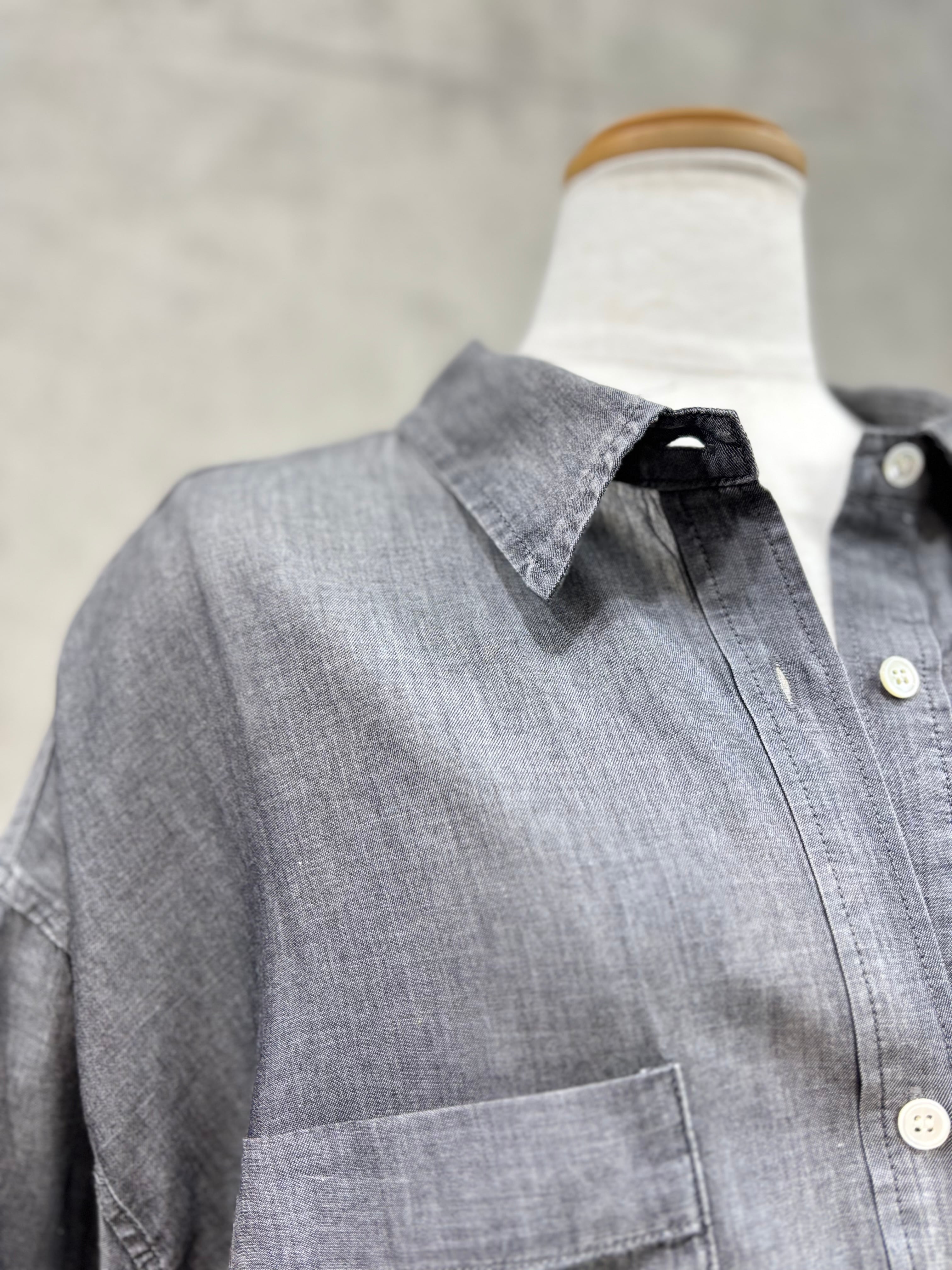 透けすぎず取り入れやすいシアーデニムシャツ。