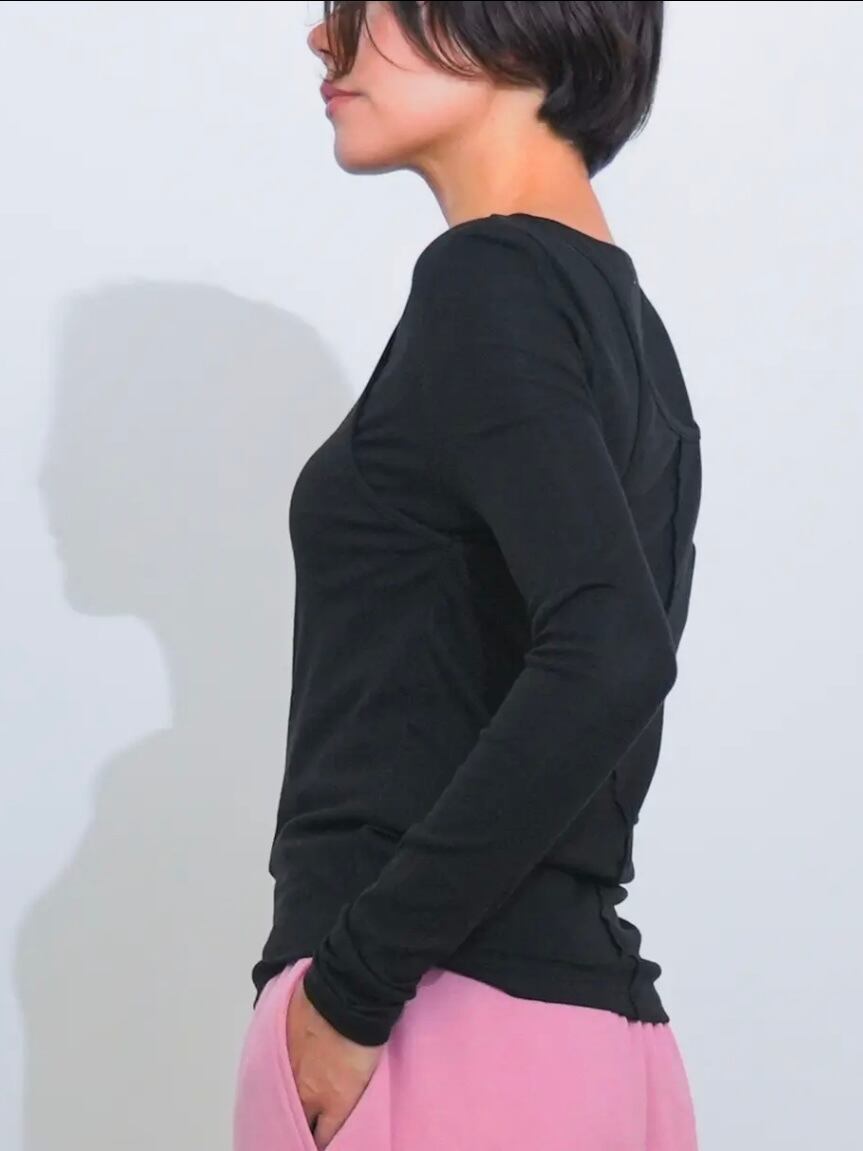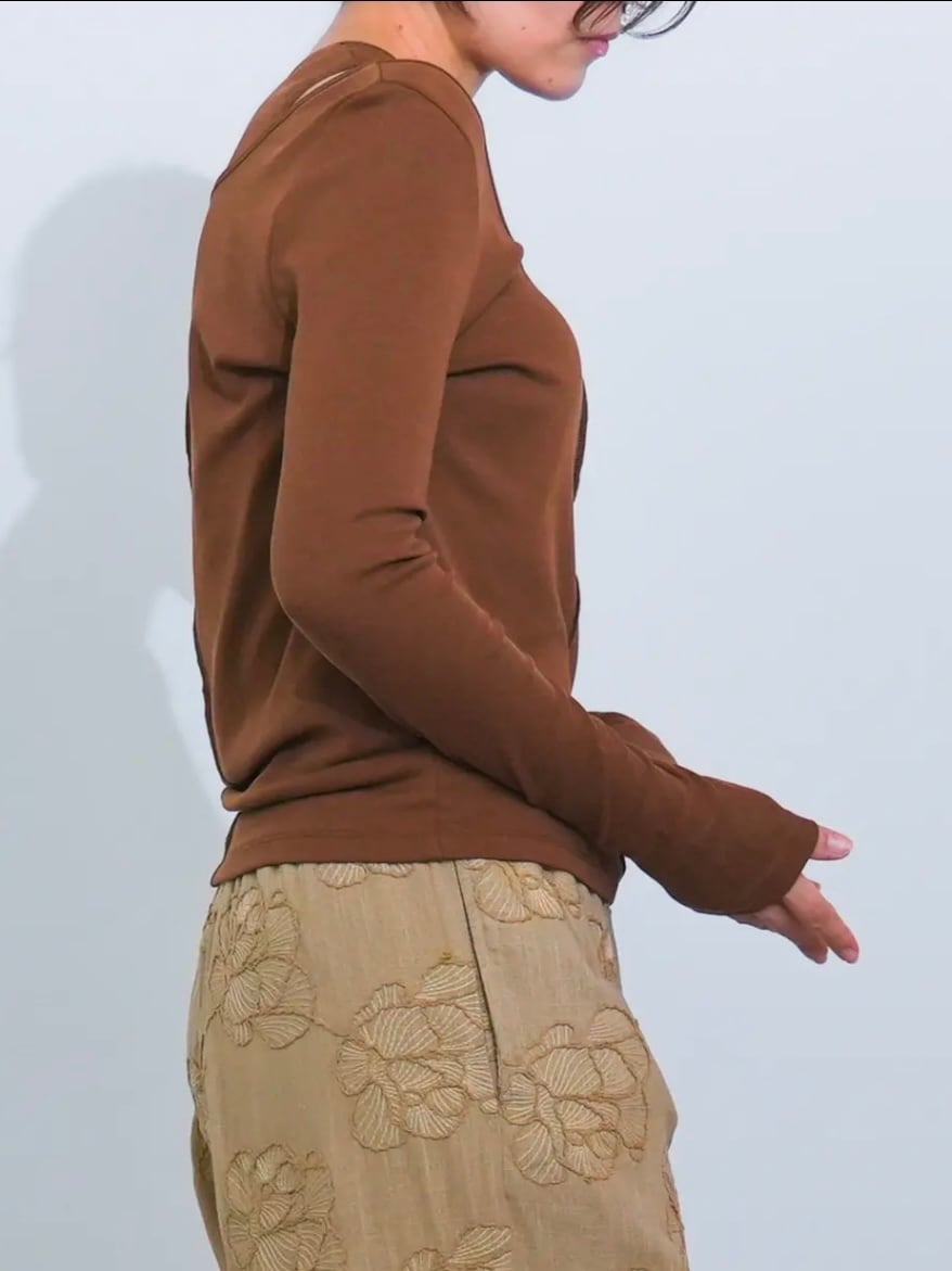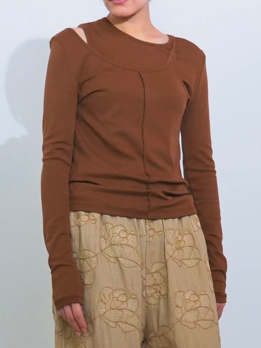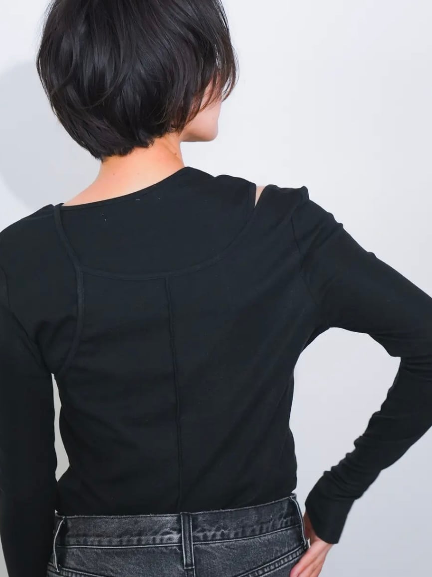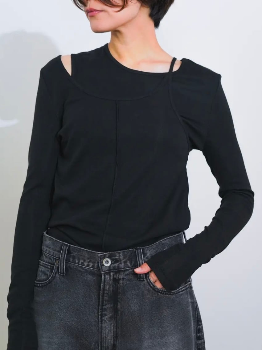 一枚でこなれたレイヤードスタイルが完成するフェイクレイヤードテレコカットソー