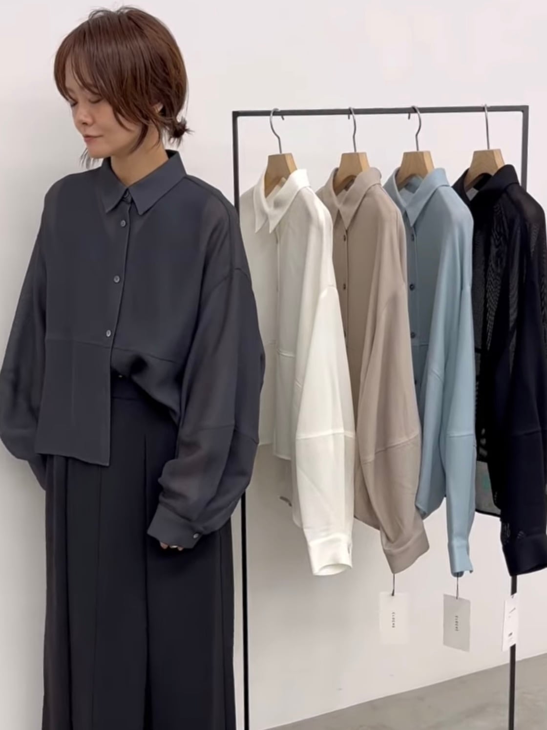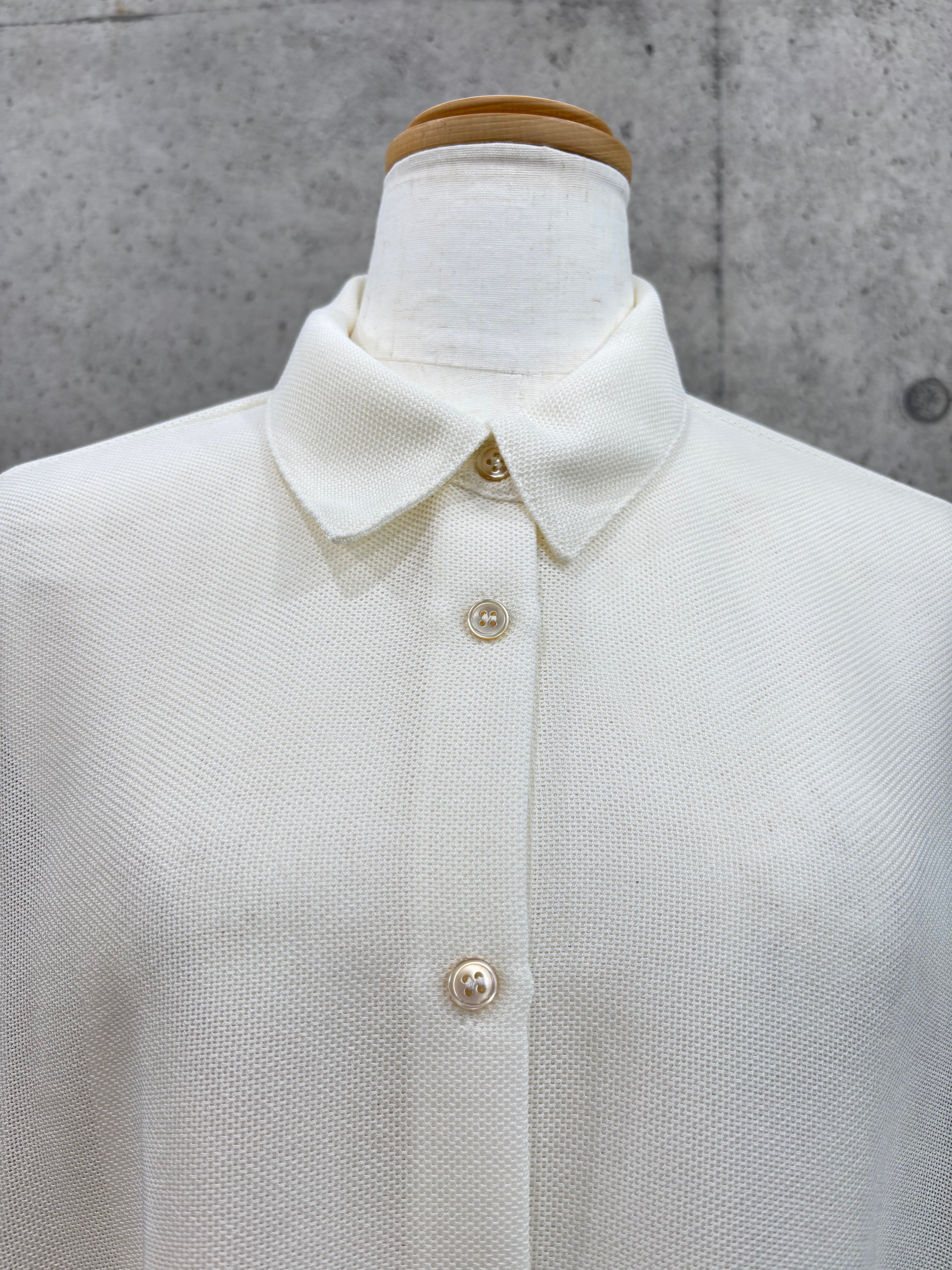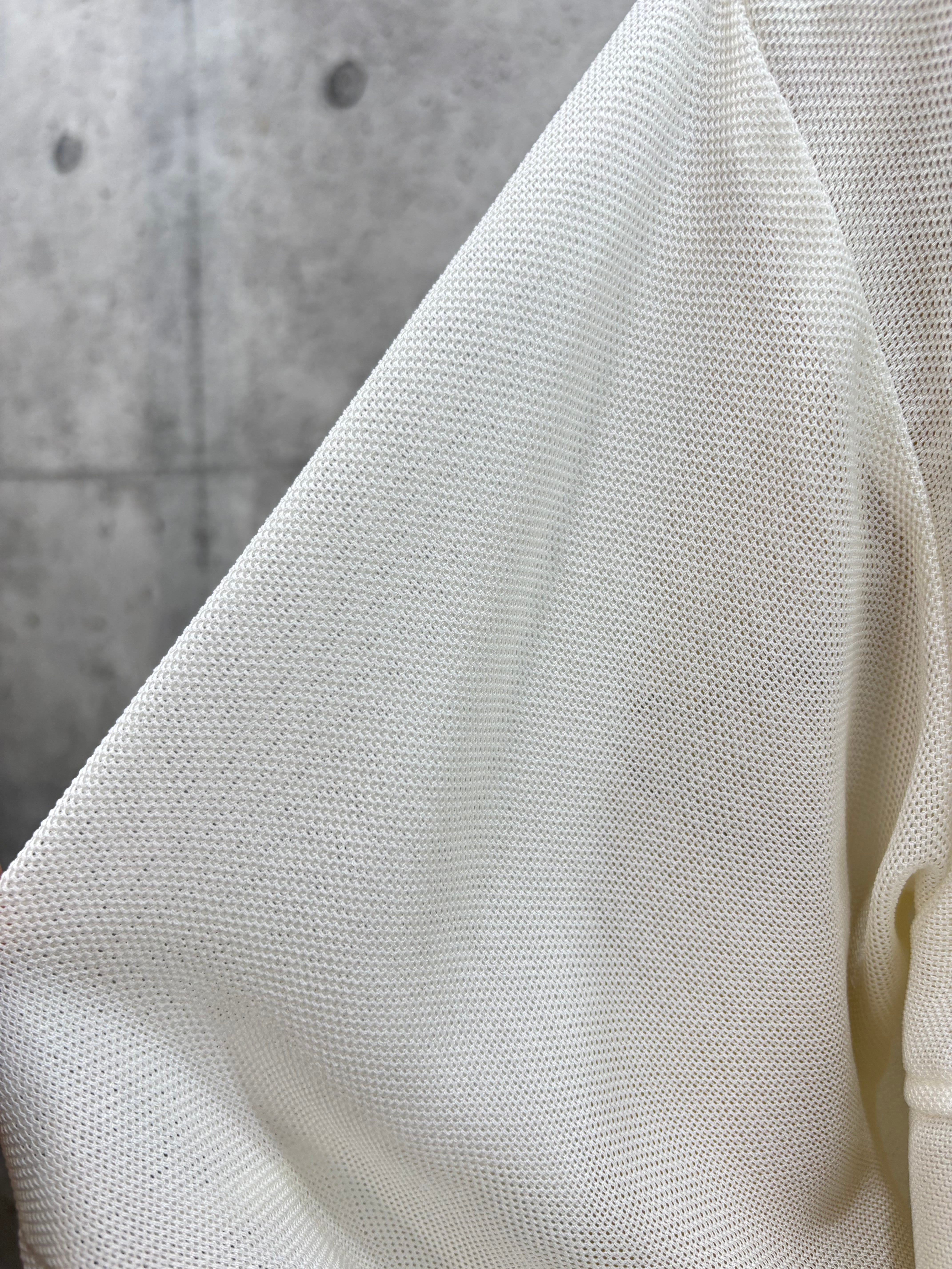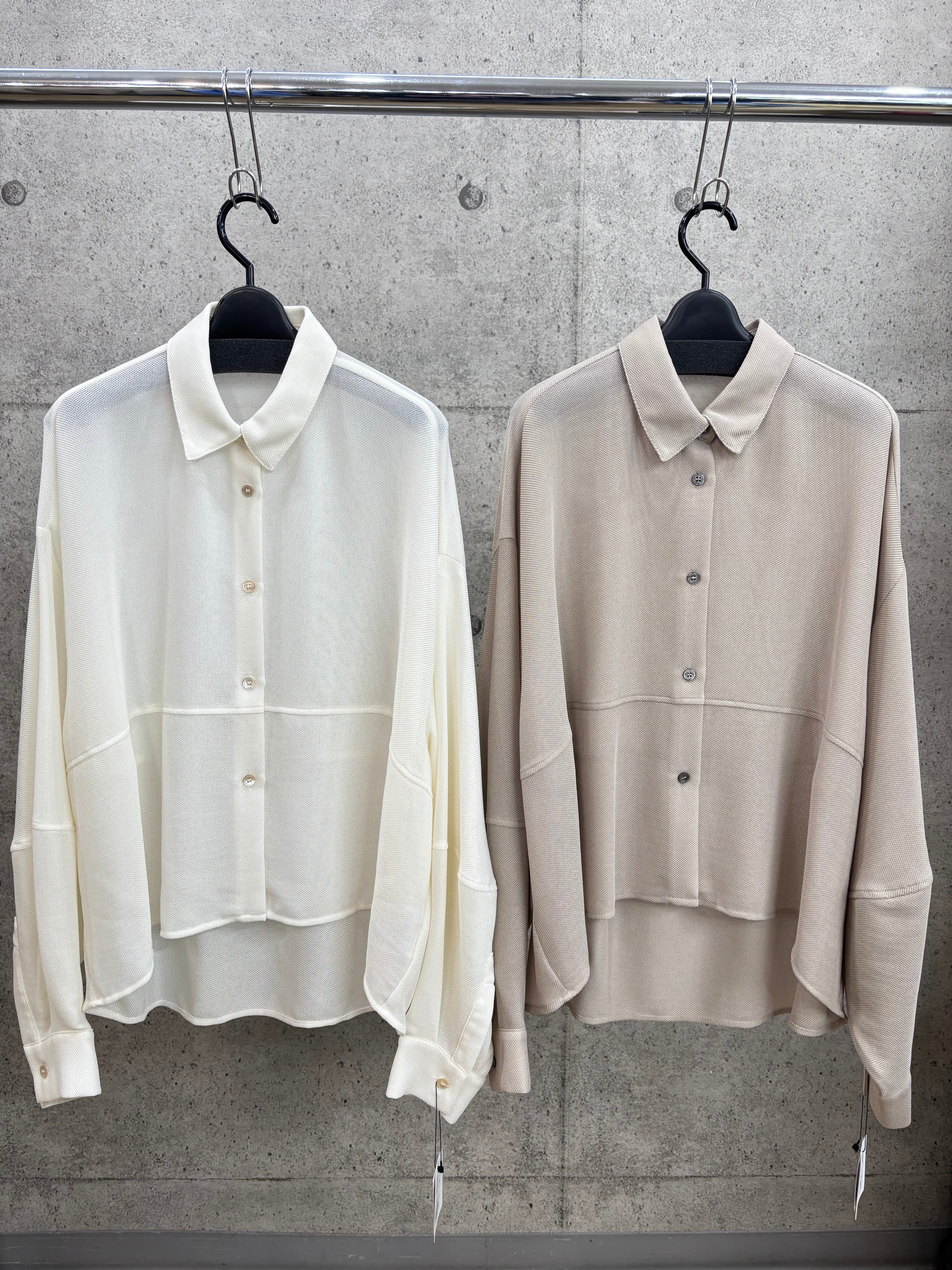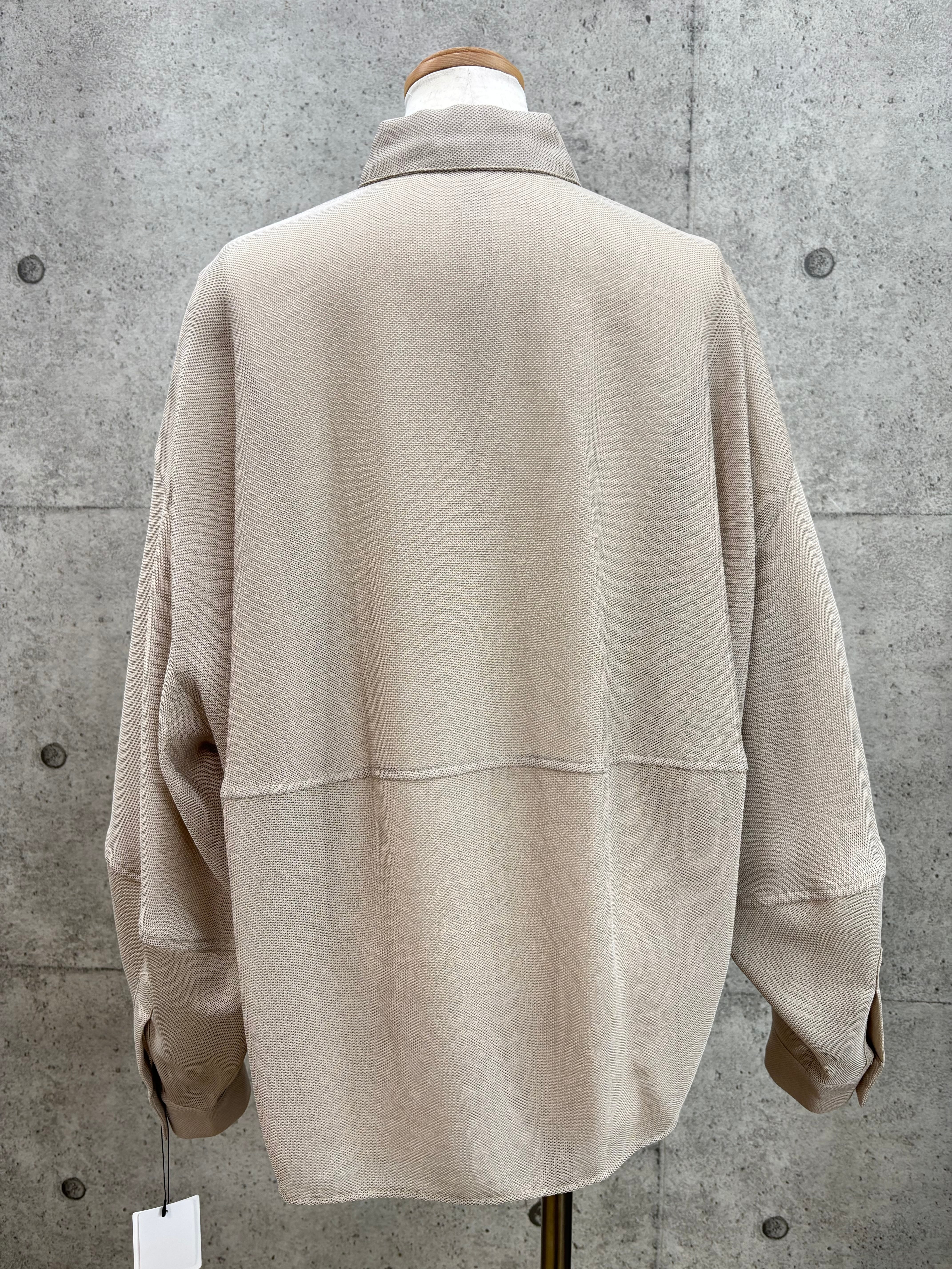ボリューム袖と後身頃のコクーンシルエットが着るとこなれた感じになったメッシュシャツです